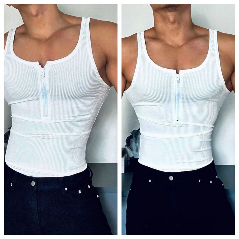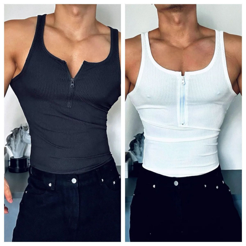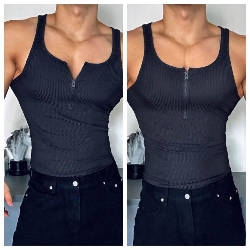 트렌디 한 조끼 2025 봄/여름 플러스 사이즈 지퍼 미국 스타일 섹시한 스포츠 피트니스 민소매 훈련 남자 조끼 타이트스토어 가기