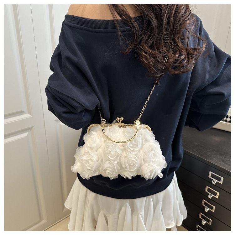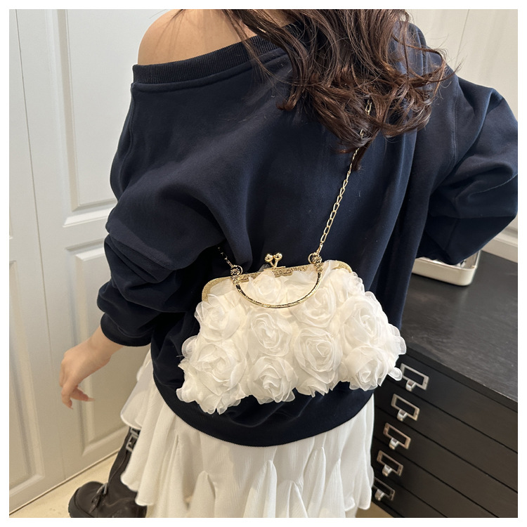 국경 간 가방 여성 저녁 꽃 클립 쉘 가방 2025 봄 새 핸드백 체인 겨드랑이 가방스토어 가기