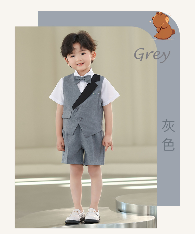 • 그레이 5종세트 (반팔셔츠+조끼+반바지+멜빵+나비넥타이)