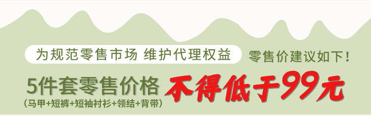 • 베이지 5종세트 (반팔셔츠+조끼+반바지+멜빵+나비넥타이)
