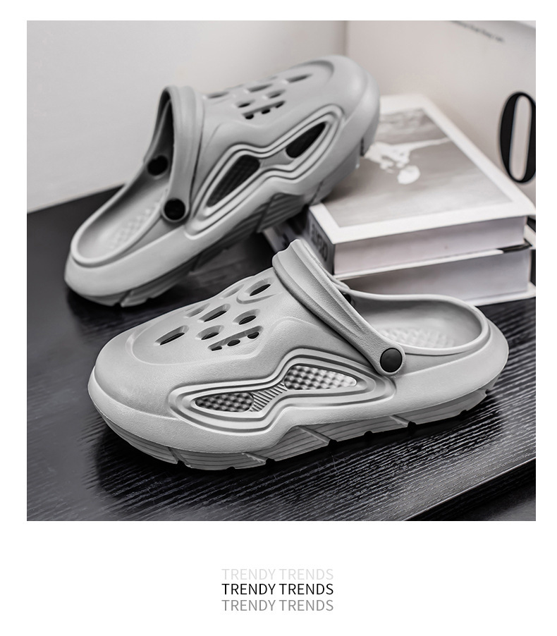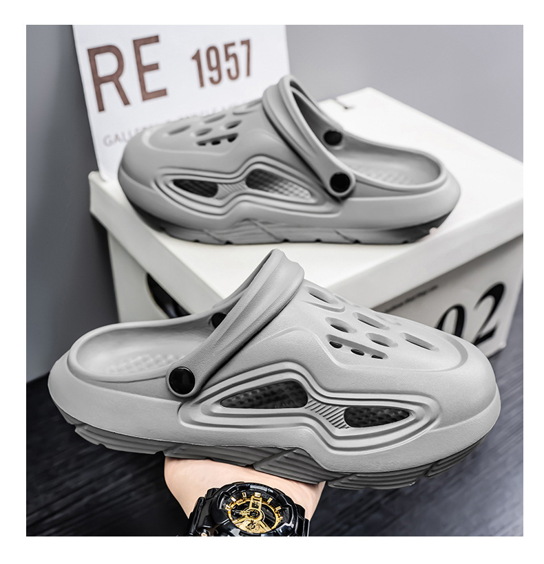 남성용 솔리드 컬러 나막신, 여름 아우터, 미끄럼 방지, 통기성, 부드러운 밑창 발가락 슬리퍼, 남성용 스포츠 및 레저 비치 샌들스토어 가기