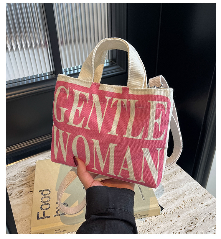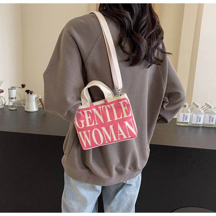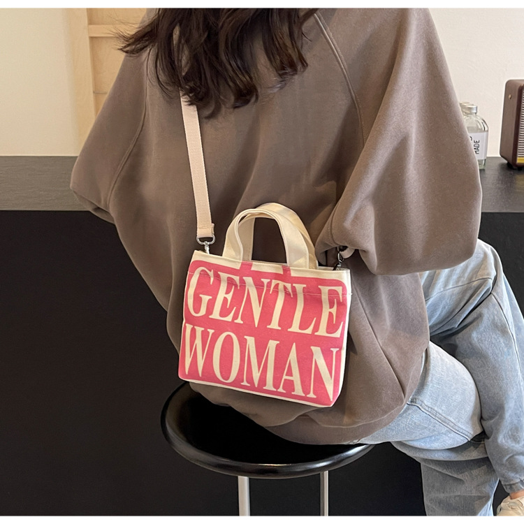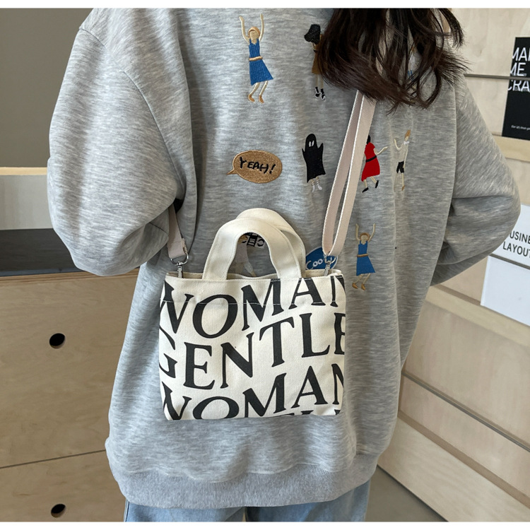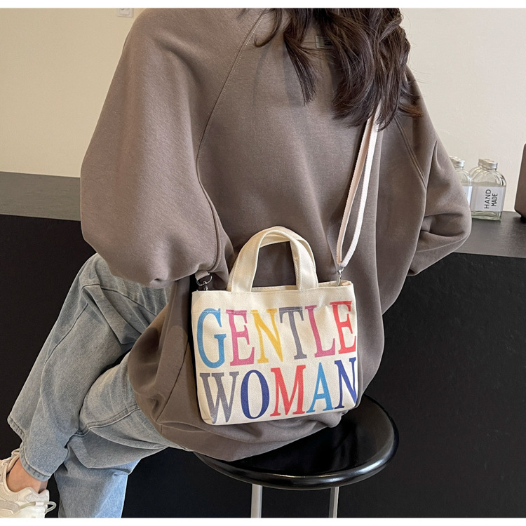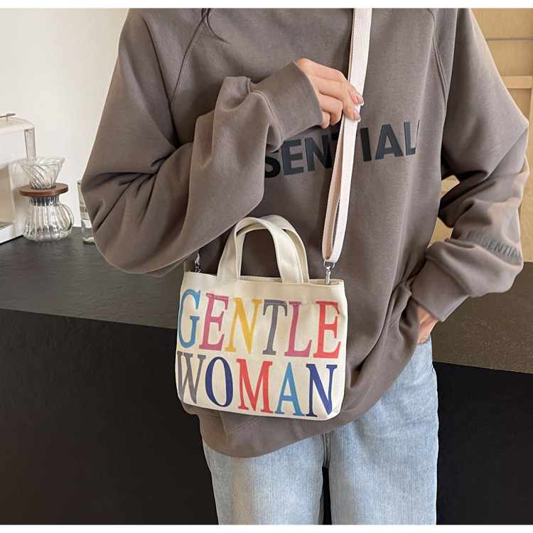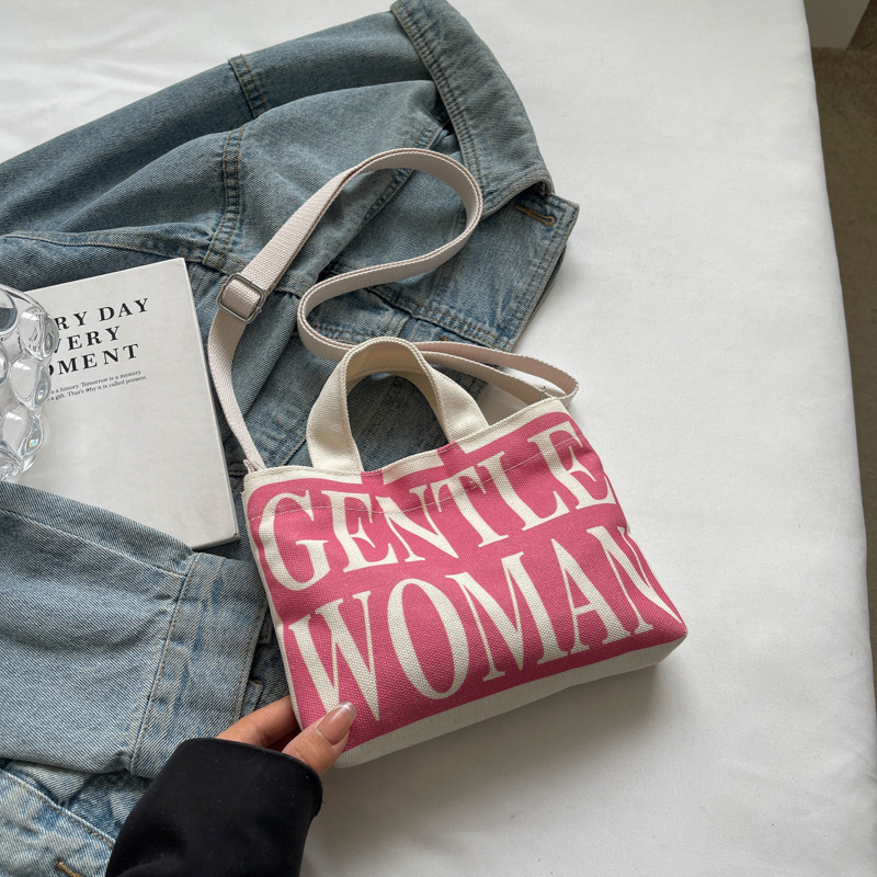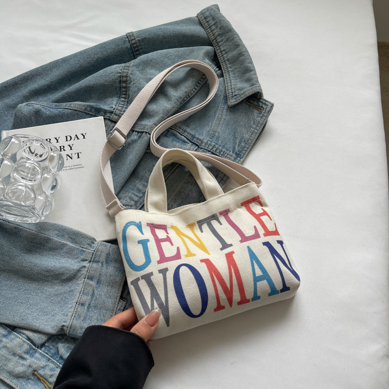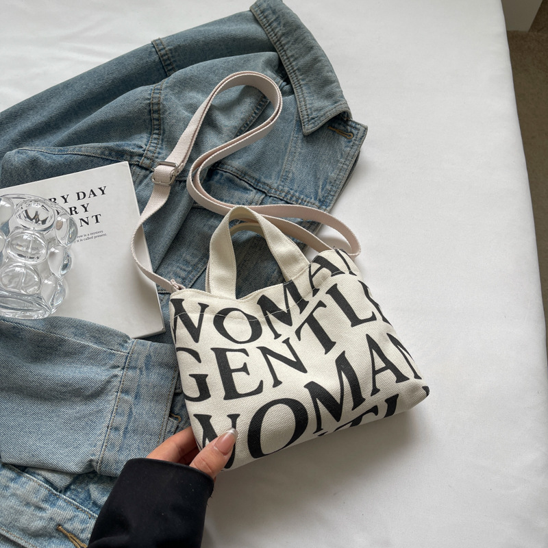 여성용 봄 여름 레터 캔버스 백 대형 2025 새로운 인기 틈새 디자인 인 슈퍼 핫 레터 미니 크로스 바디 백