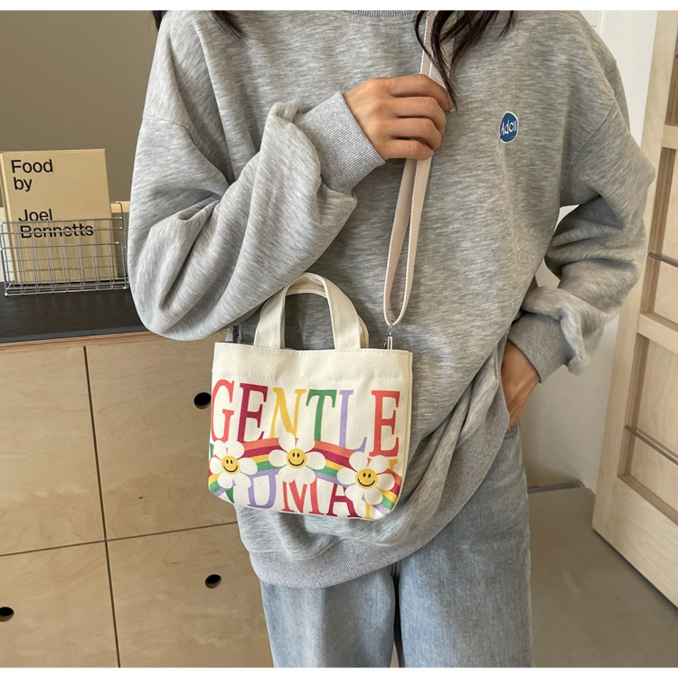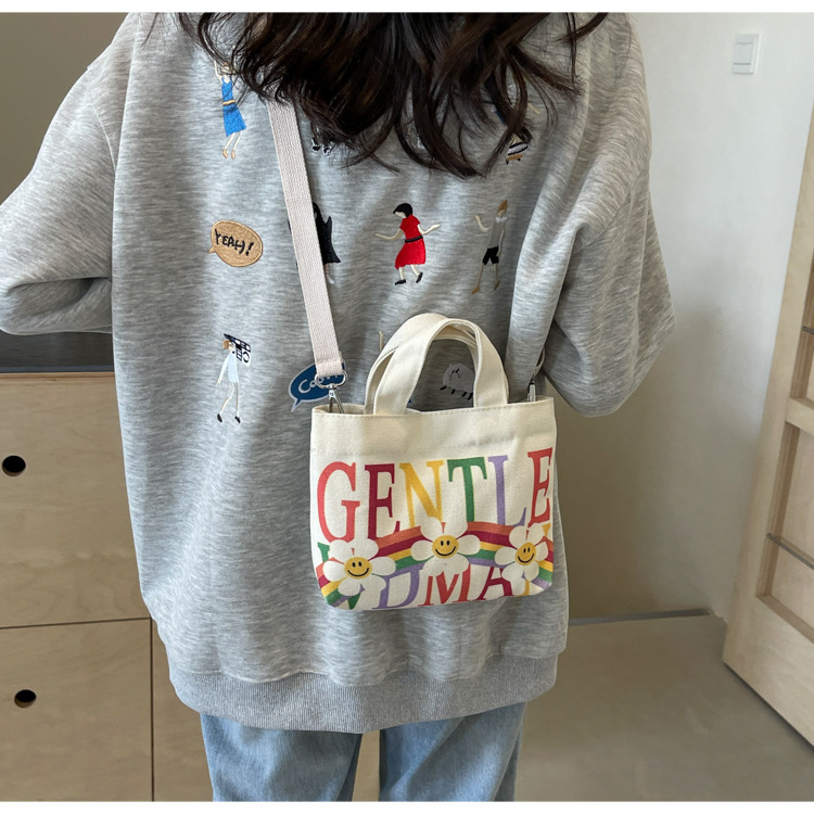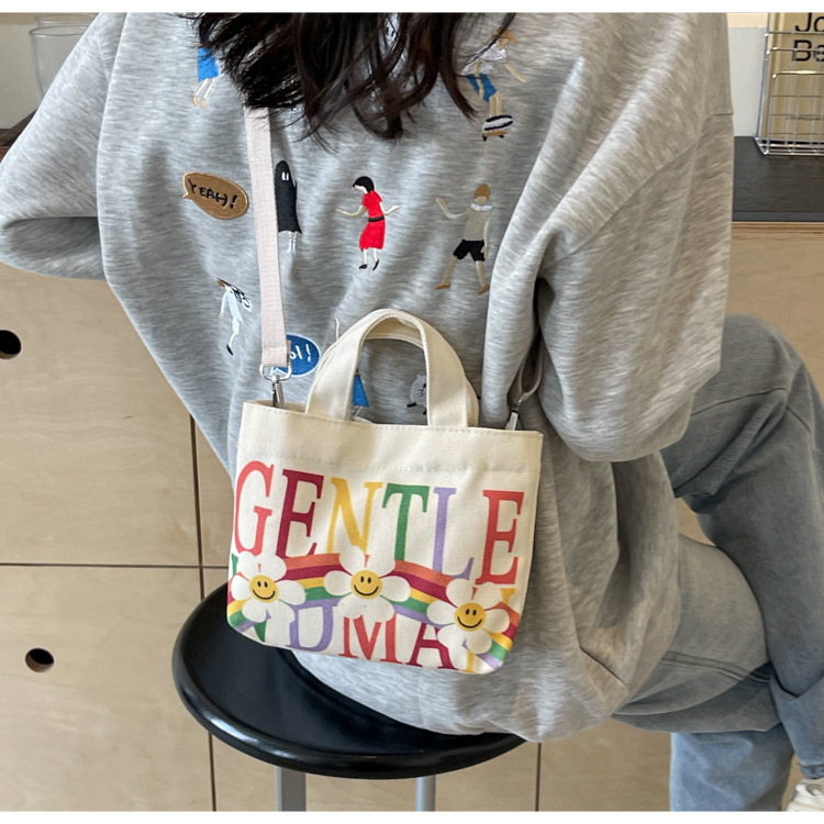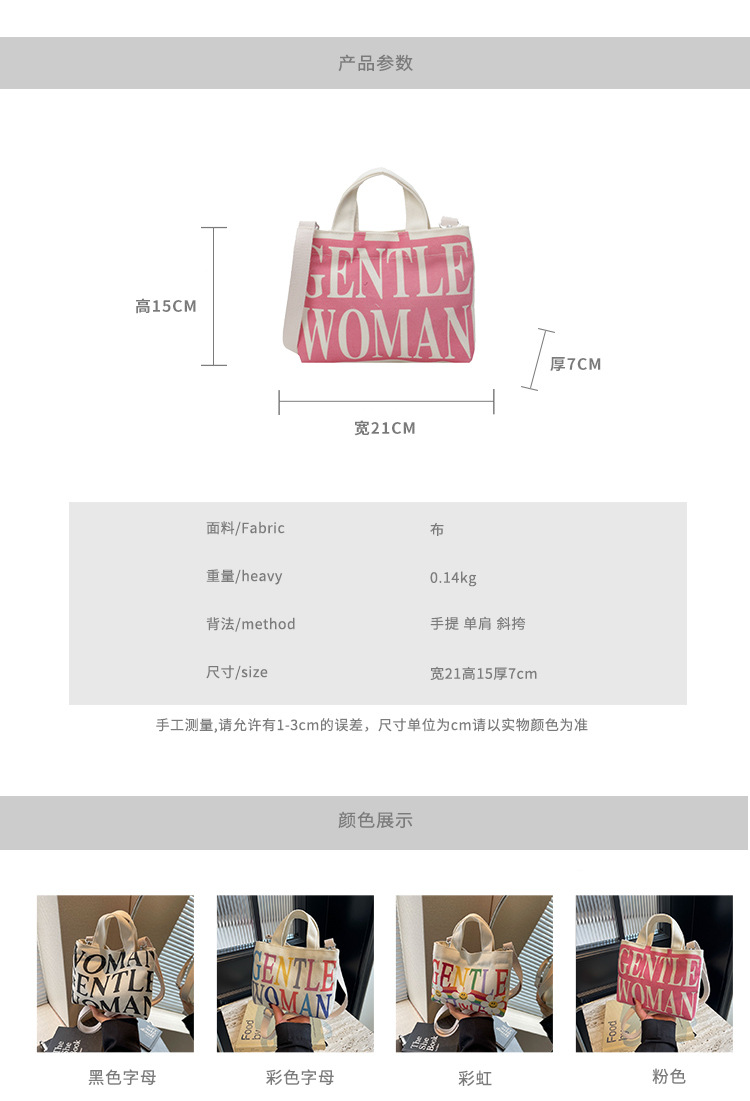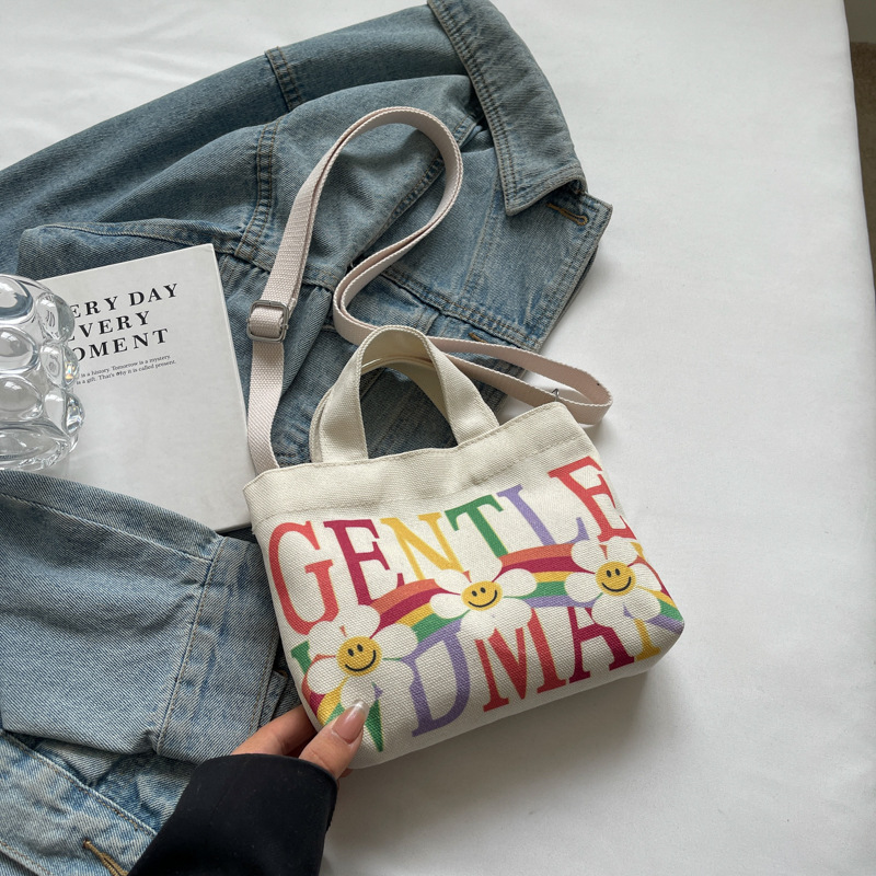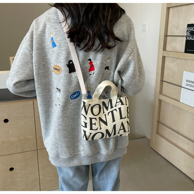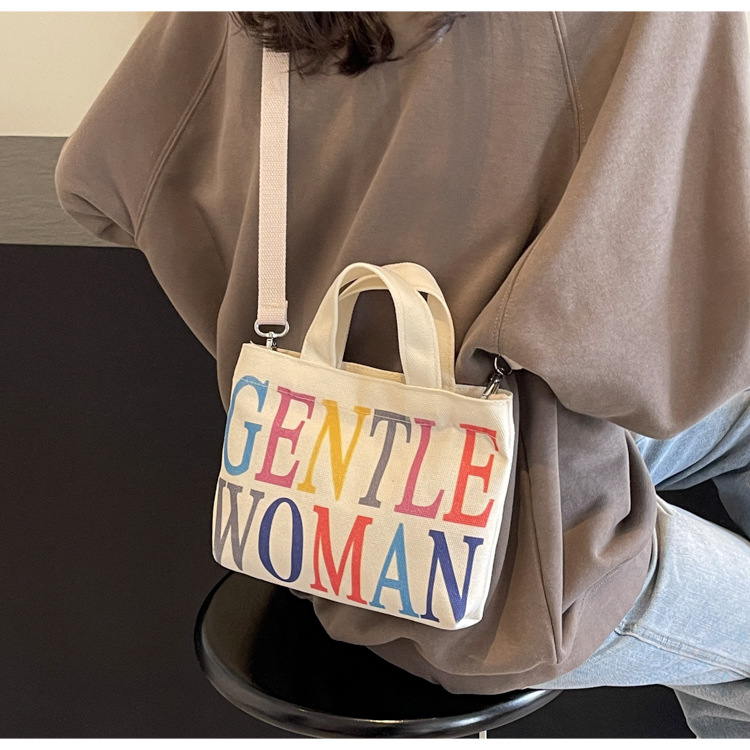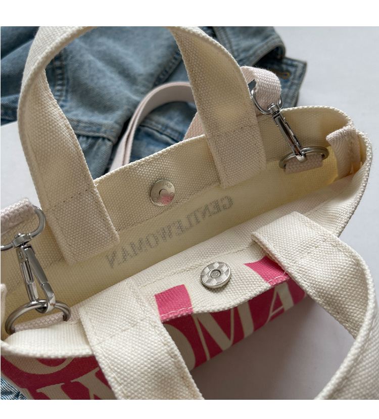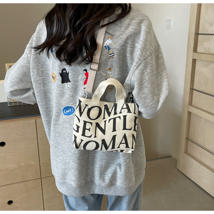 여성용 봄 여름 레터 캔버스 백 대형 2025 새로운 인기 틈새 디자인 인 슈퍼 핫 레터 미니 크로스 바디 백