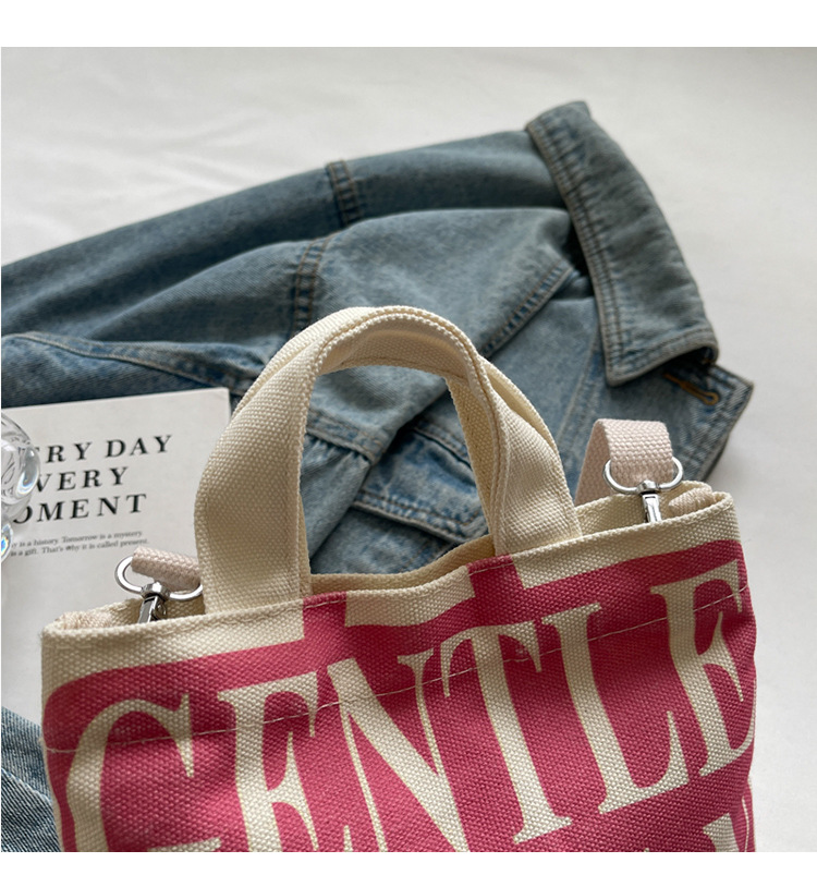 여성용 봄 여름 레터 캔버스 백 대형 2025 새로운 인기 틈새 디자인 인 슈퍼 핫 레터 미니 크로스 바디 백스토어 가기