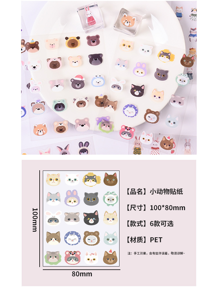 귀여운 고양이와 개 스티커, 학생 핸드북 스티커, 휴대폰 장식 DIY 포장, 동물 씰링 스티커