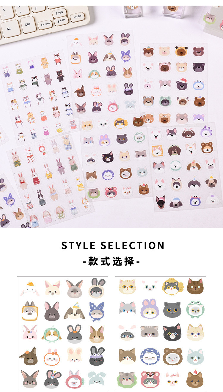 귀여운 고양이와 개 스티커, 학생 핸드북 스티커, 휴대폰 장식 DIY 포장, 동물 씰링 스티커스토어 가기