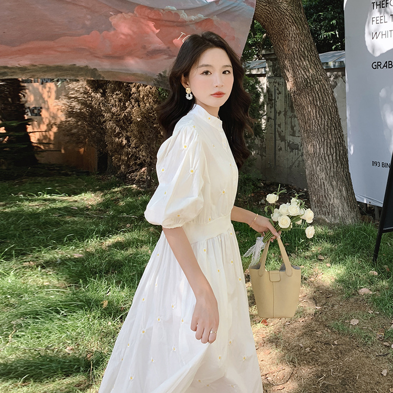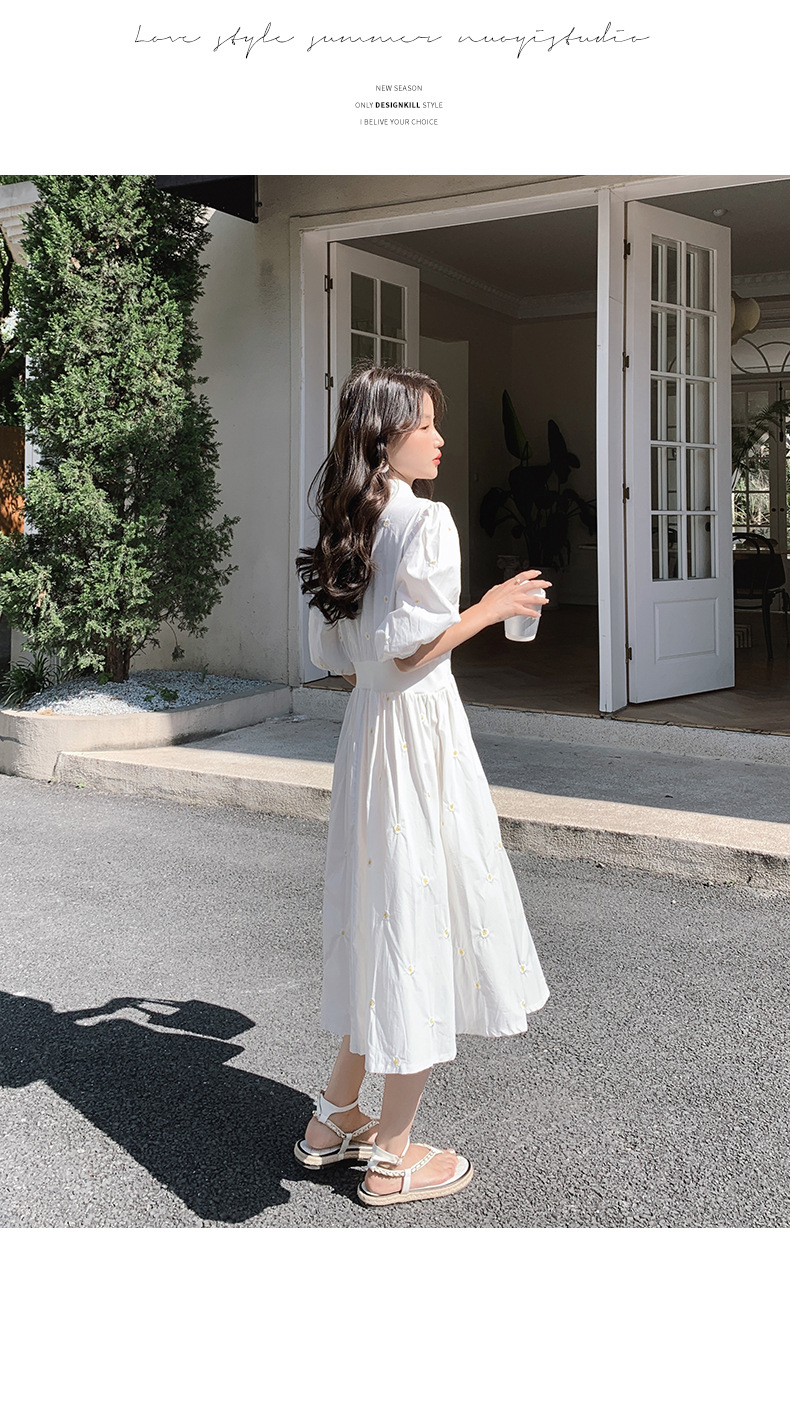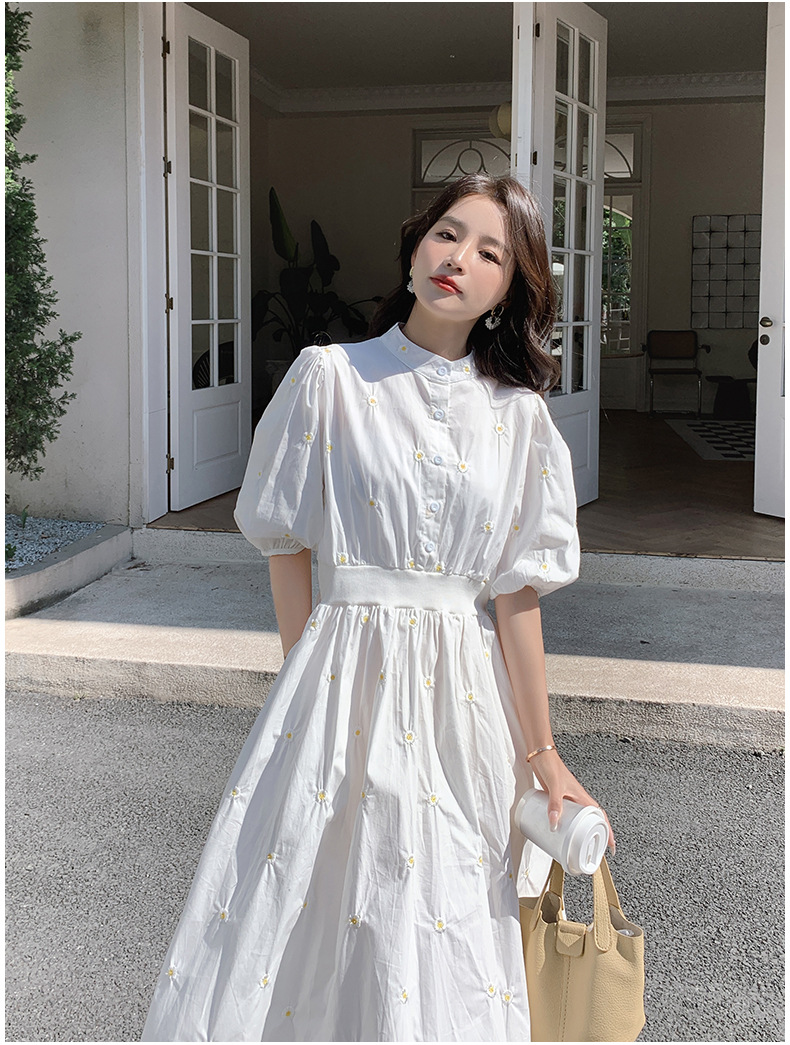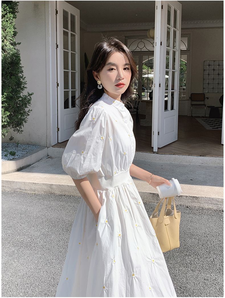 화이트 페어리 셔츠 원피스 여성 여름 프랑스 스타일 레트로 퍼프 부드러운 소매 스타일 아름다운 우아한 여신 스타일 원피스스토어 가기