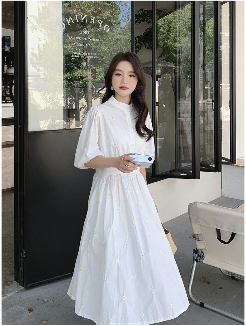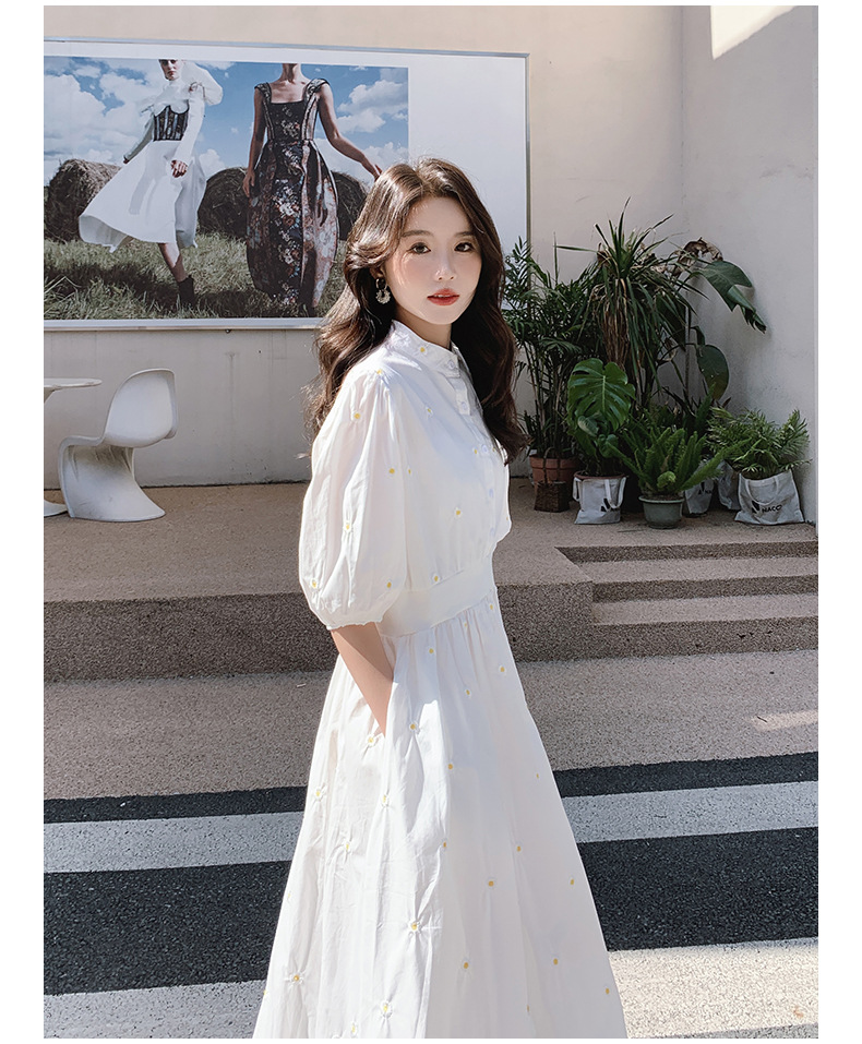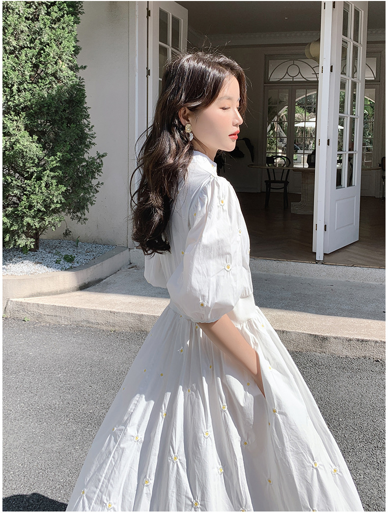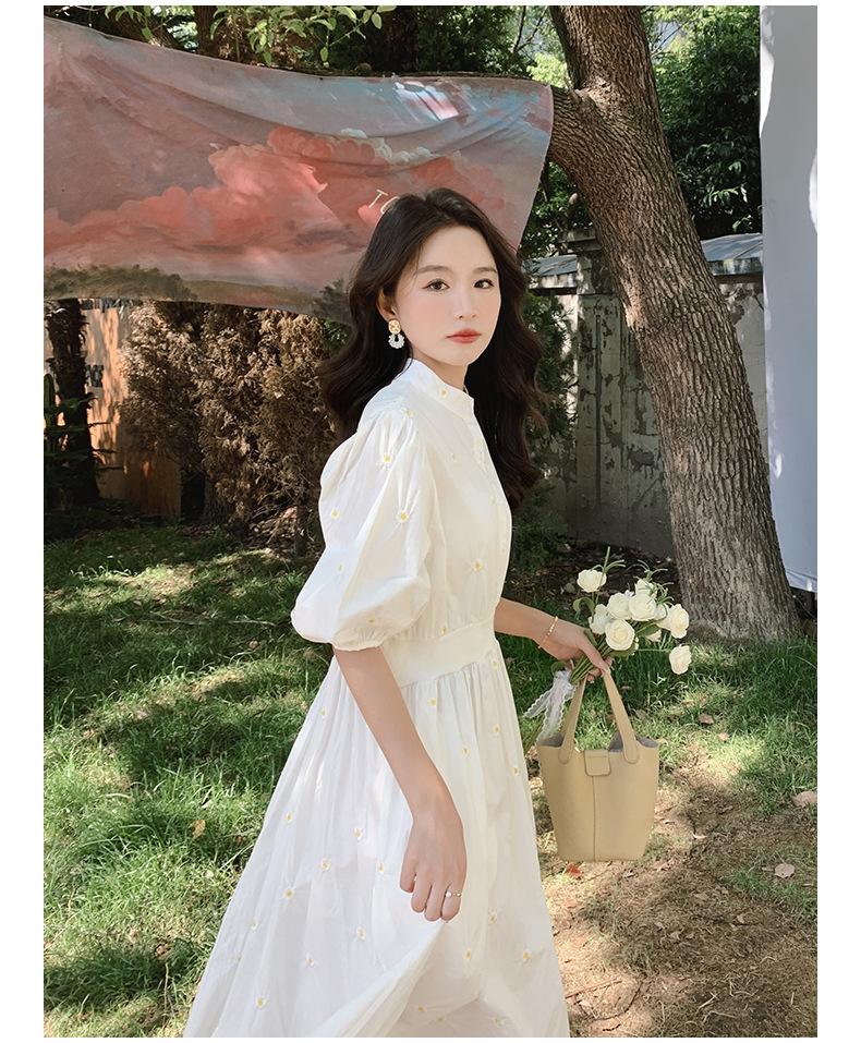 화이트 페어리 셔츠 원피스 여성 여름 프랑스 스타일 레트로 퍼프 부드러운 소매 스타일 아름다운 우아한 여신 스타일 원피스스토어 가기