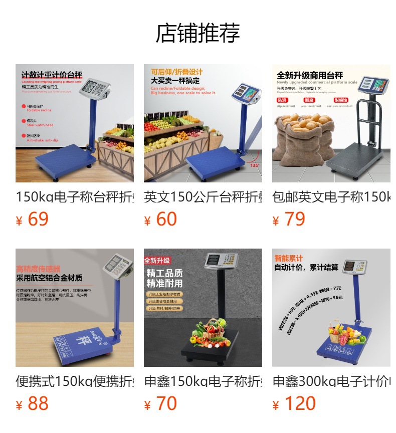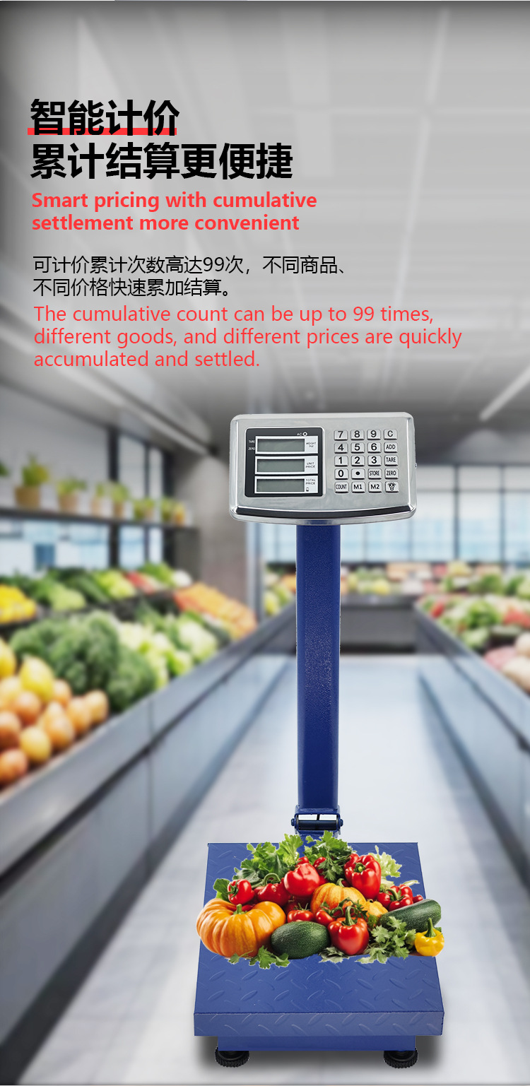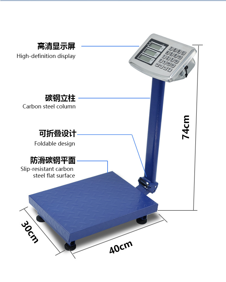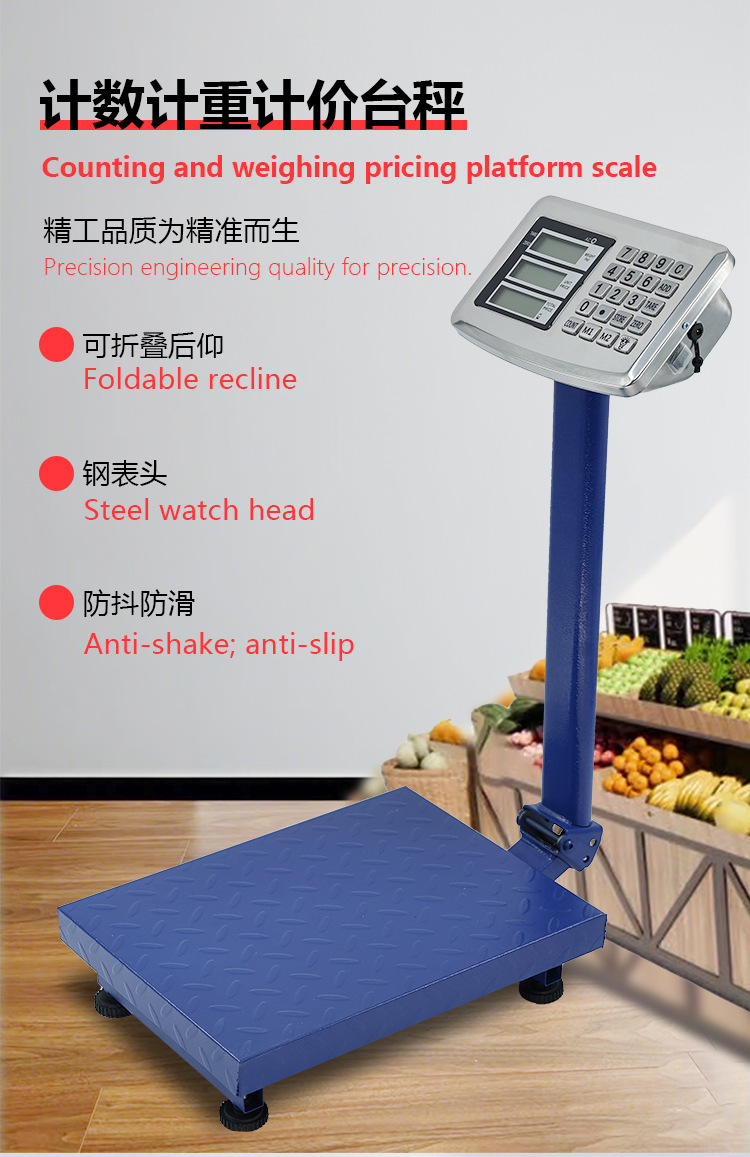 접이식 및 리클라이닝 기능이 있는 150kg 전자 저울, 상업용 휴대용 가격 판매대, 공장 영어 국경 간 전자 저울스토어 가기