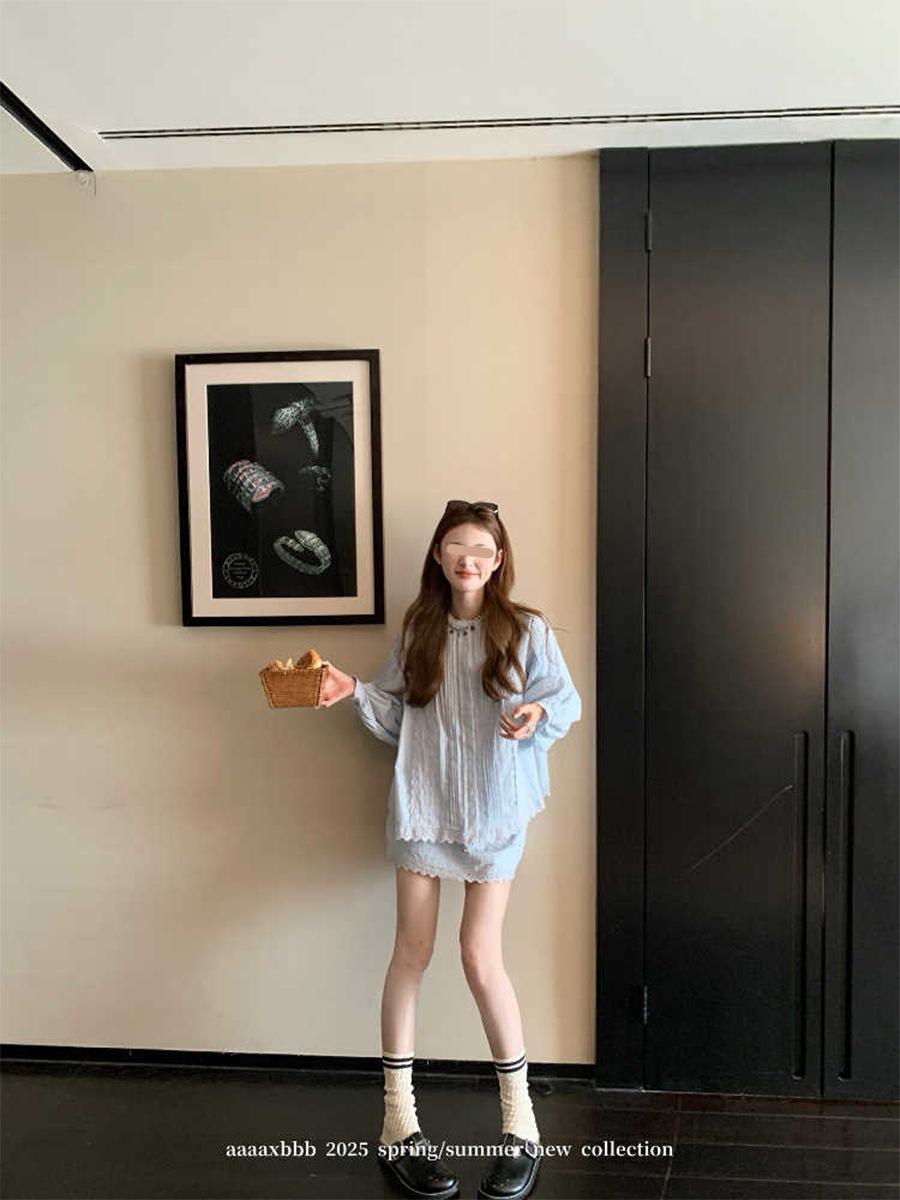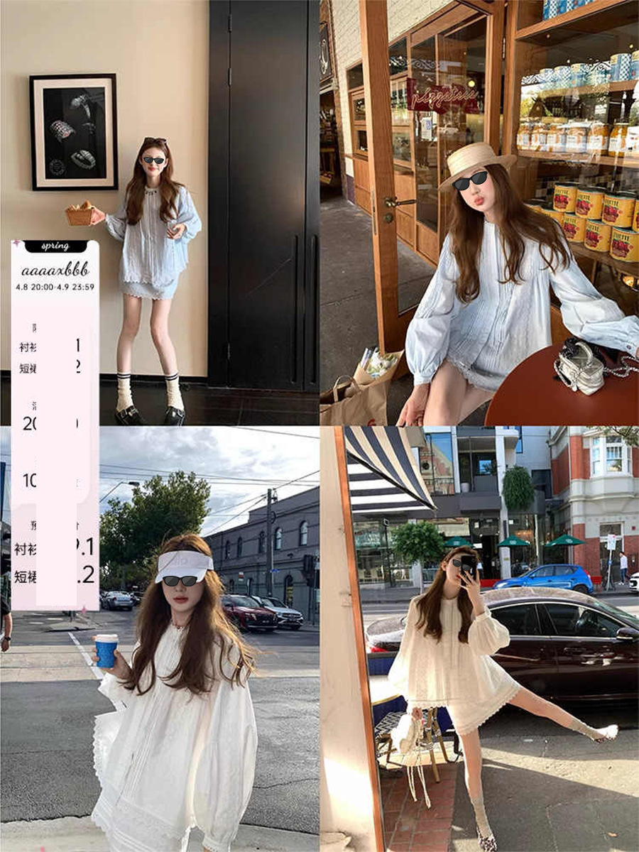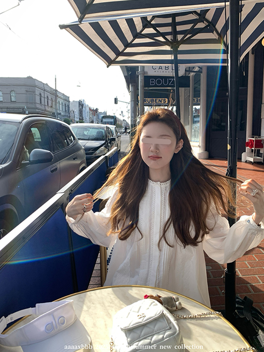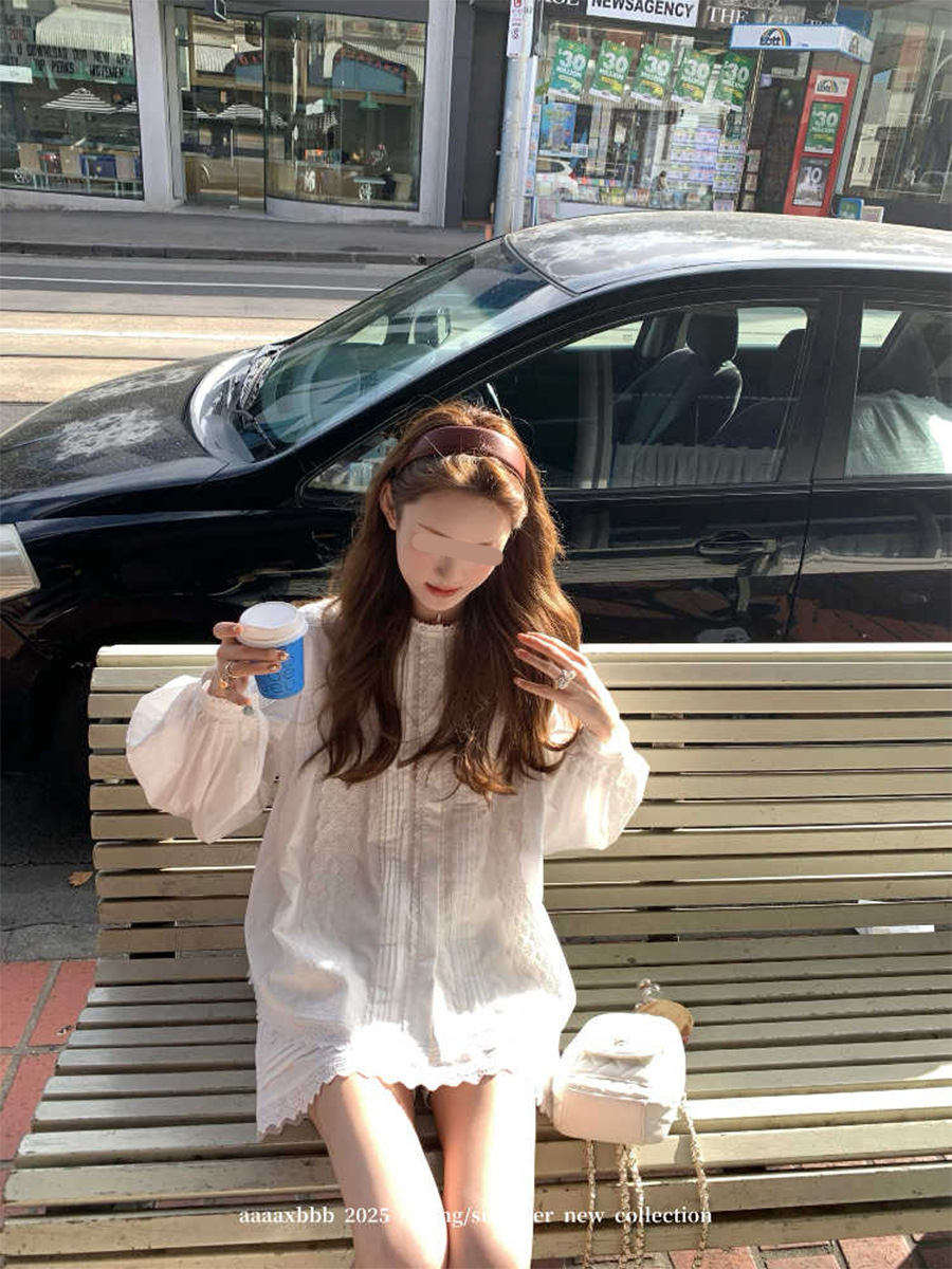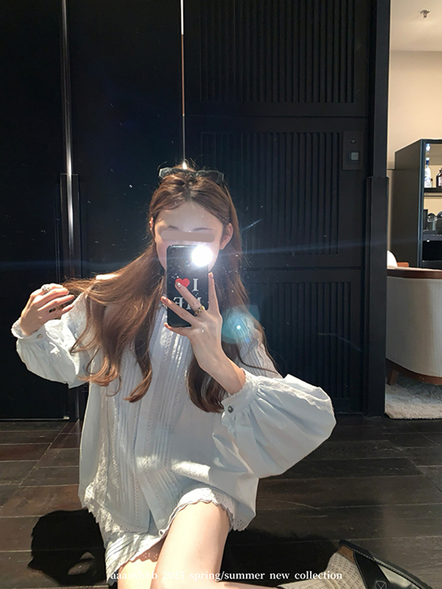 Aaaaxbbb 스노우 탑 실버 소금 잡아 레이스 세트 나이를 줄이는 셔츠 긴 소매 탑 라운드 넥 스커트 스커트스토어 가기