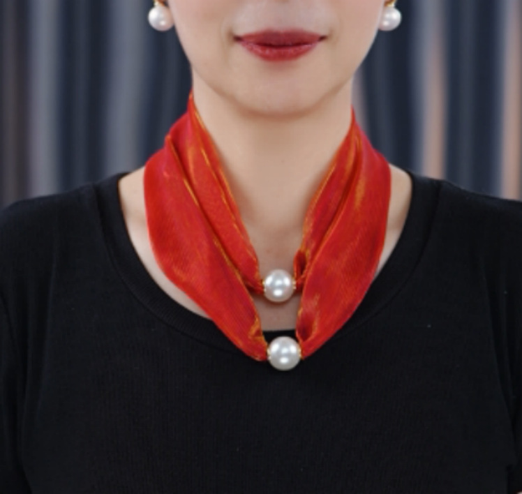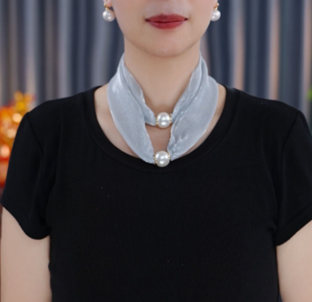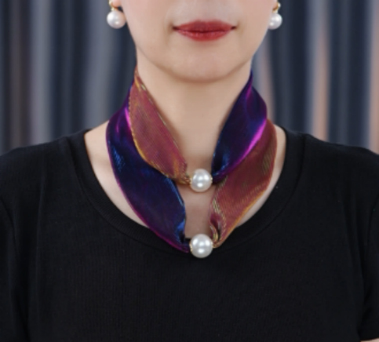 [Xin Fang] 컬러풀한 롱 스카프(진주 스타일) 봄과 가을을 위한 새로운 스타일의 목 보호대 및 스타일리시한 여행용 스카프 장식 스카프