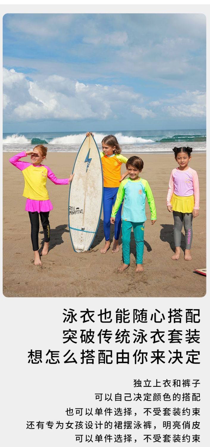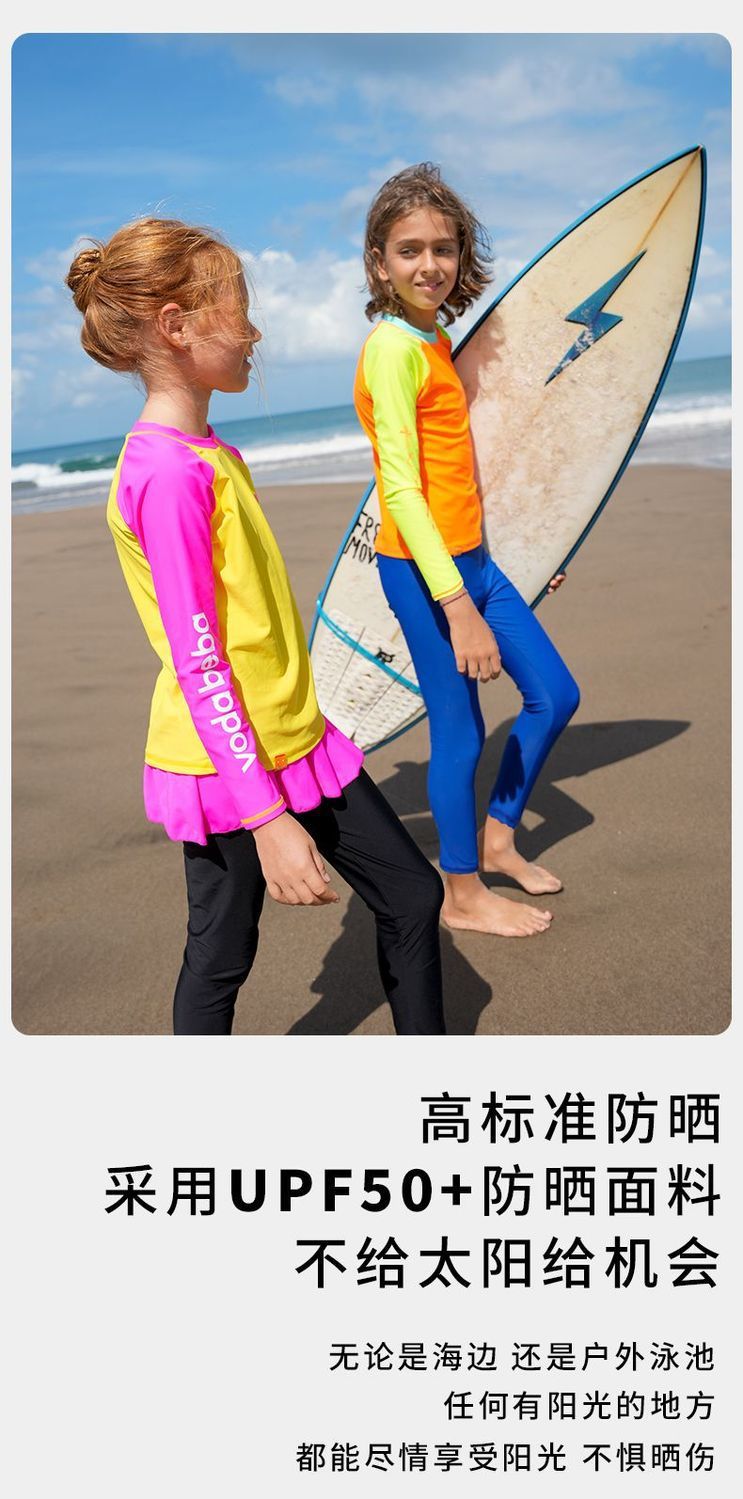 어린이 수영복 긴 소매 바지 원피스 자외선 차단 소녀 소년 밝은 색상 중형 및 대형 어린이 서핑 및 수영