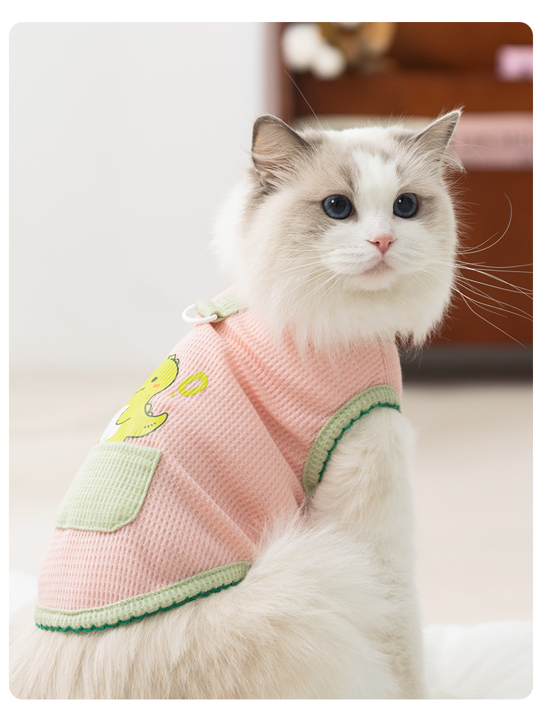 고양이 옷 만화 포켓 조끼 봄과 여름 얇은 통기성 두 다리 옷 파란 고양이 새끼 고양이 강아지 애완 동물 옷