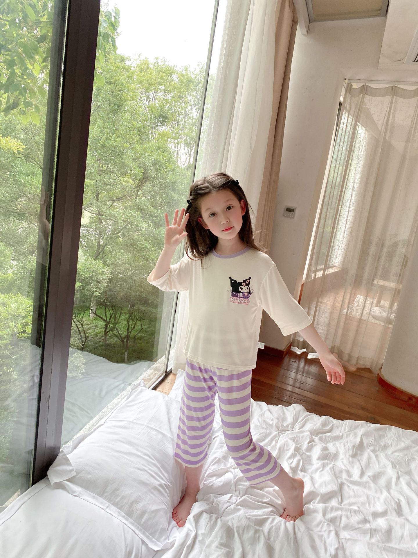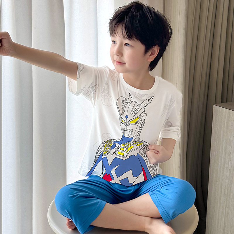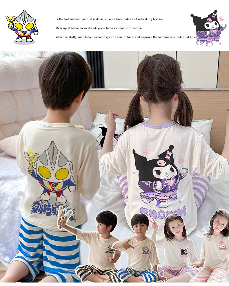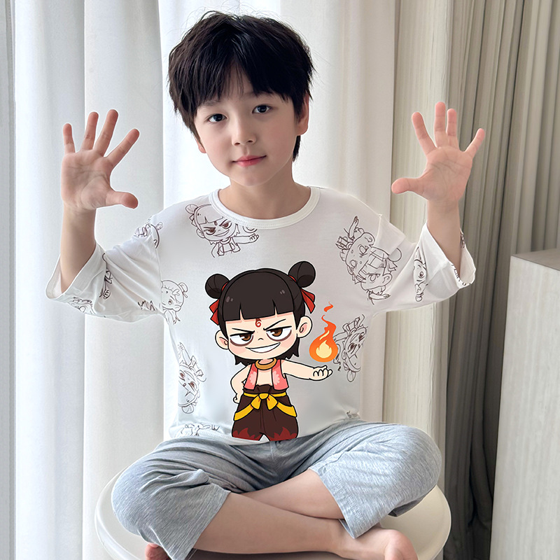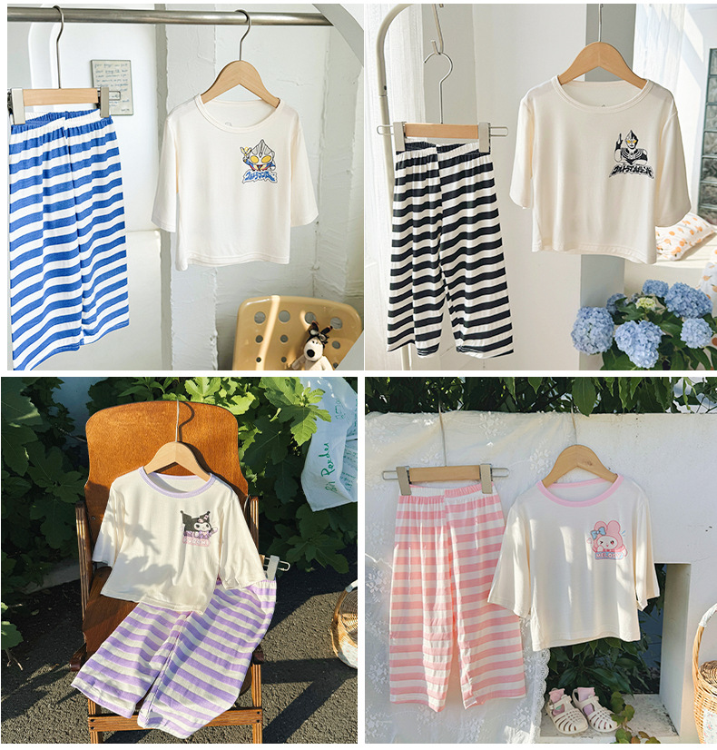 어린이 잠옷 여름 얇은 모달 코튼 여자 남자 홈 옷 7 점 소매 9 점 바지 아기 에어컨 옷스토어 가기