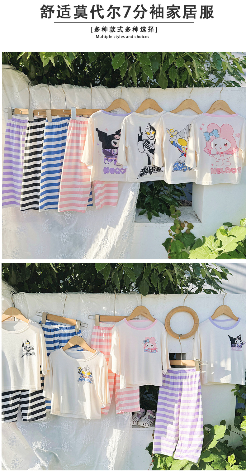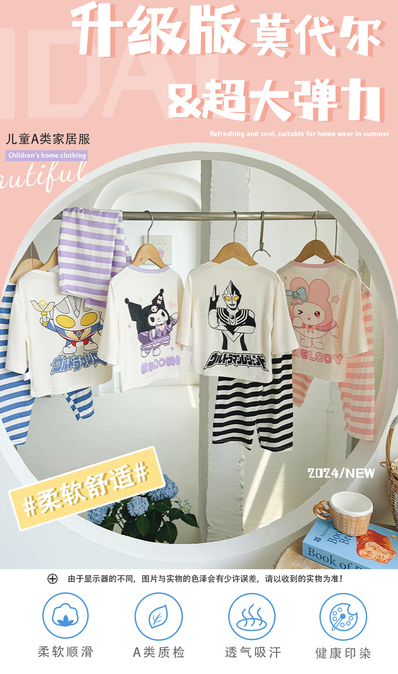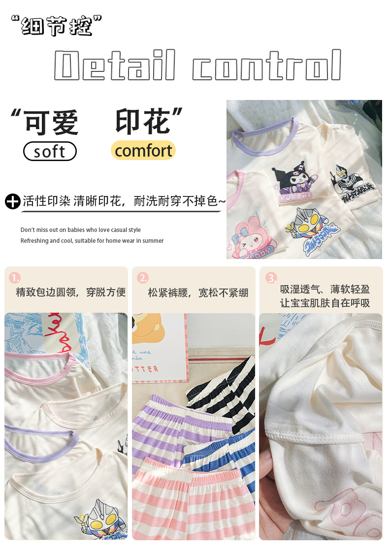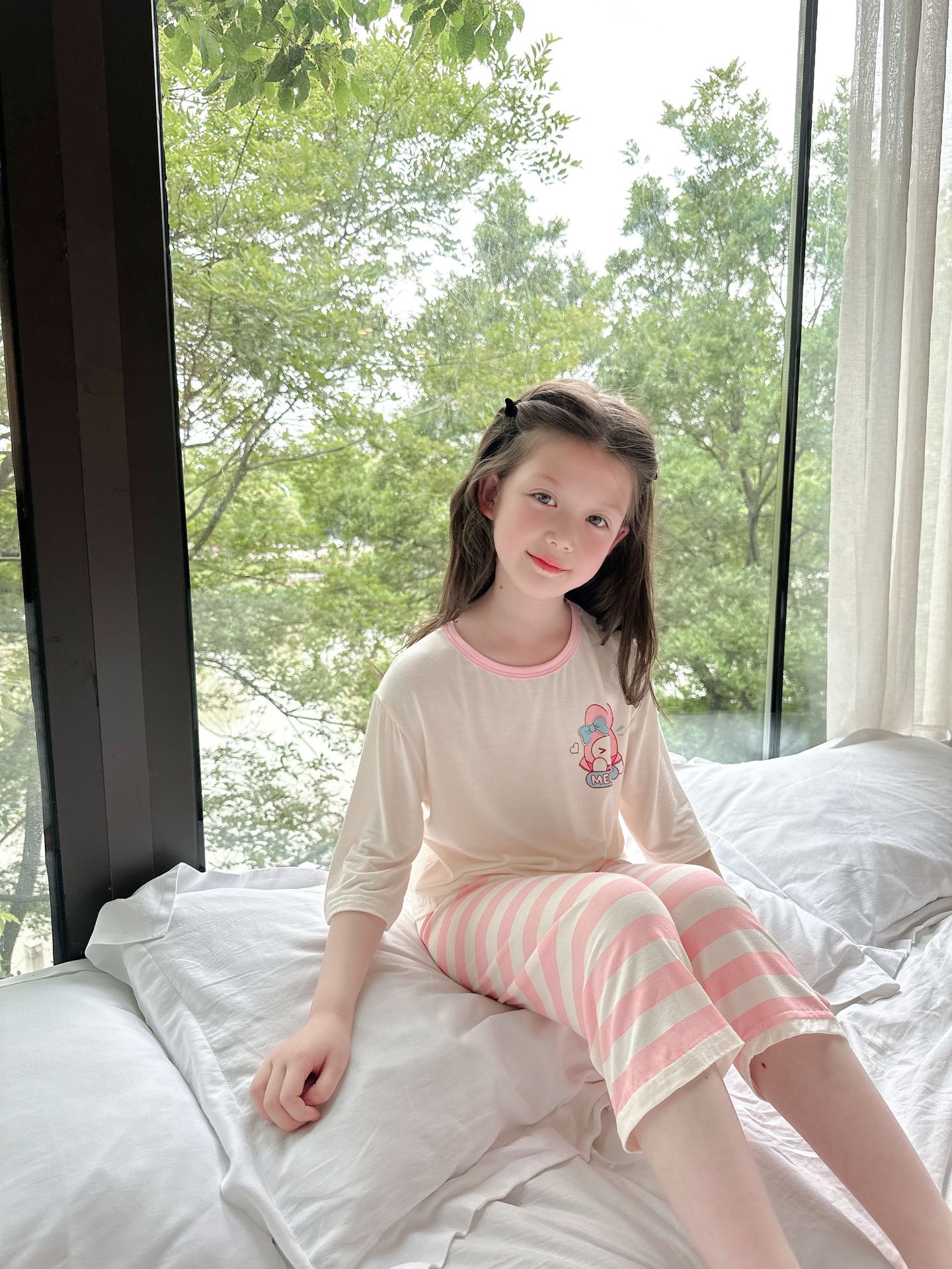 어린이 잠옷 여름 얇은 모달 코튼 여자 남자 홈 옷 7 점 소매 9 점 바지 아기 에어컨 옷스토어 가기