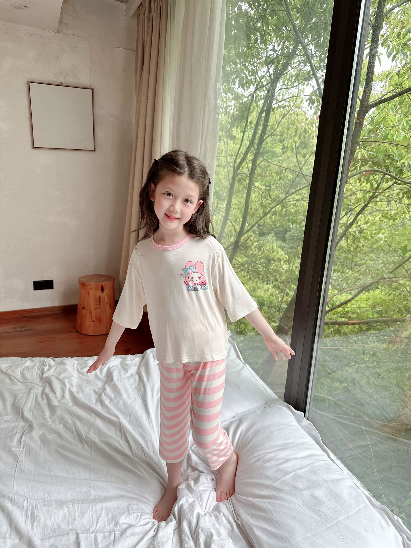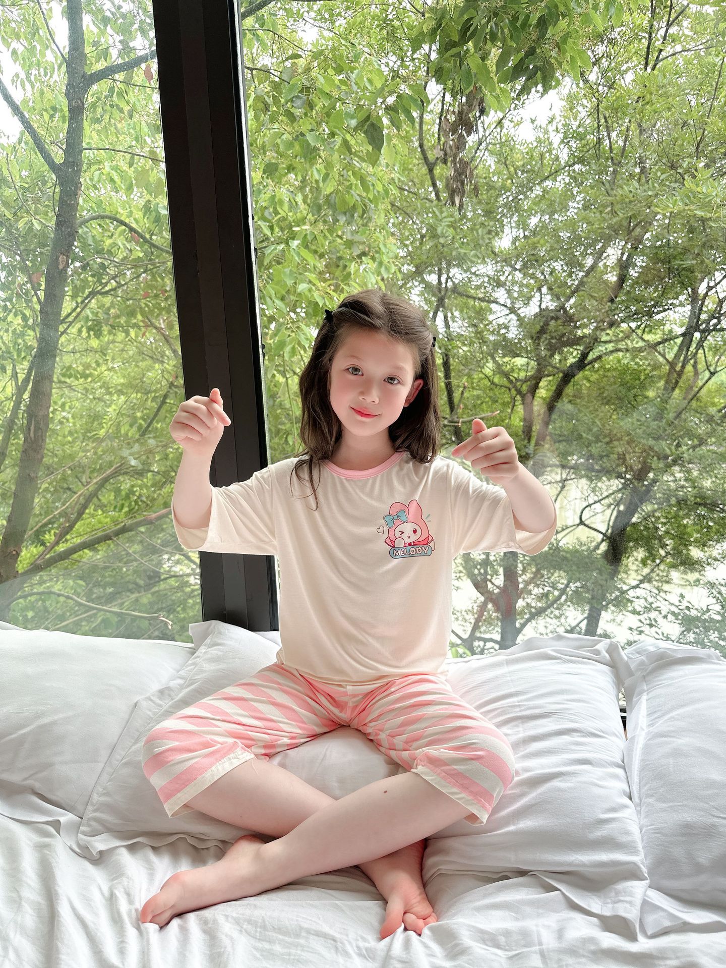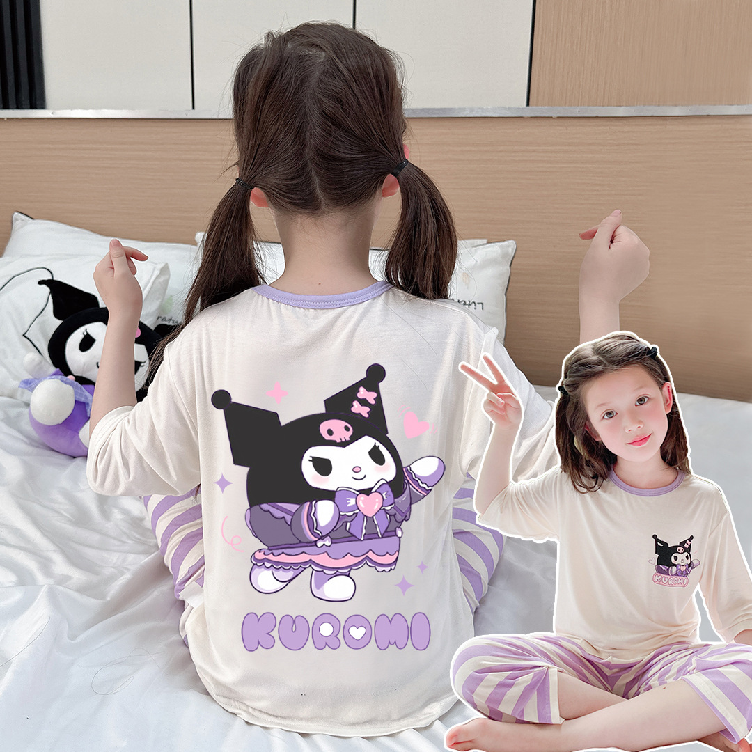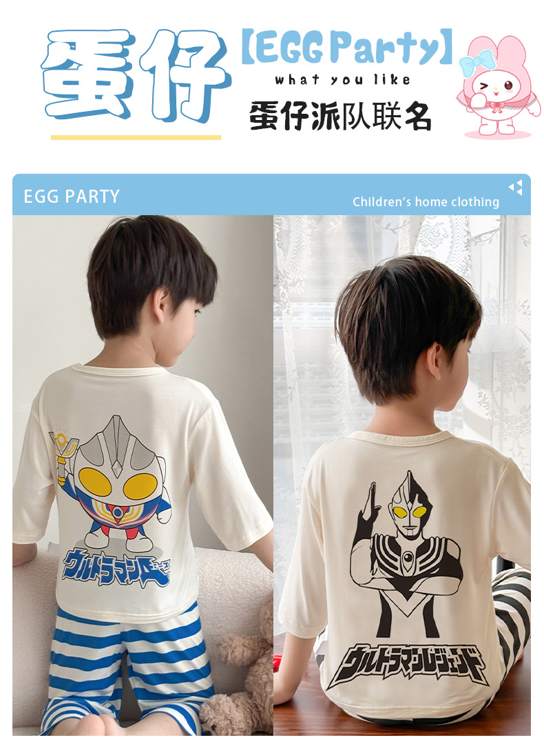 어린이 잠옷 여름 얇은 모달 코튼 여자 남자 홈 옷 7 점 소매 9 점 바지 아기 에어컨 옷스토어 가기