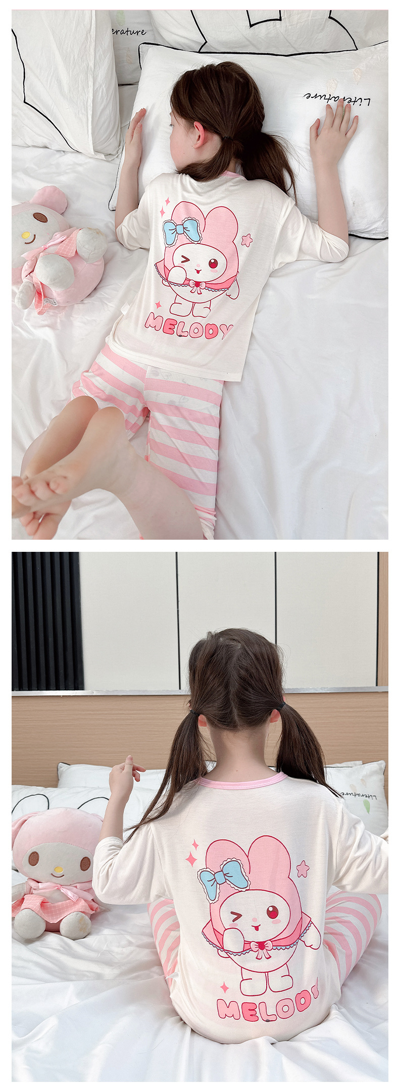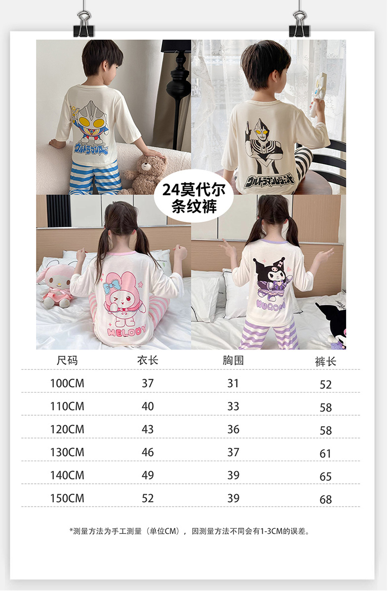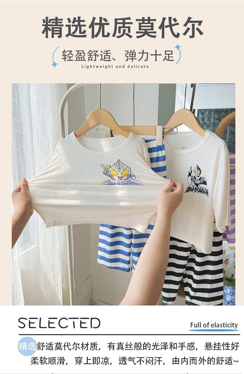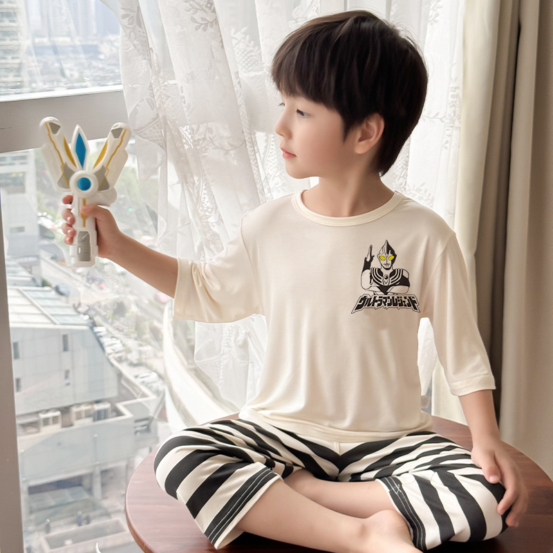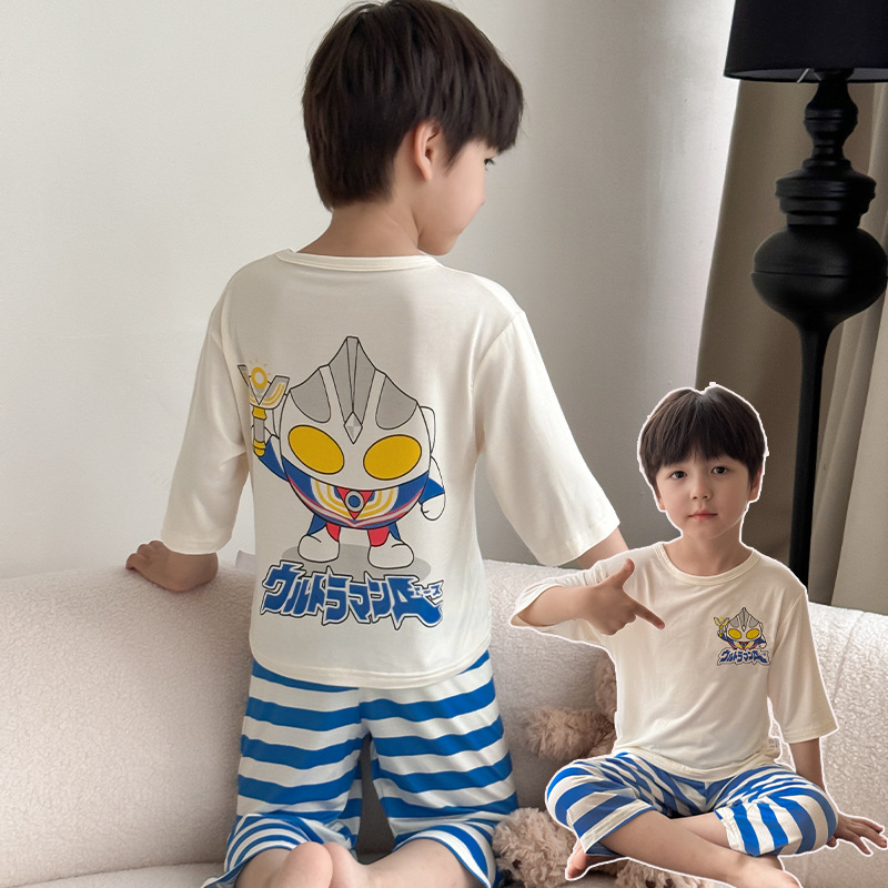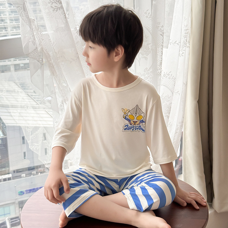 어린이 잠옷 여름 얇은 모달 코튼 여자 남자 홈 옷 7 점 소매 9 점 바지 아기 에어컨 옷
