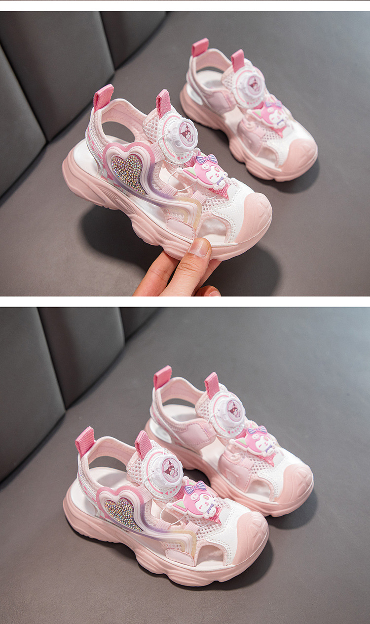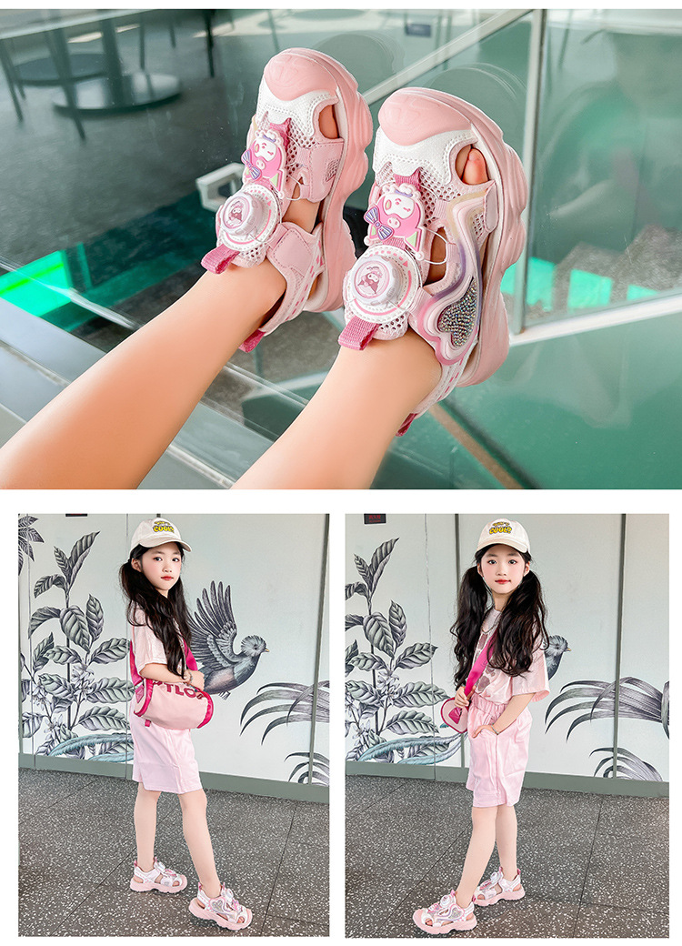 어린이 발가락 샌들 여자 해변 신발 여름 새로운 만화 공주 신발 귀여운 부드러운 단독 소녀 스포츠 샌들