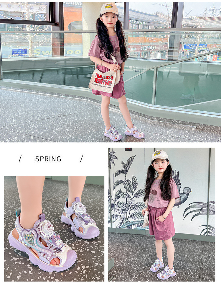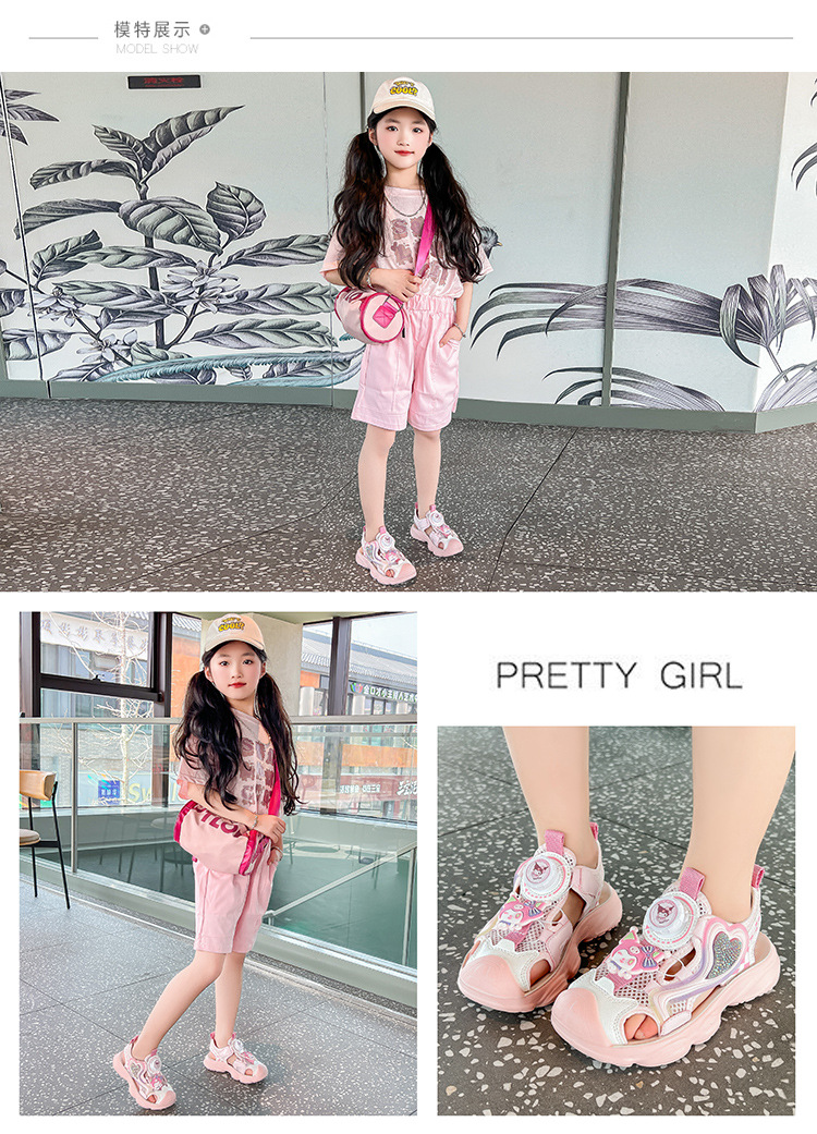 어린이 발가락 샌들 여자 해변 신발 여름 새로운 만화 공주 신발 귀여운 부드러운 단독 소녀 스포츠 샌들스토어 가기