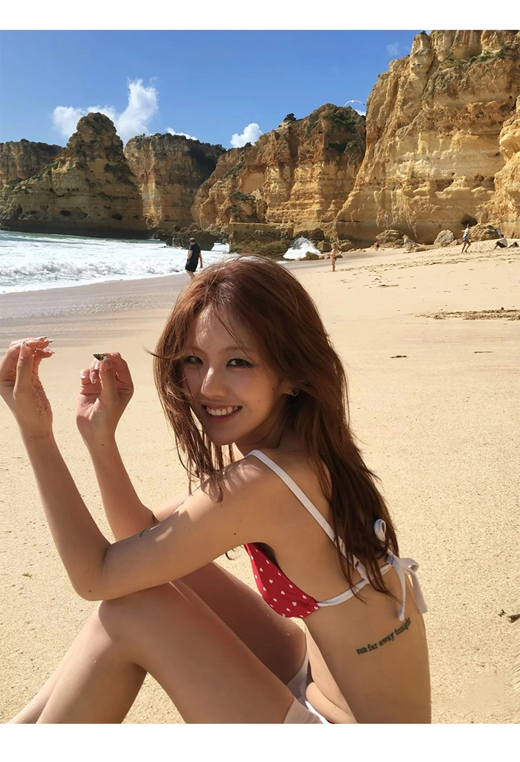 2025 새로운 크로스보더 유럽과 미국의 복고풍 폴카 도트 3점 끈 비키니 BIKINI 스플릿 수영복 수영복스토어 가기
