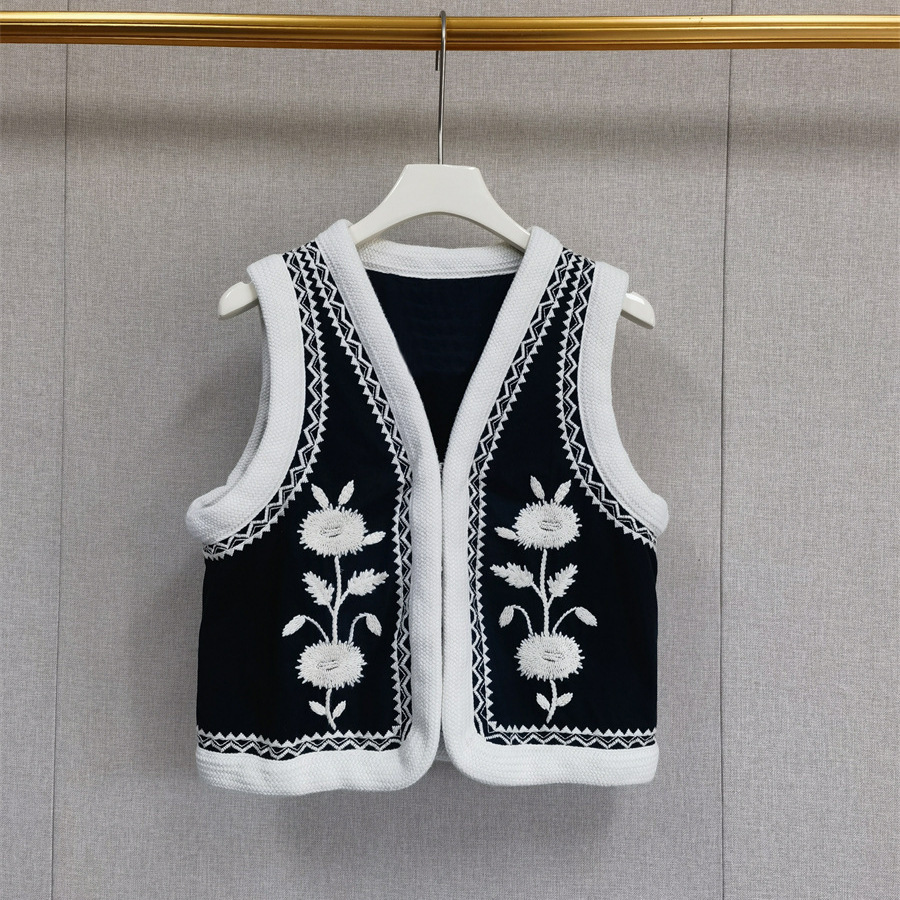 프랑스 틈새 2025 봄과 여름 새로운 민족 스타일 빈티지 자수 꽃 V 넥 민소매 후크 조끼스토어 가기