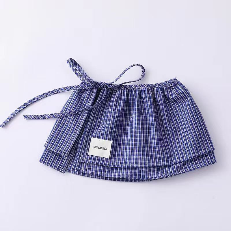 일본 복고풍 격자 무늬 엉덩이 커튼 어린이 댄스 스커트 댄스 소녀 스트리트 댄스 스커트 소년 레이어드 허리띠