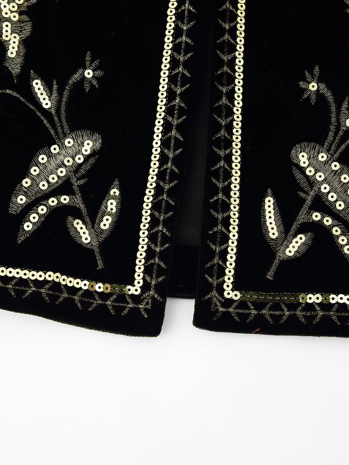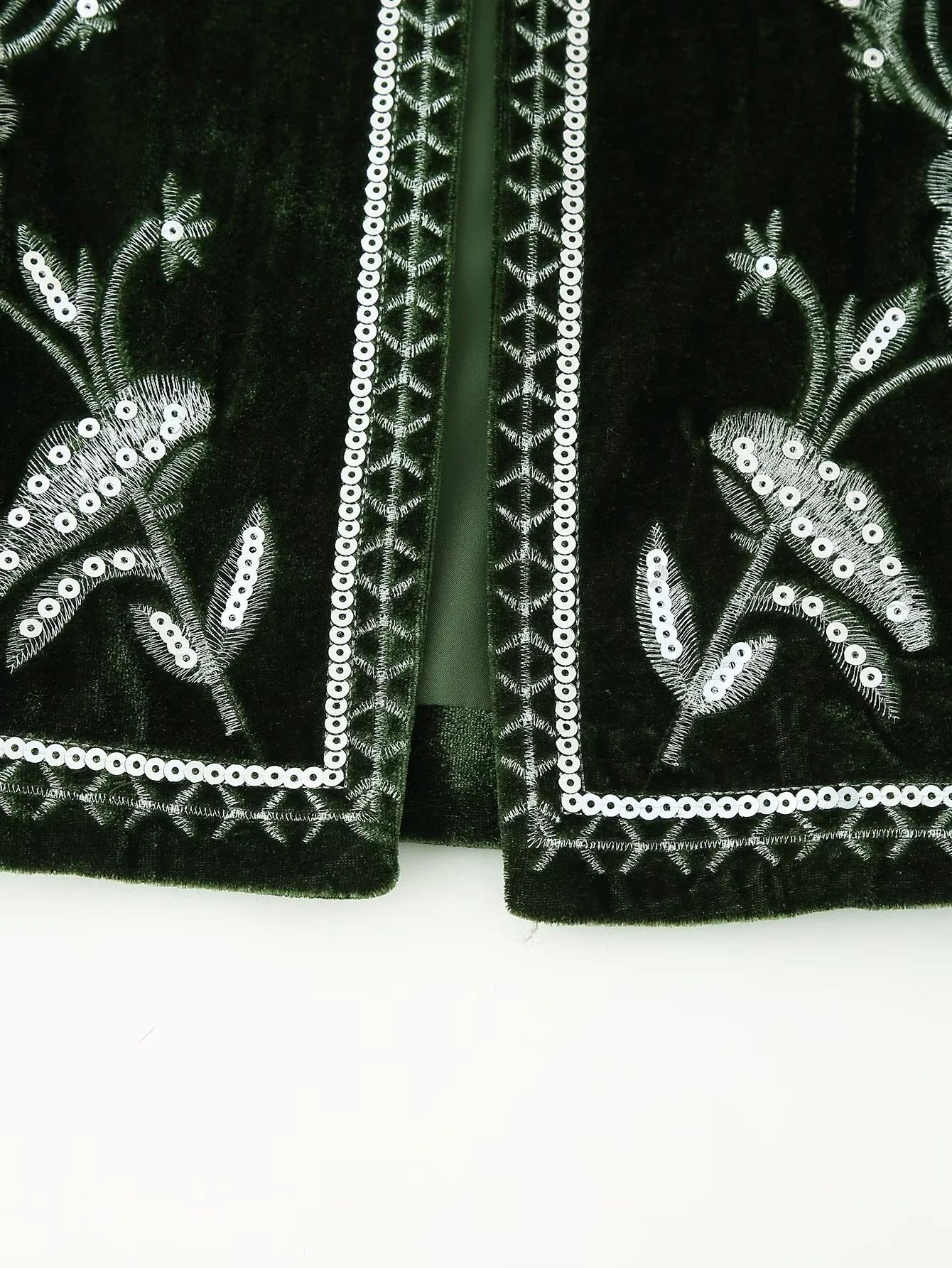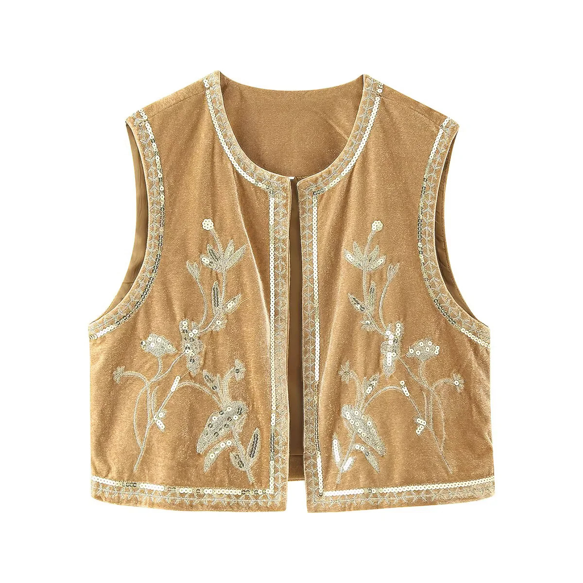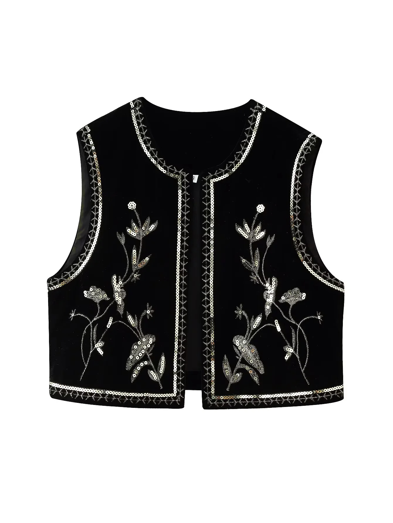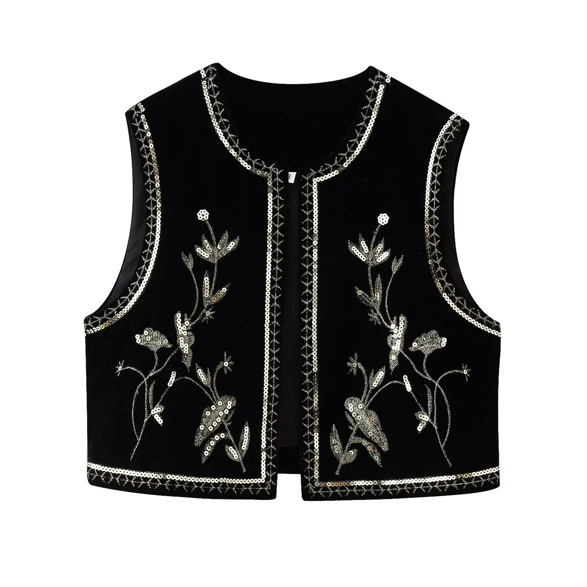 2025 봄, 가을 벨벳 스팽글 자수 민소매 카디건 조끼 크로스 보더 아마존 여성 스팽글 자켓스토어 가기
