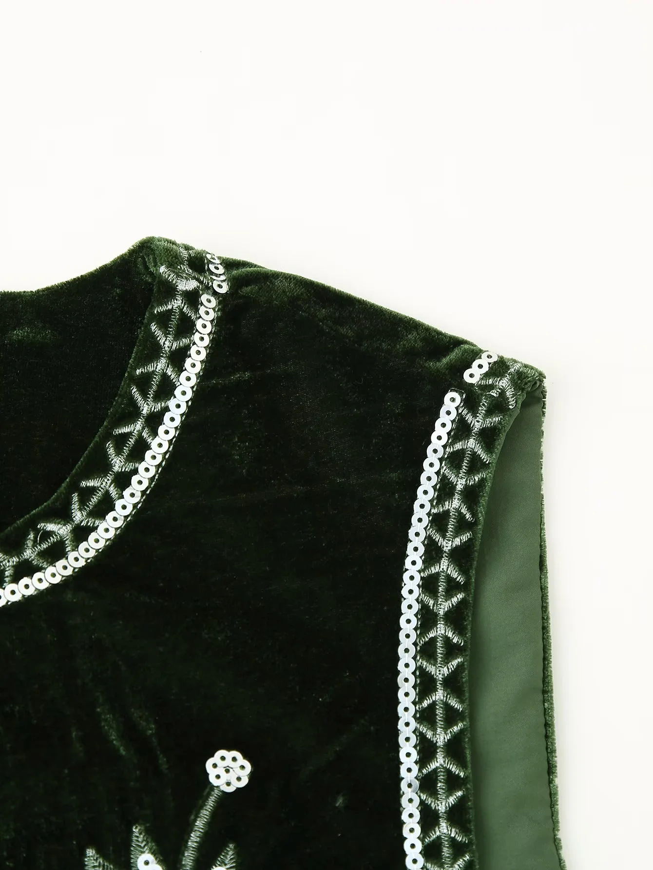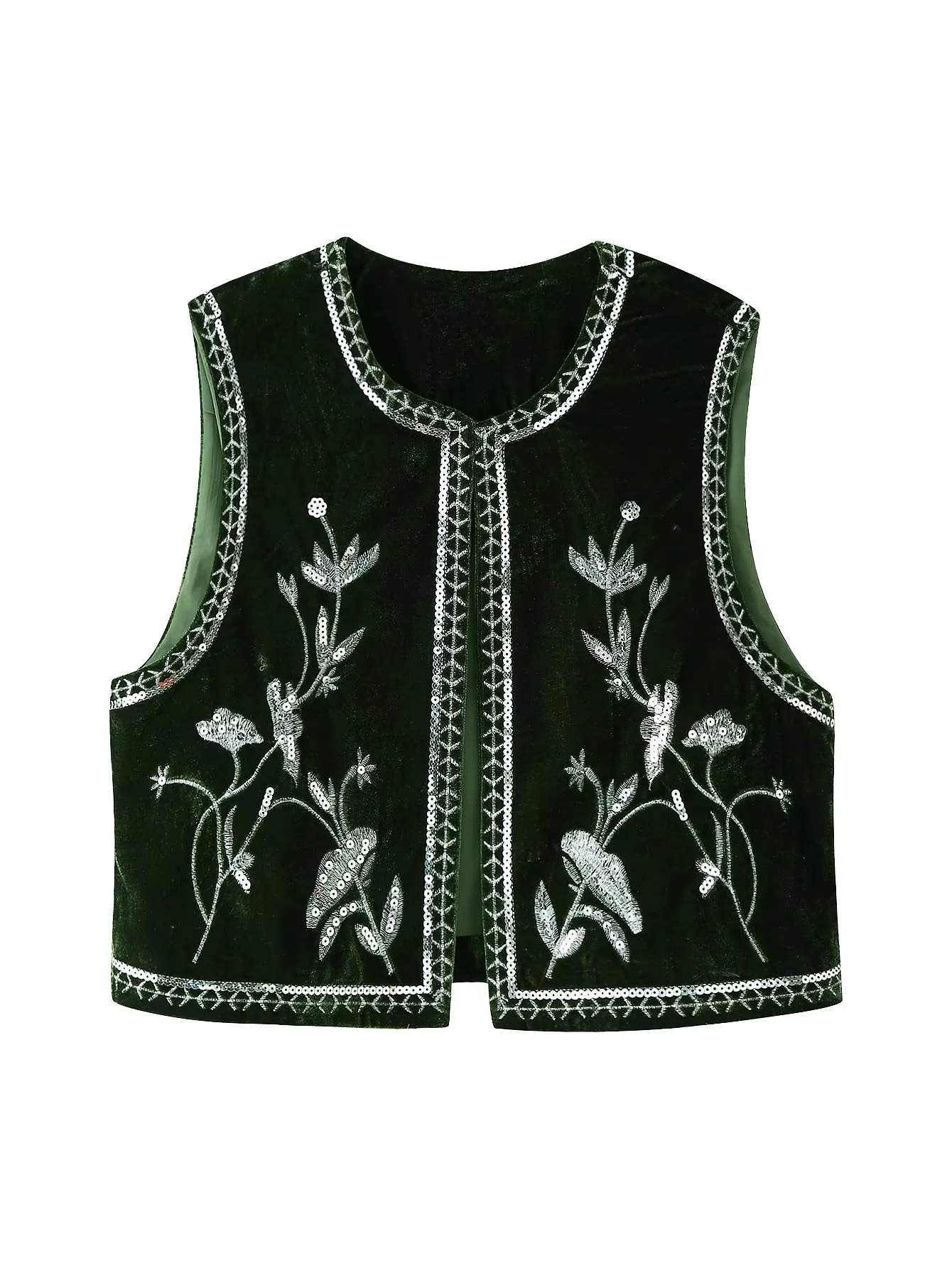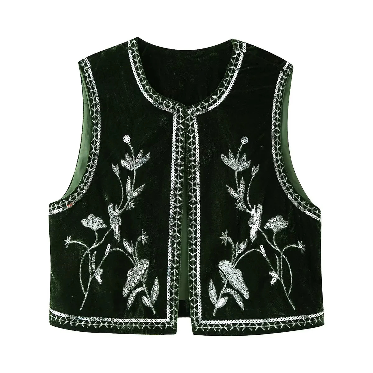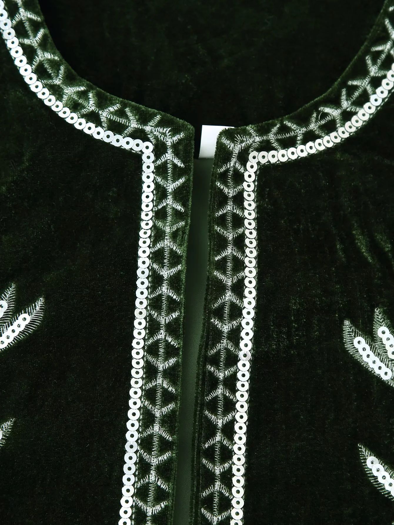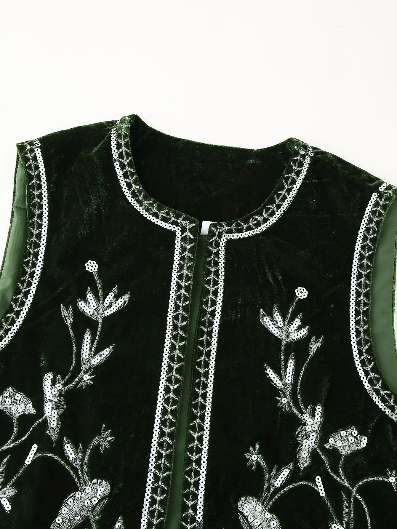 2025 봄, 가을 벨벳 스팽글 자수 민소매 카디건 조끼 크로스 보더 아마존 여성 스팽글 자켓스토어 가기
