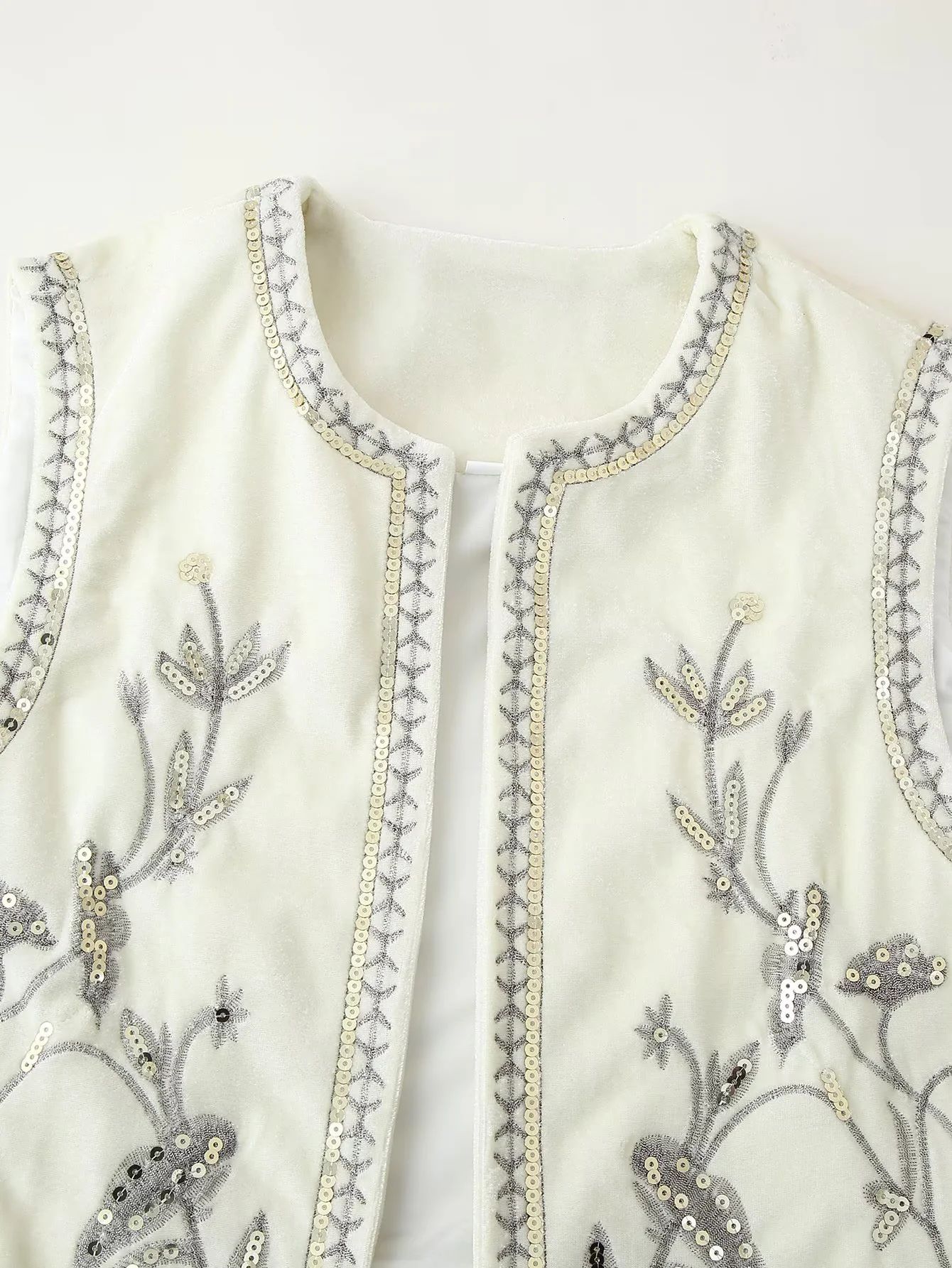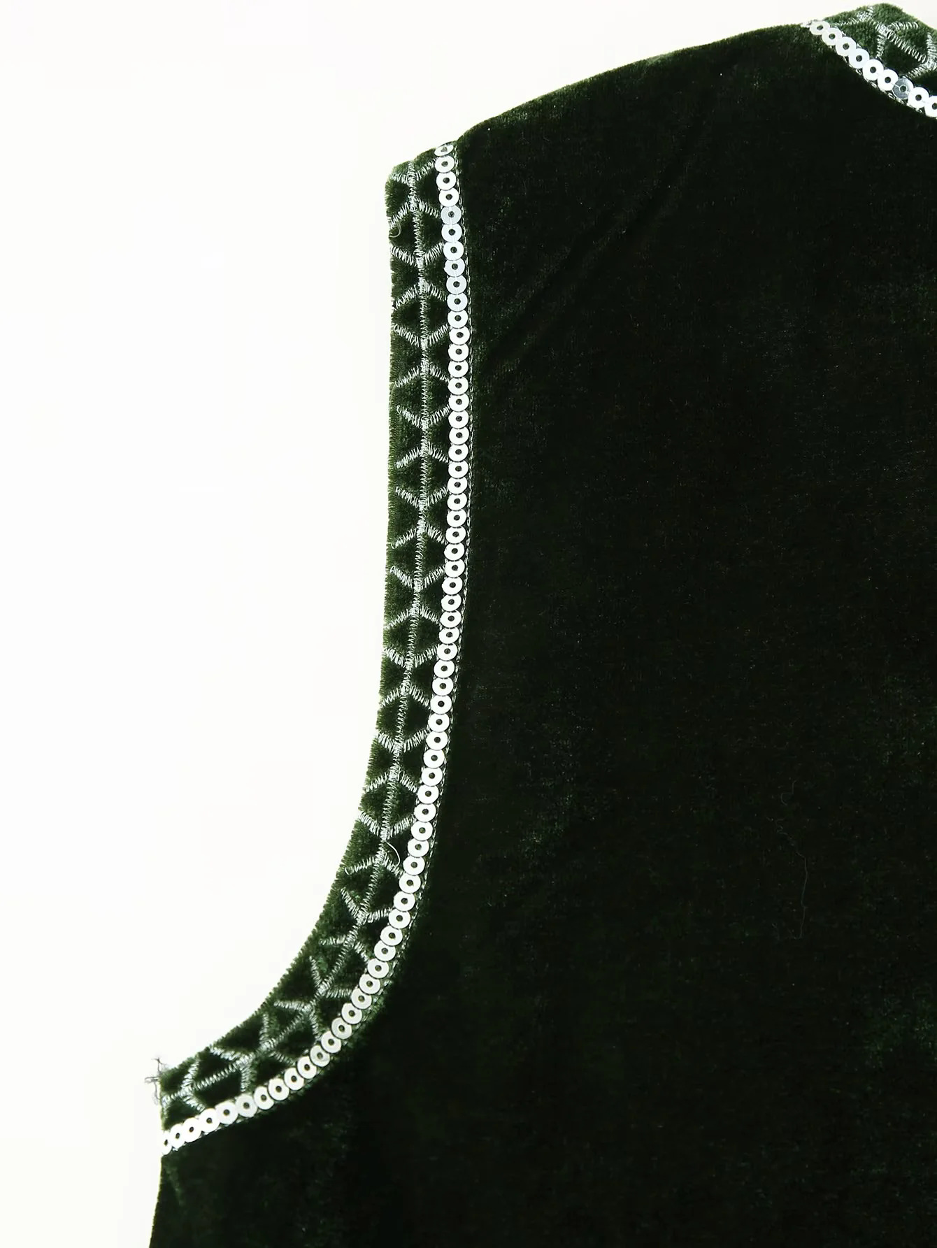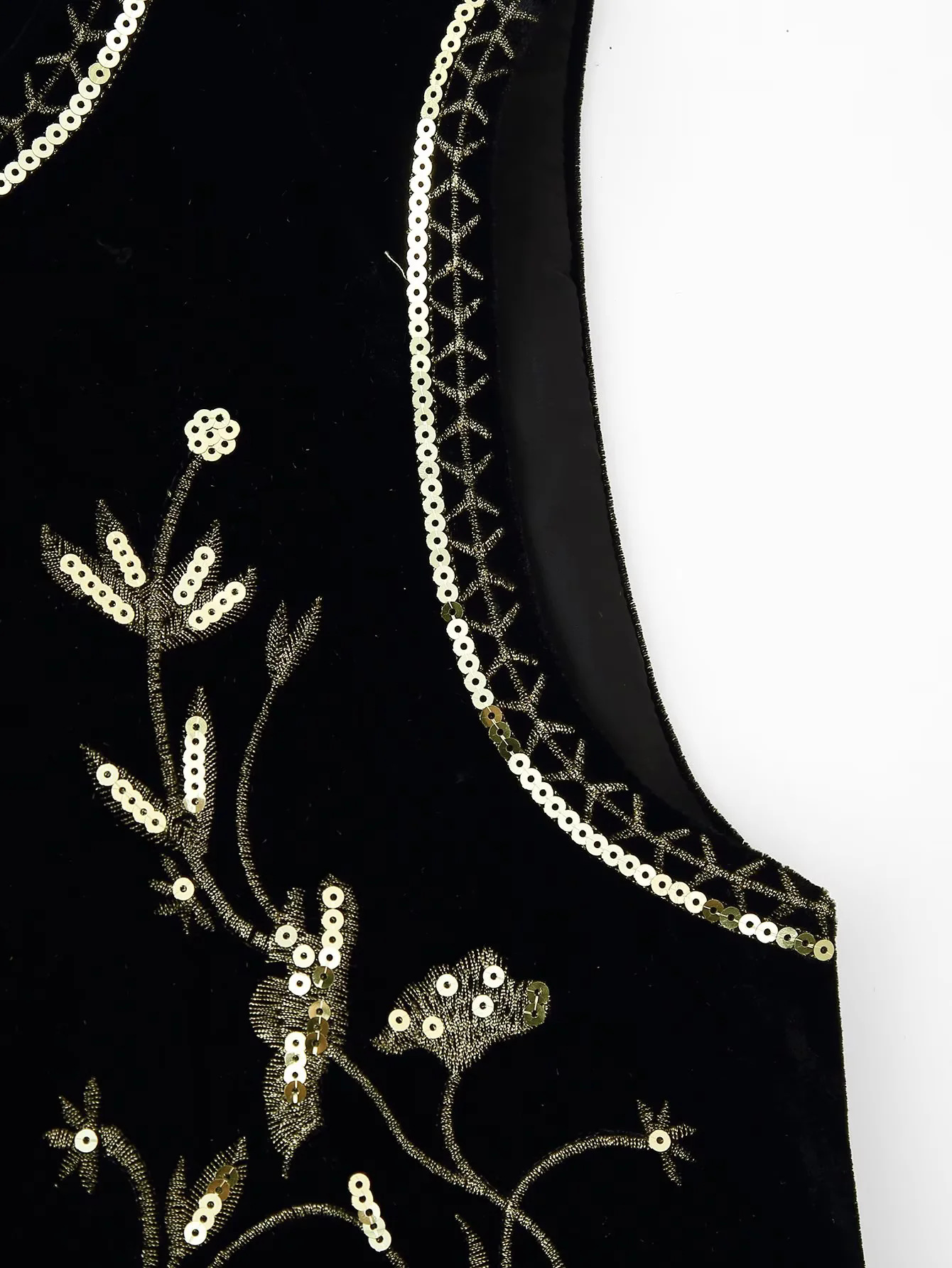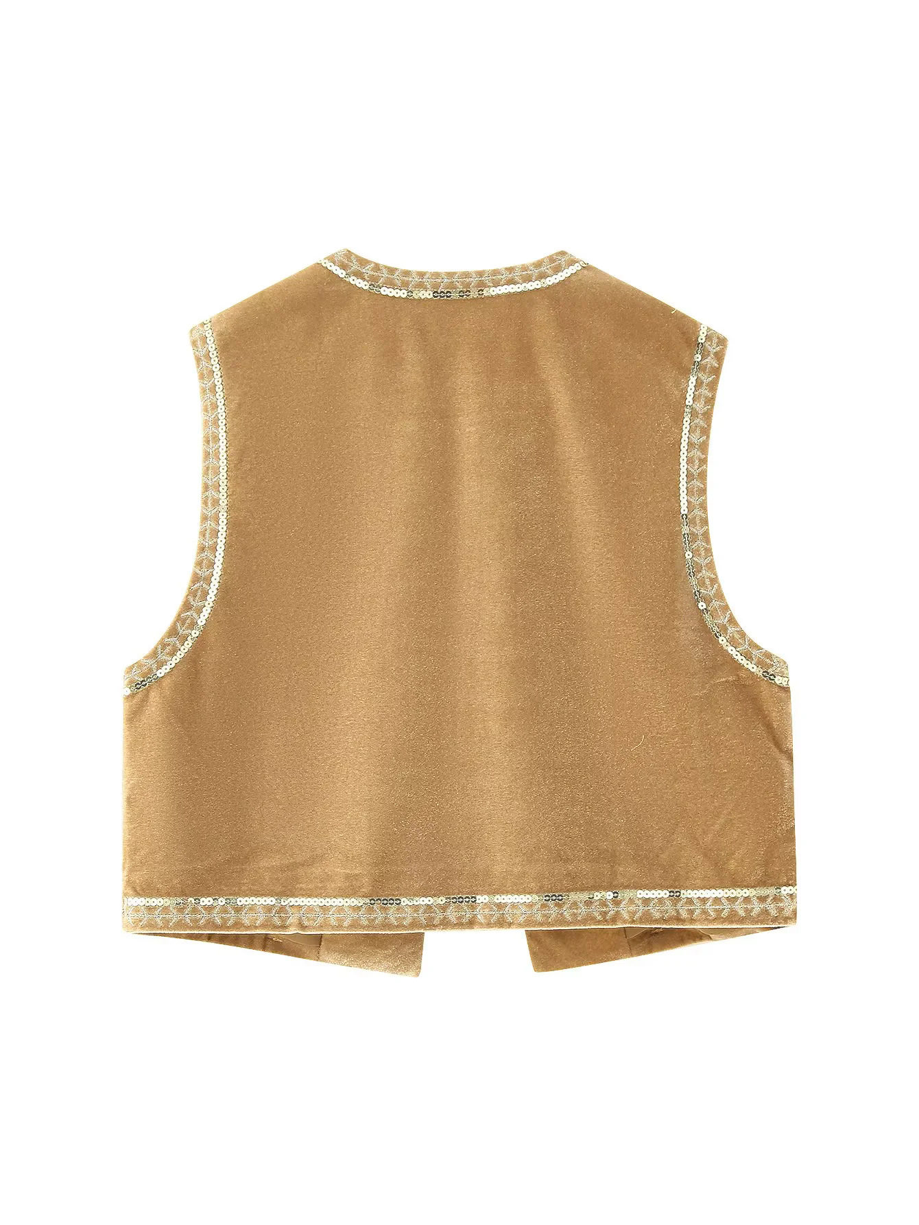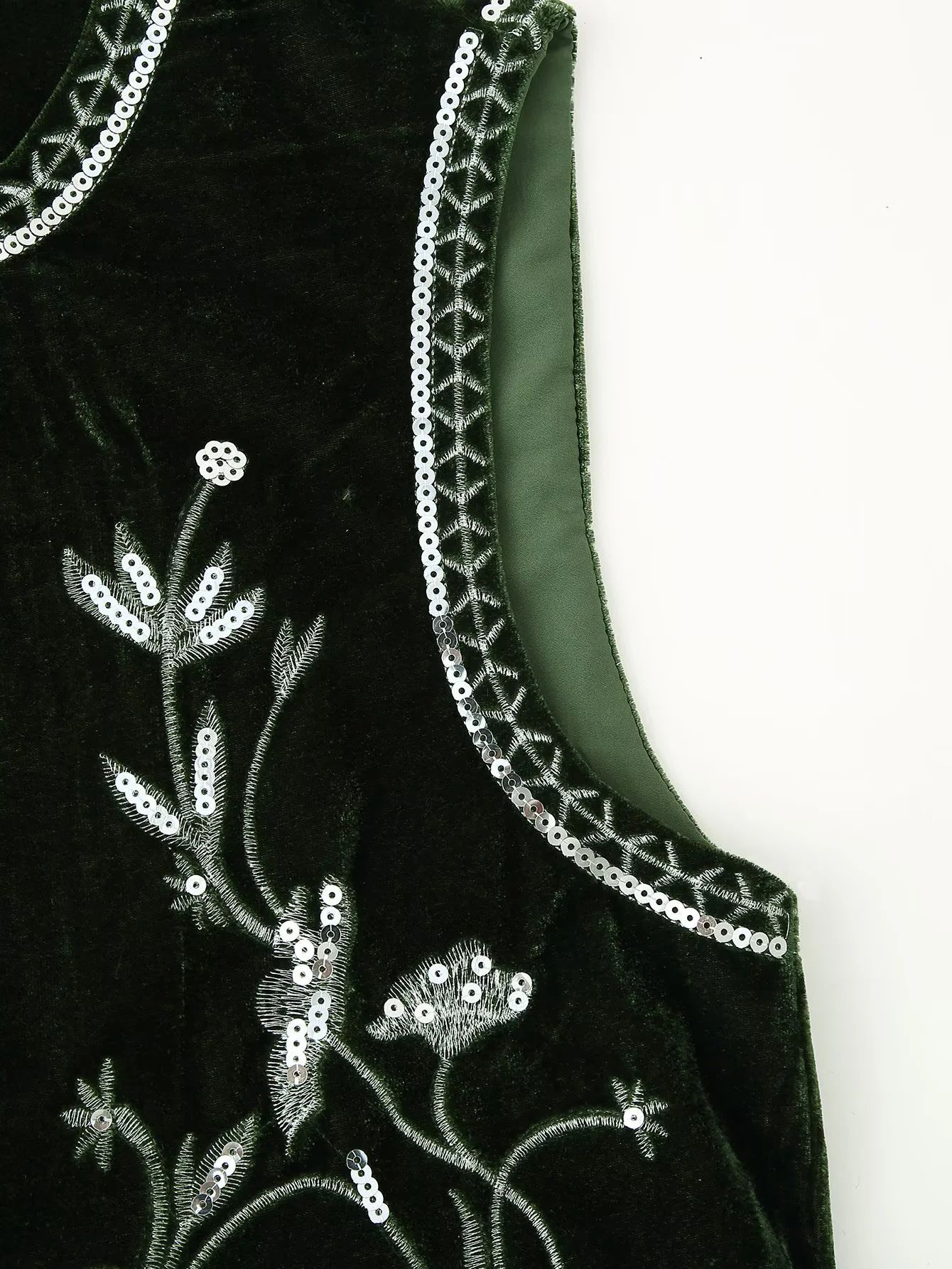 2025 봄, 가을 벨벳 스팽글 자수 민소매 카디건 조끼 크로스 보더 아마존 여성 스팽글 자켓스토어 가기