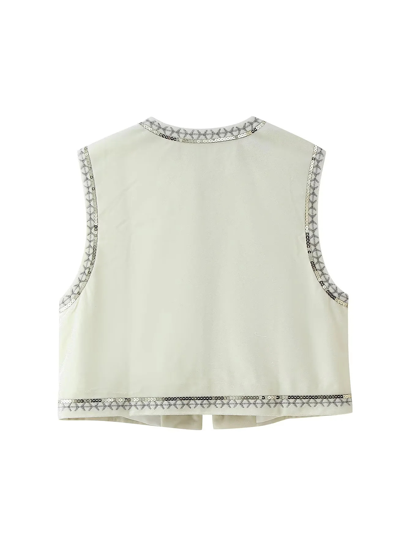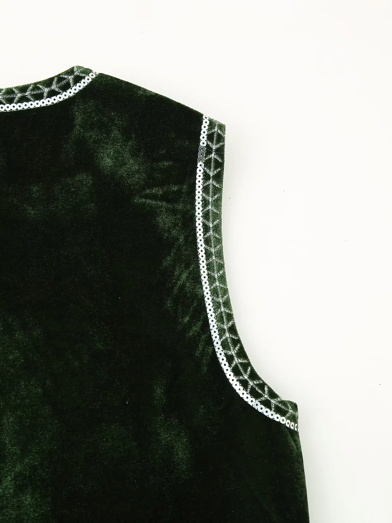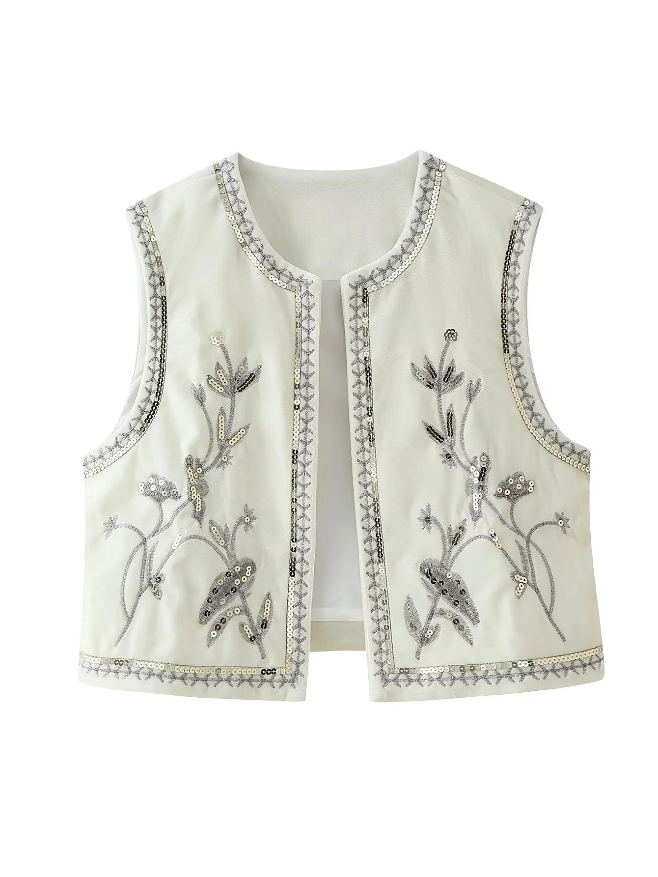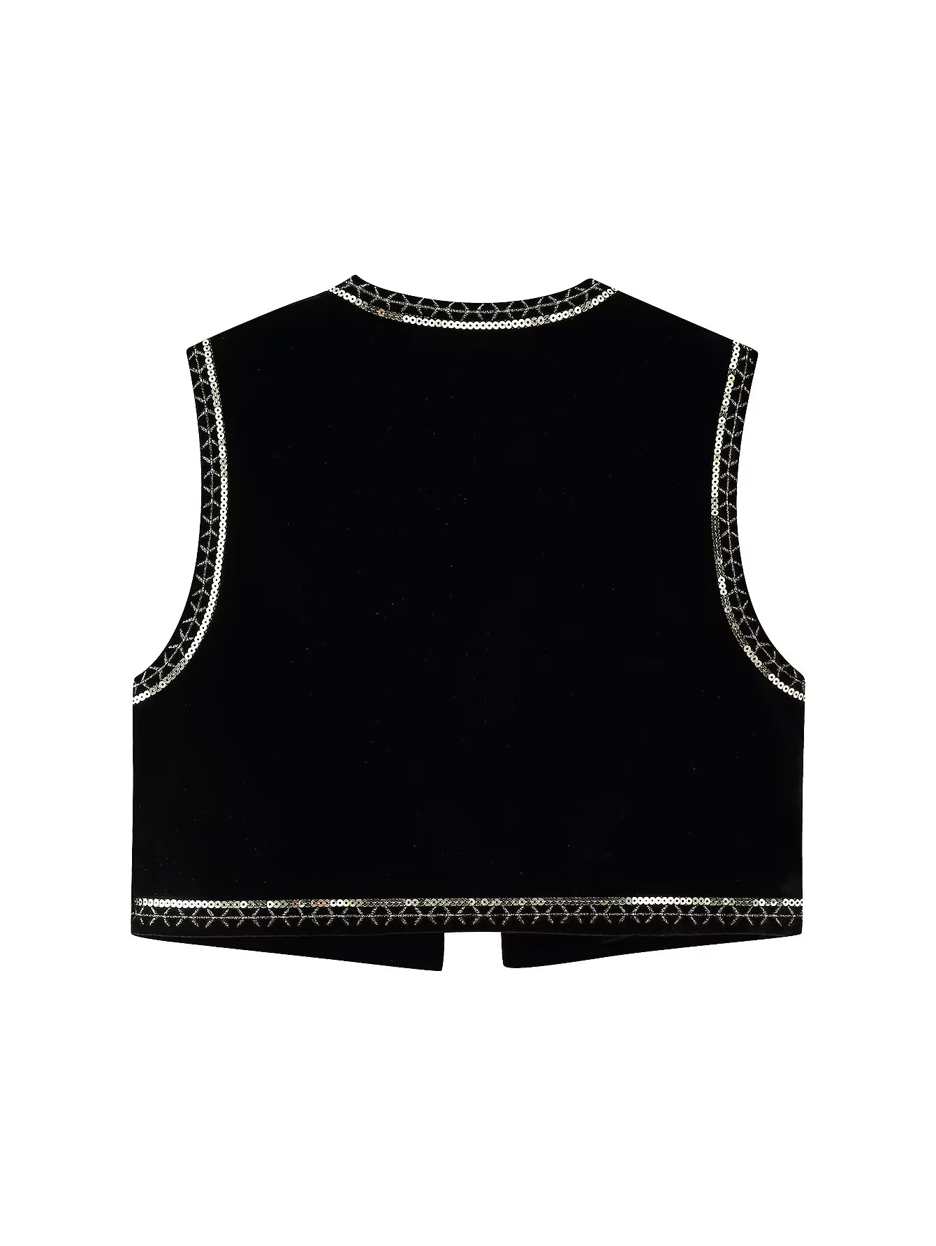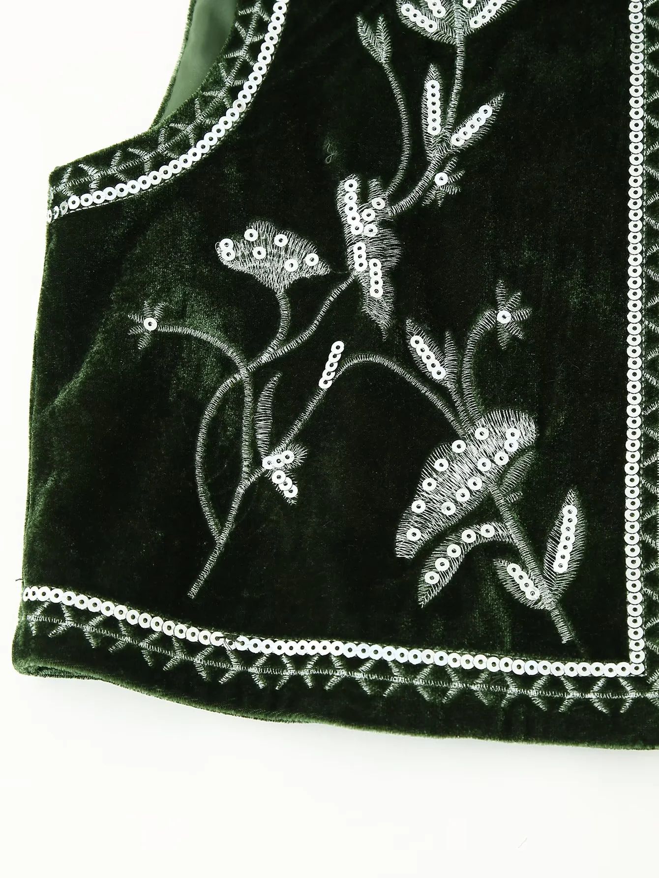 2025 봄, 가을 벨벳 스팽글 자수 민소매 카디건 조끼 크로스 보더 아마존 여성 스팽글 자켓스토어 가기