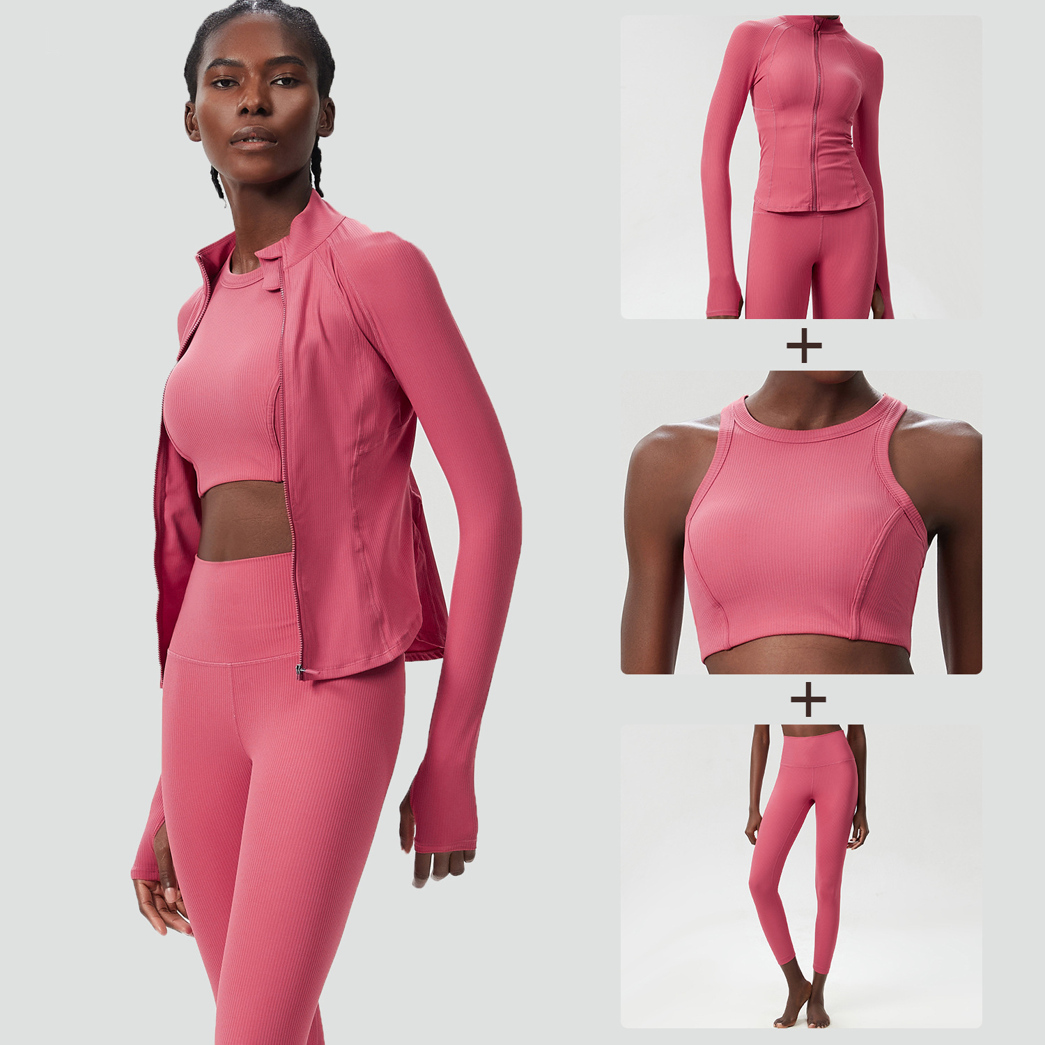 • YB422 브라 + LP444 바지 + AT492 자켓 3종세트, 와일드베리레드