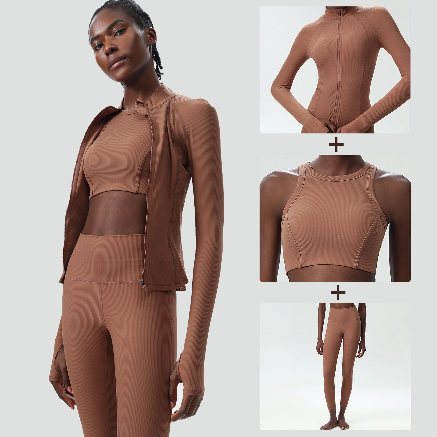 • YB422 브라 + LP444 바지 + AT492 자켓 3종세트 시나몬티 브라운
