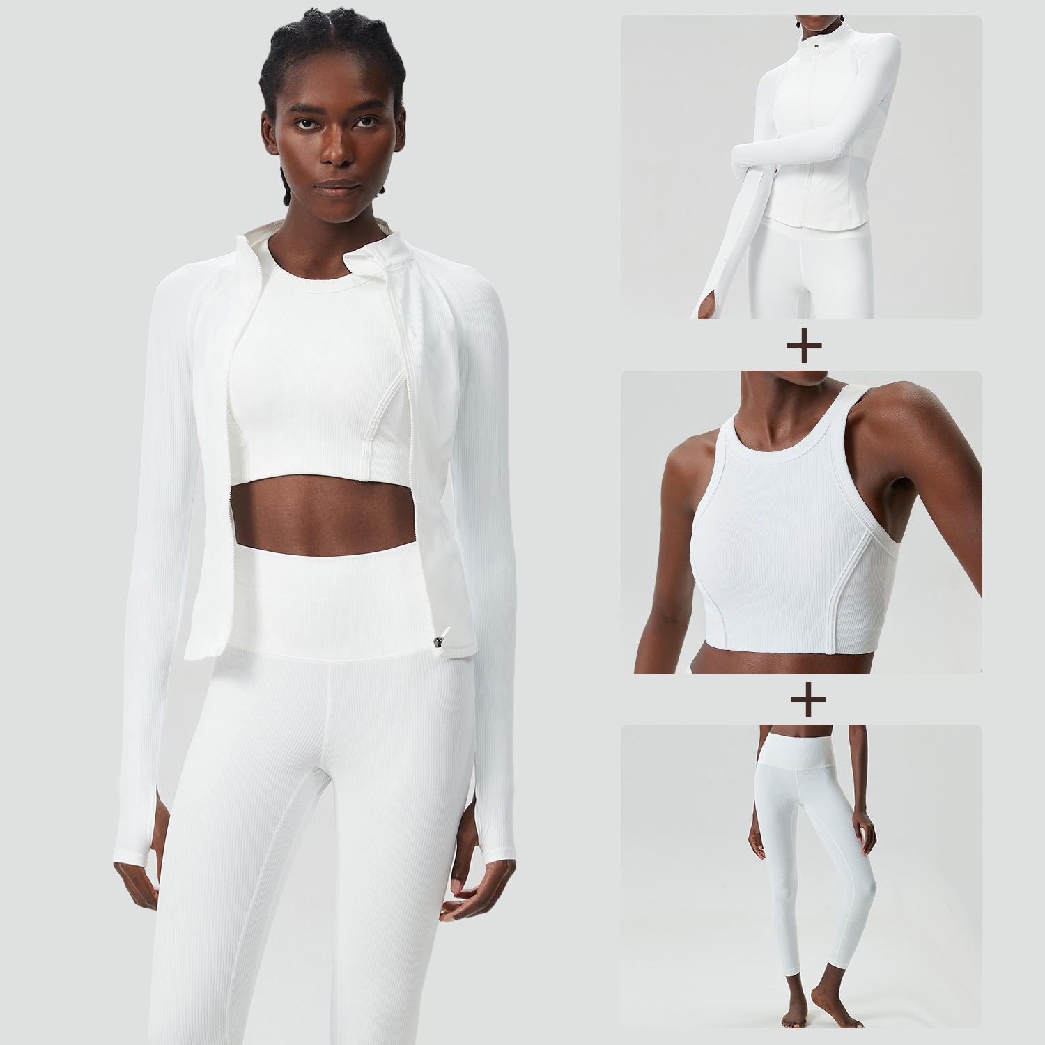 국경 간 마이크로 압축 모양의 버드 나무 잎 요가 옷 세트 여성 플러스 사이즈 달리기 스포츠 피트니스 옷 3 종 세트스토어 가기