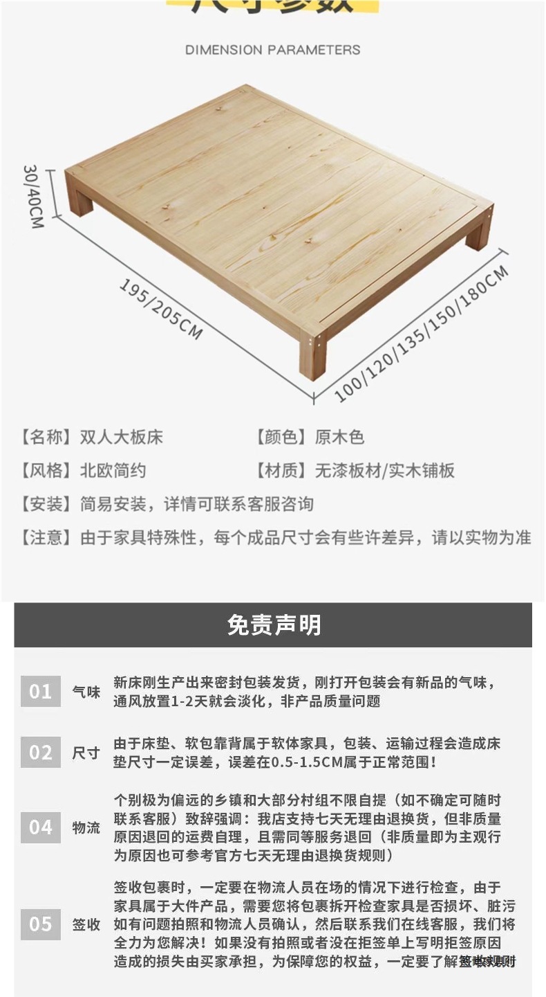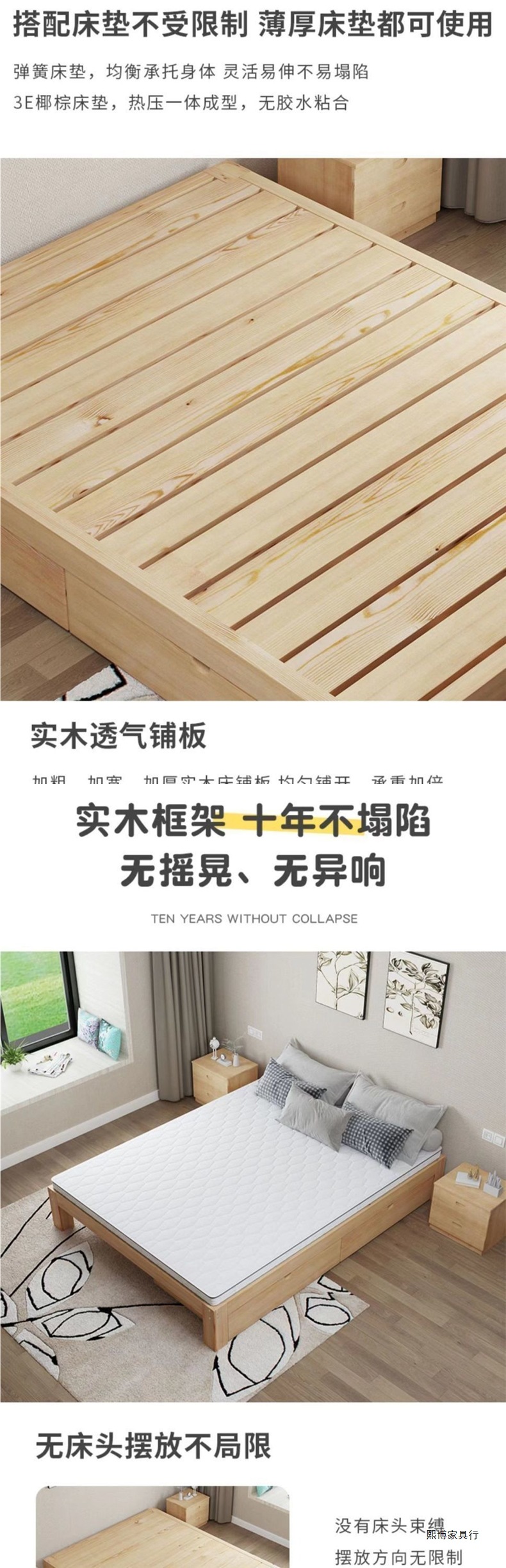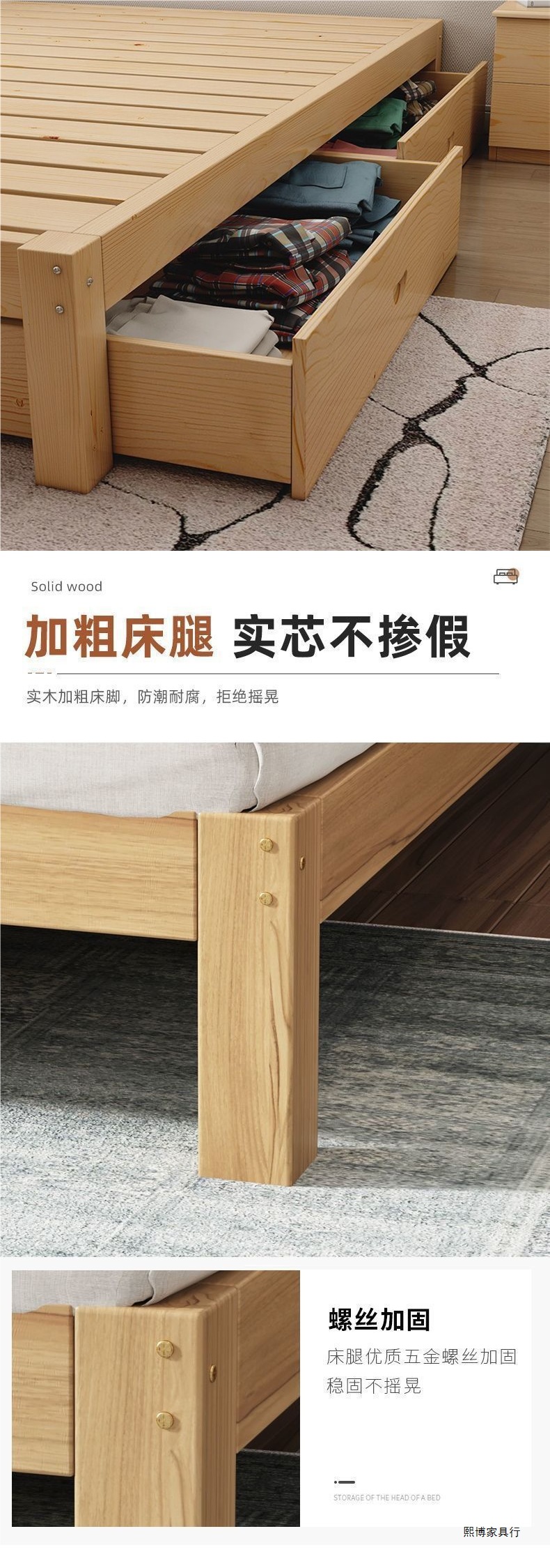 단단한 나무 침대 1.5 m 가구 더블 침대 1.8x2m 임대 단일 소나무 침대 1.2m 현대 간단한 나무 침대스토어 가기