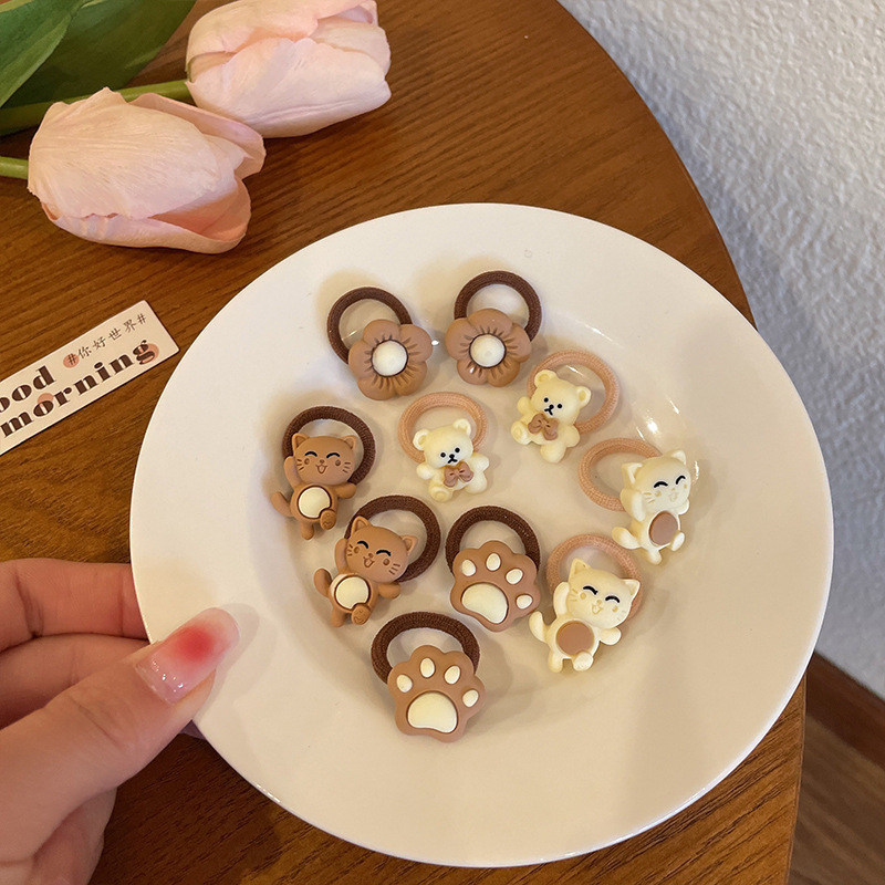 • 6#브라운 키티 고양이 머리끈 10종 세트