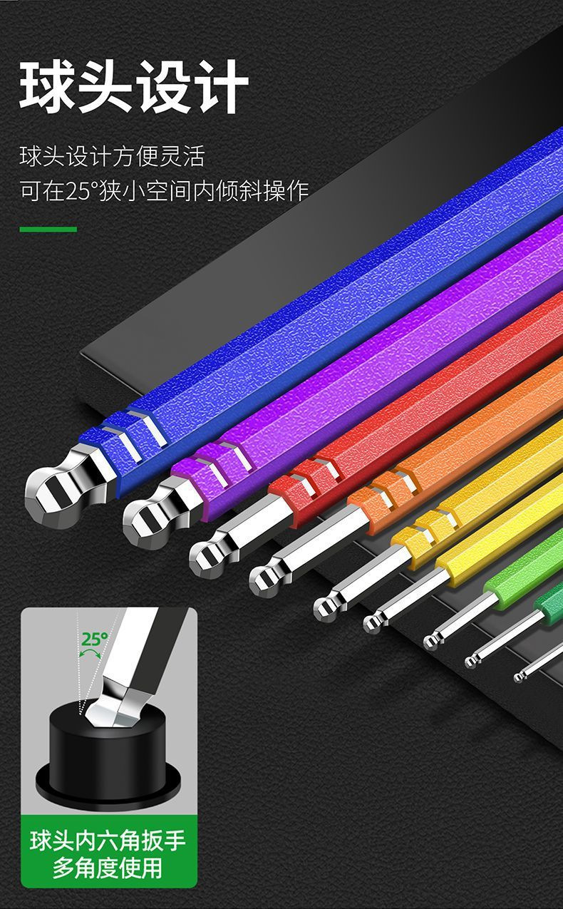 다채로운 육각형 중간 길이 확장 볼 헤드 매화 L자형 세트 6각 드라이버 도구 육각 키 렌치스토어 가기