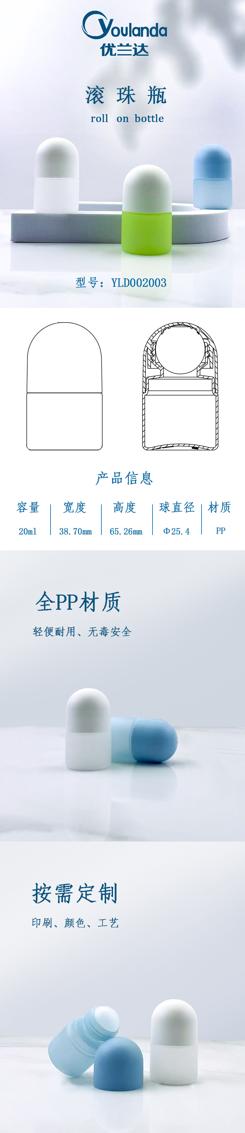 Yolanda PP 에센셜 오일 롤링 구슬 병 빈 병 20ml 볼 여행 병 보틀 워킹 비드 발한 병 소재