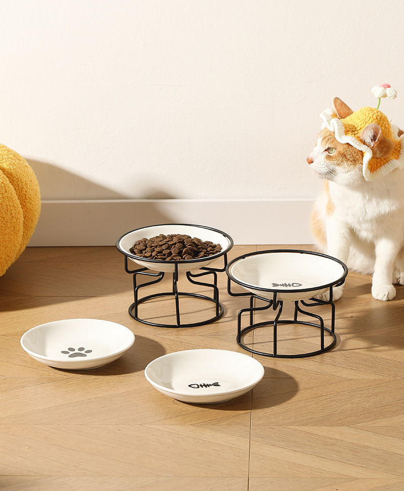 애완 동물 세라믹 그릇 북유럽 고양이 그릇 높은 다리 세라믹 고양이 먹이 그릇 간식 통조림 판 반대로 자궁 경부 스폰서 반대로 전복 고양이 먹이 분지스토어 가기