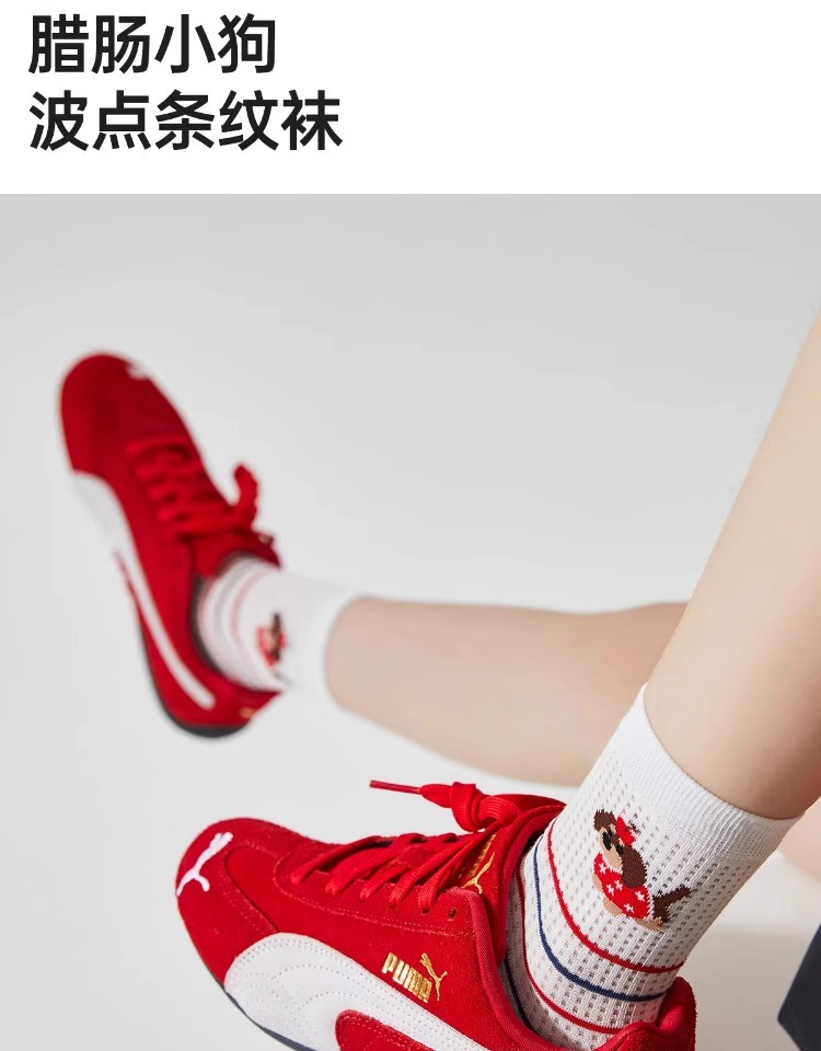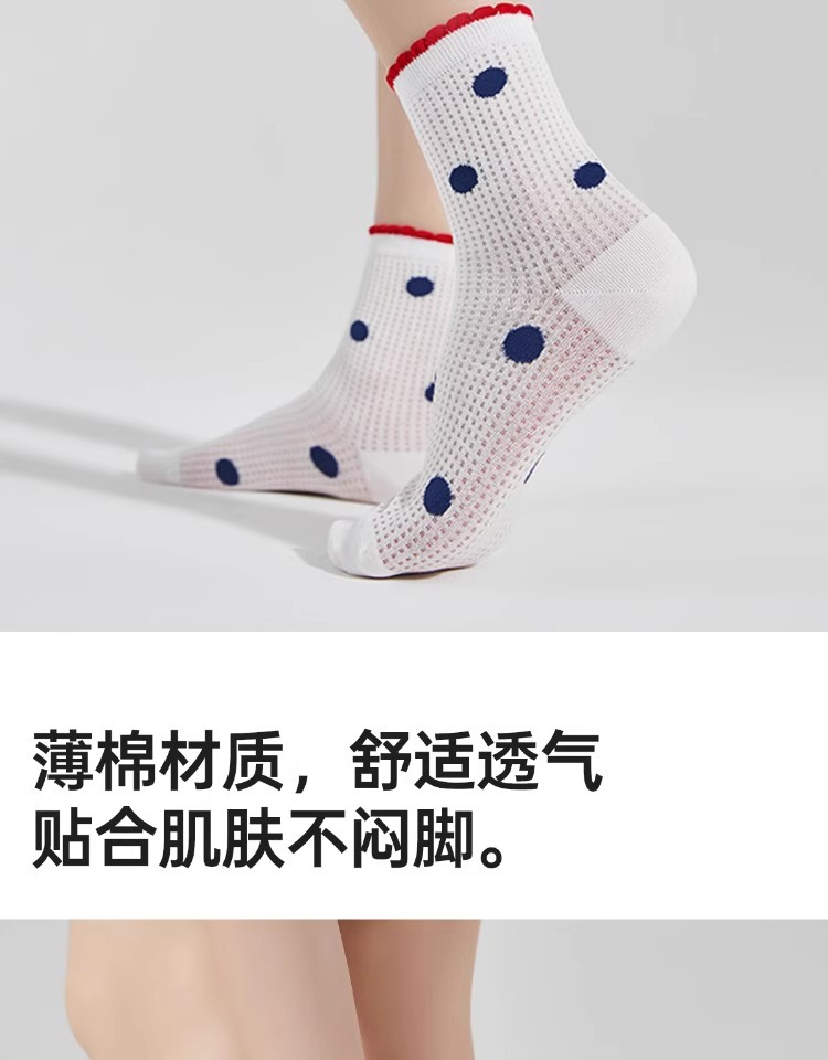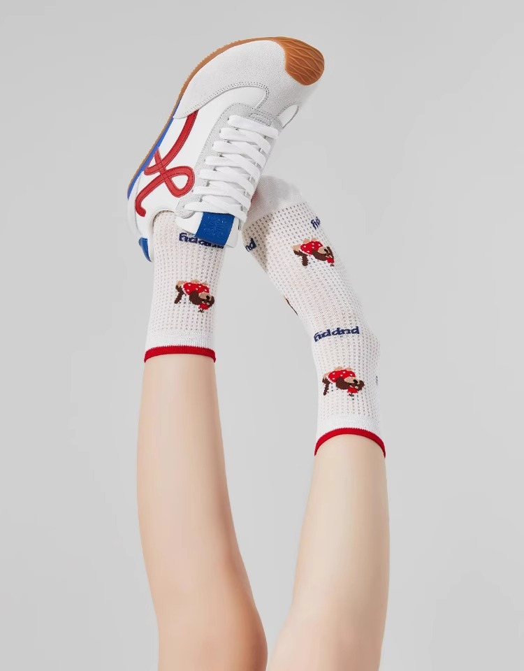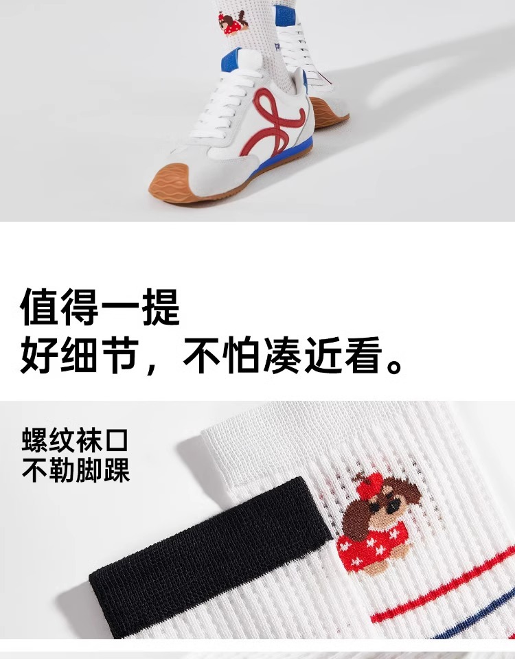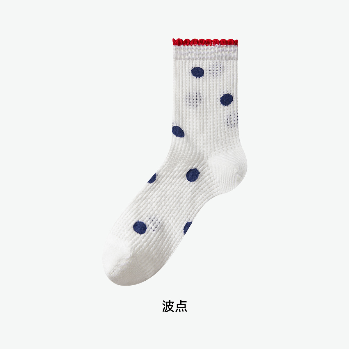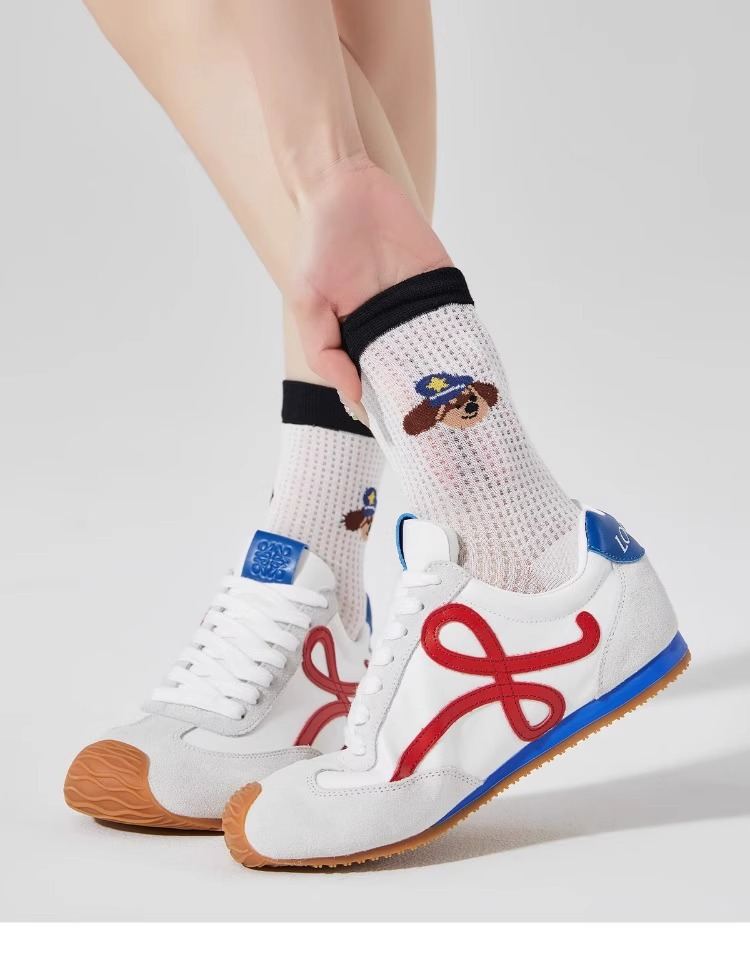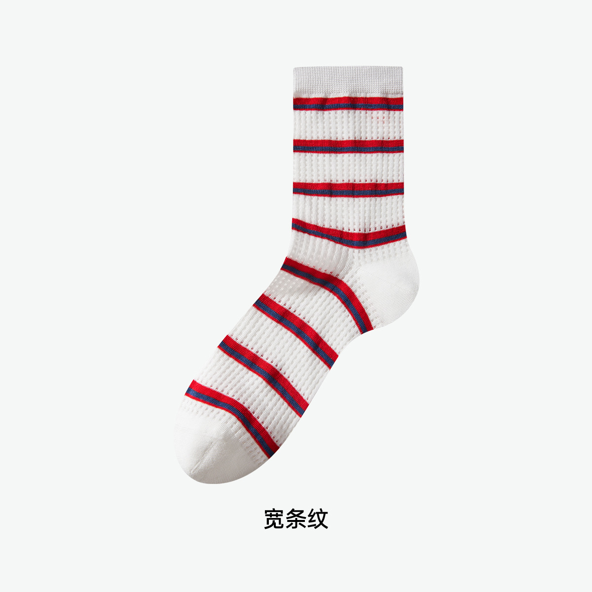 양말 여성의 봄과 여름 얇은 순면 메쉬 줄무늬 만화 강아지 중간 길이 양말 귀여운 긴 긴 여자의 양말