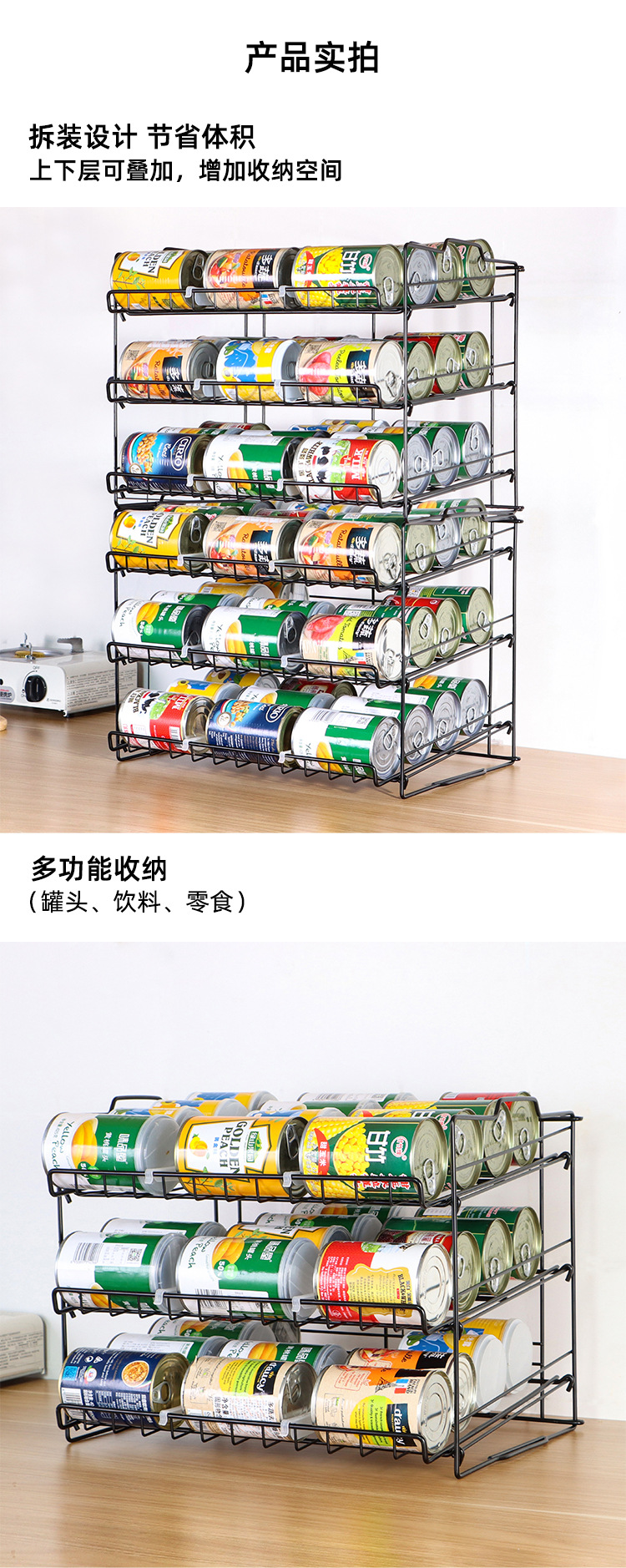 맞춤형 도매 가정용 바닥 멀티 레이어 스토리지 랙 대용량 주방 스낵 랙 쌓을 수있는 캔 스토리지 랙