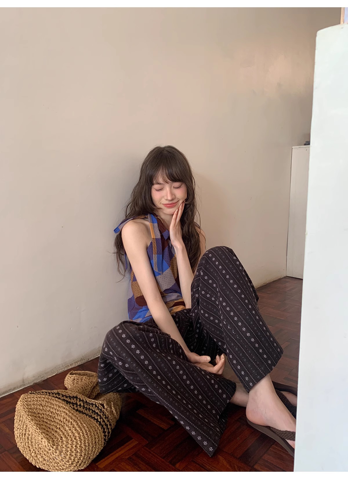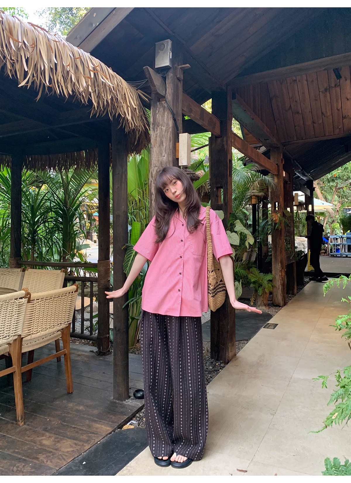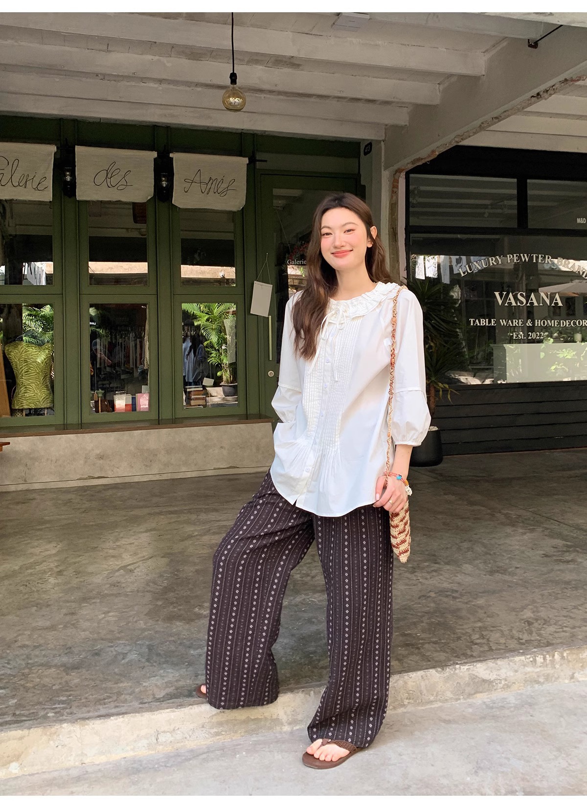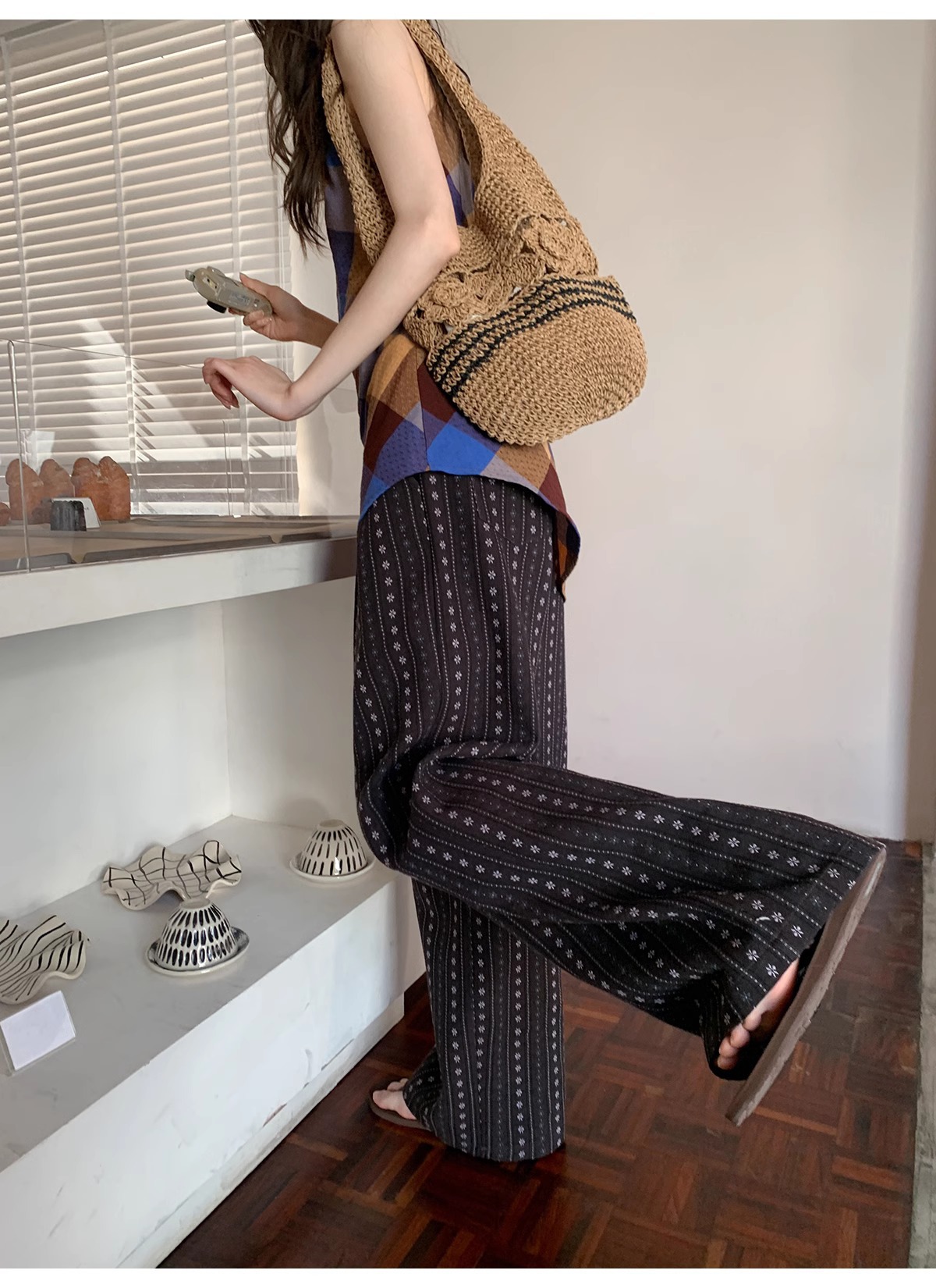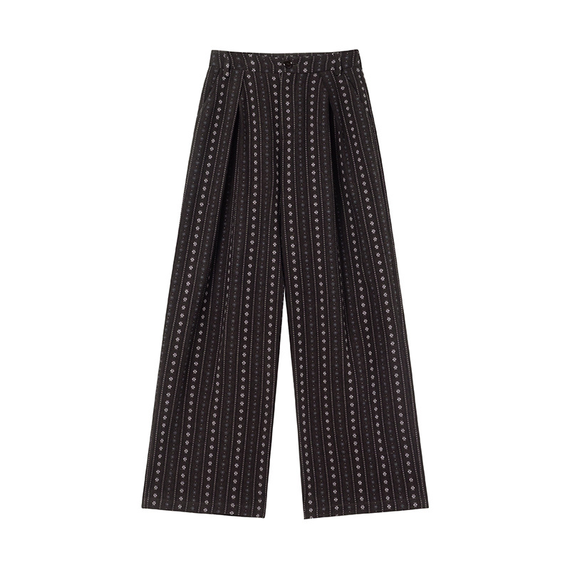 빈티지 자카드 직조 및 자수 캐주얼 와이드 레그 바지 여성용 얇은 2025 년 여름 새로운 높은 허리 느슨한 스트레이트 바지스토어 가기