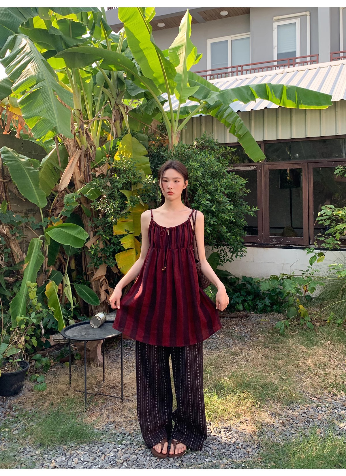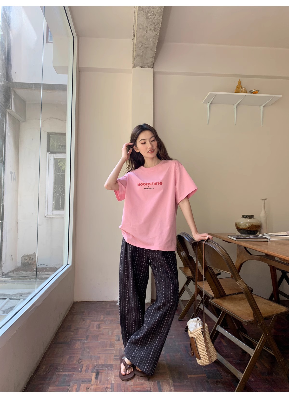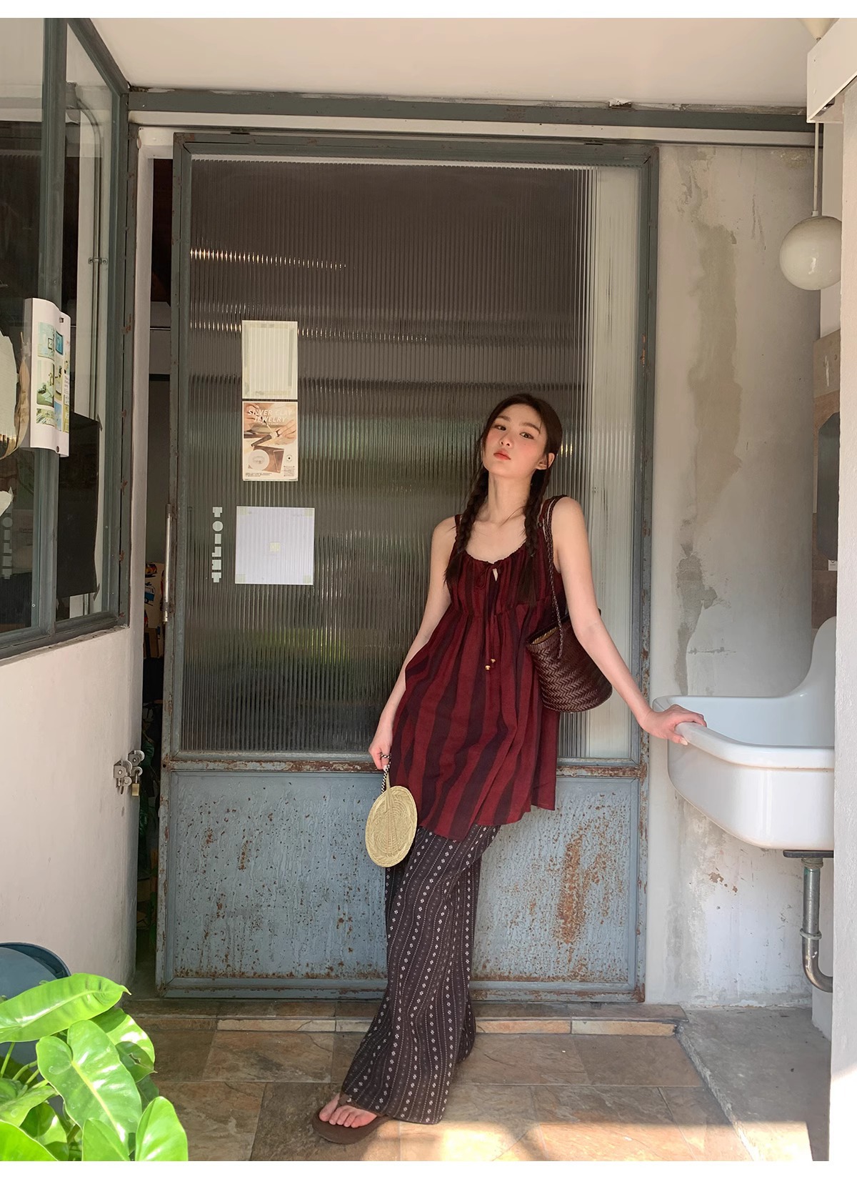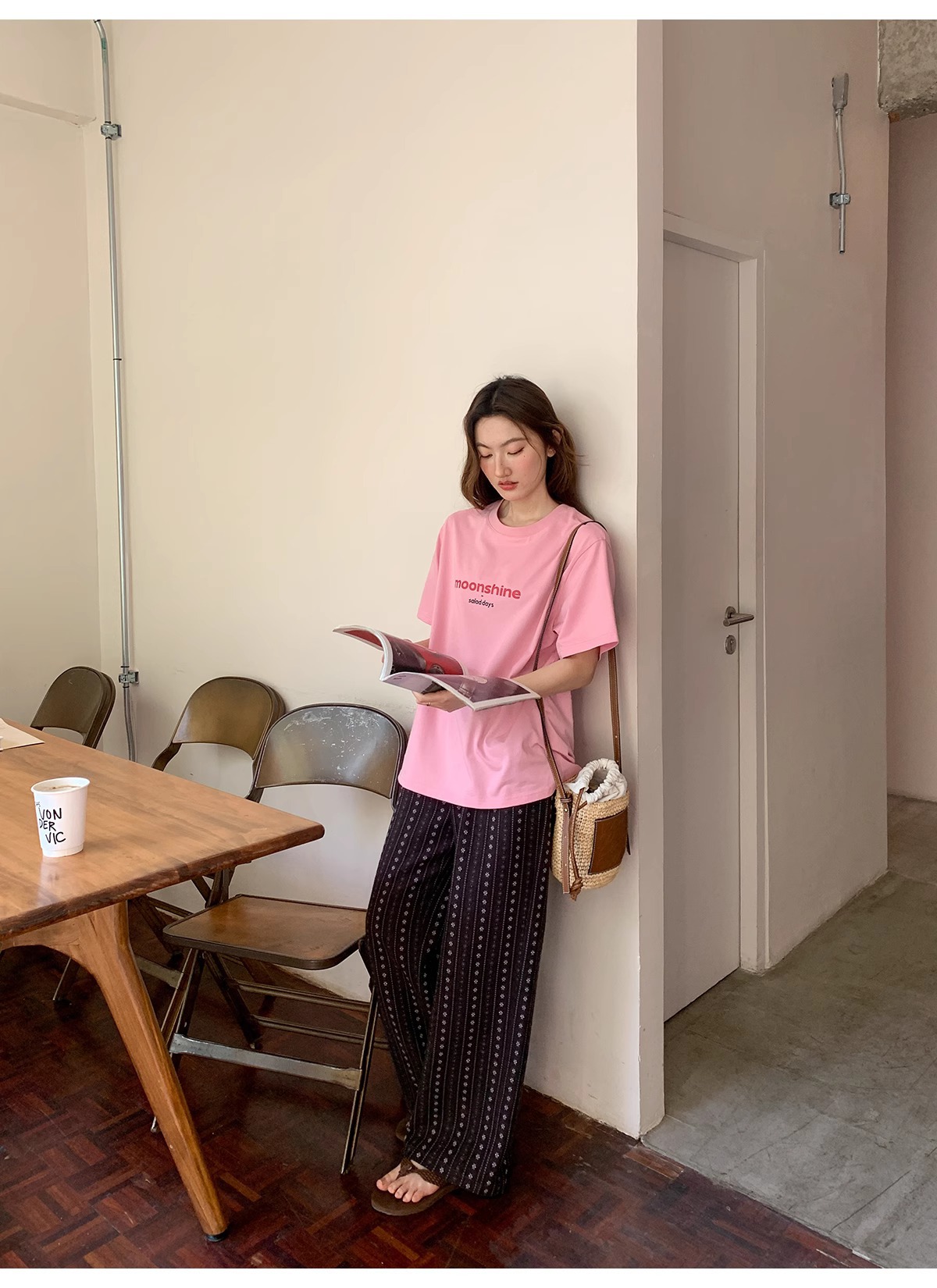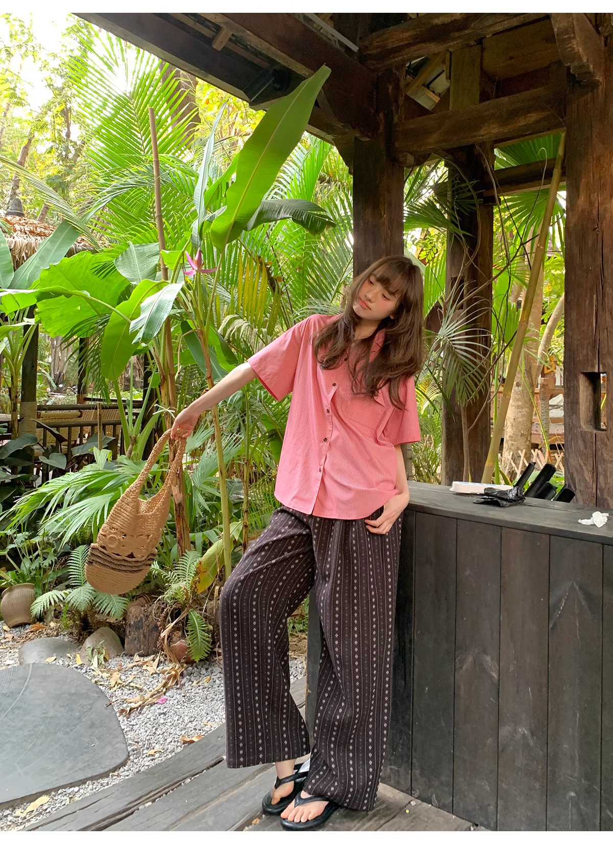 빈티지 자카드 직조 및 자수 캐주얼 와이드 레그 바지 여성용 얇은 2025 년 여름 새로운 높은 허리 느슨한 스트레이트 바지스토어 가기
