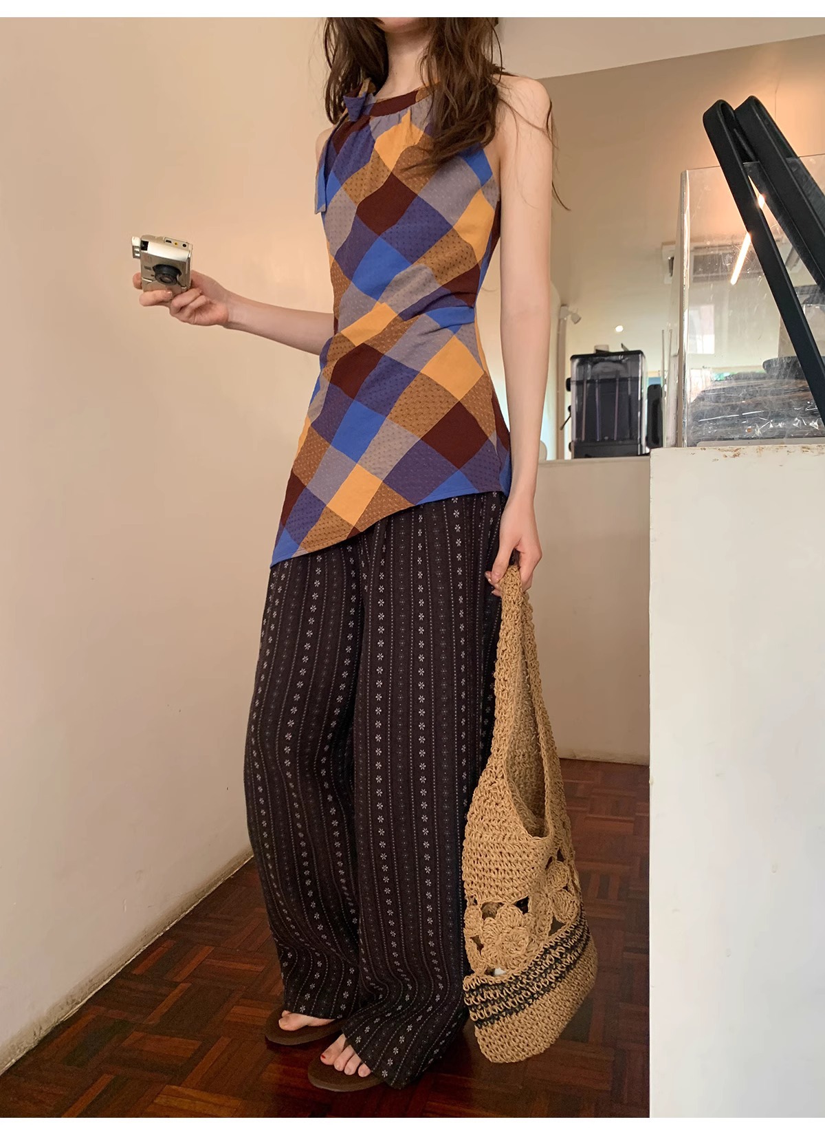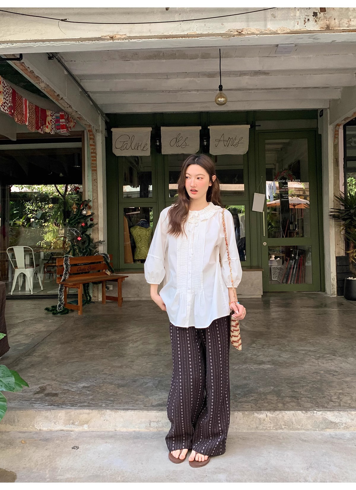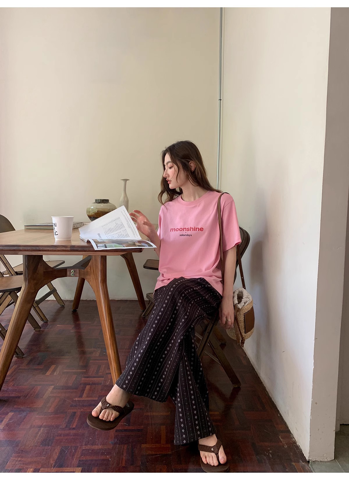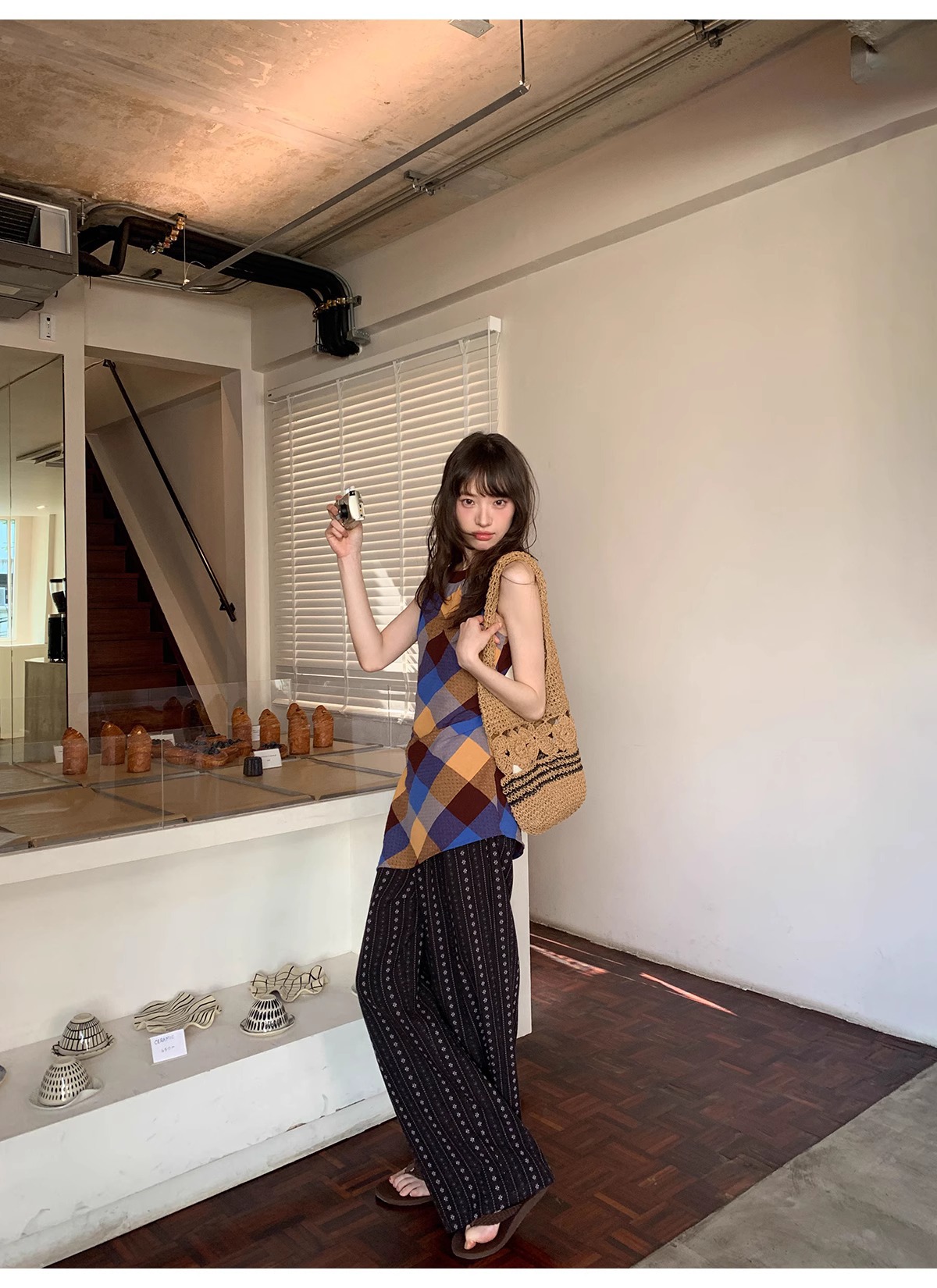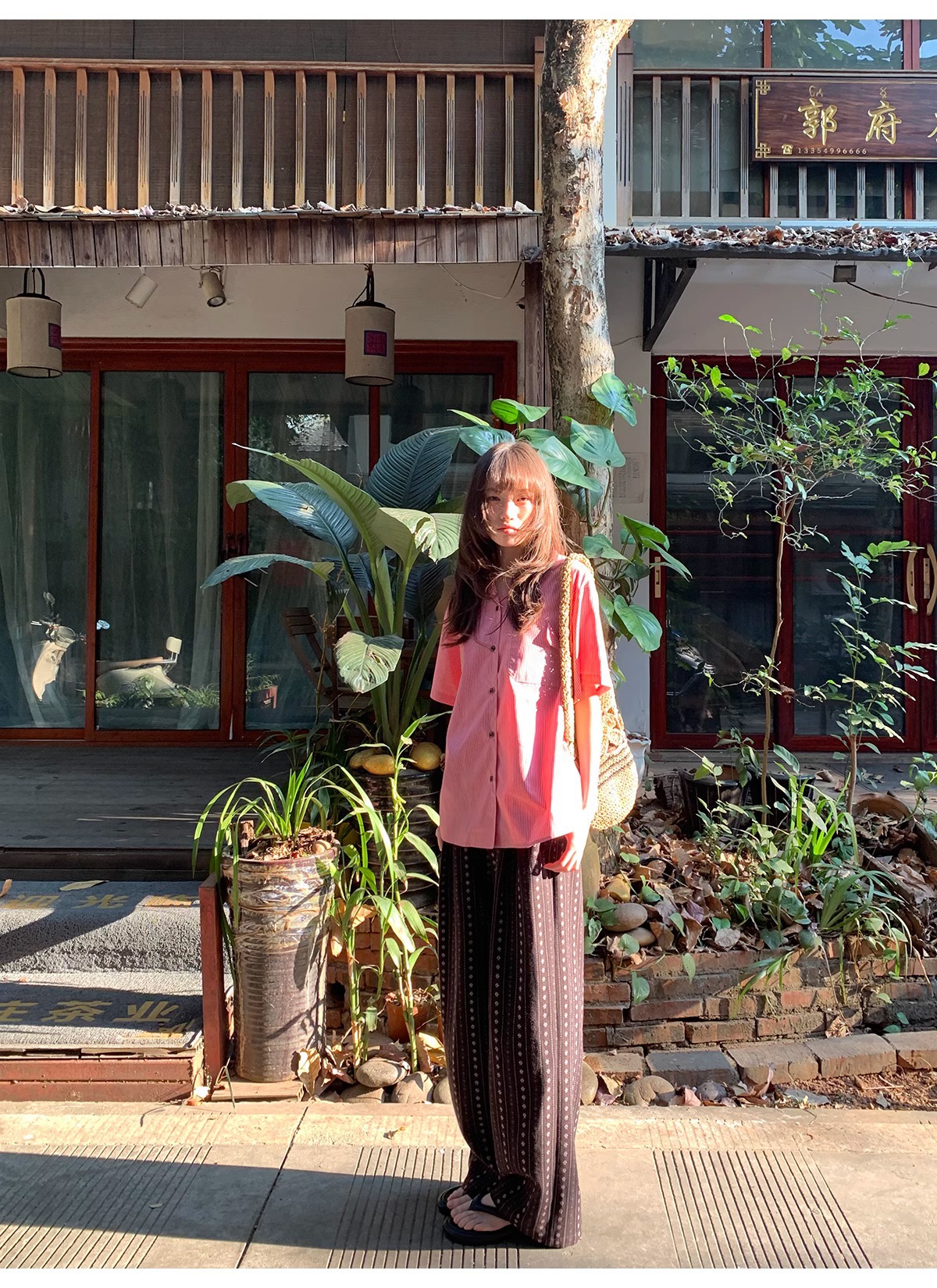 빈티지 자카드 직조 및 자수 캐주얼 와이드 레그 바지 여성용 얇은 2025 년 여름 새로운 높은 허리 느슨한 스트레이트 바지스토어 가기