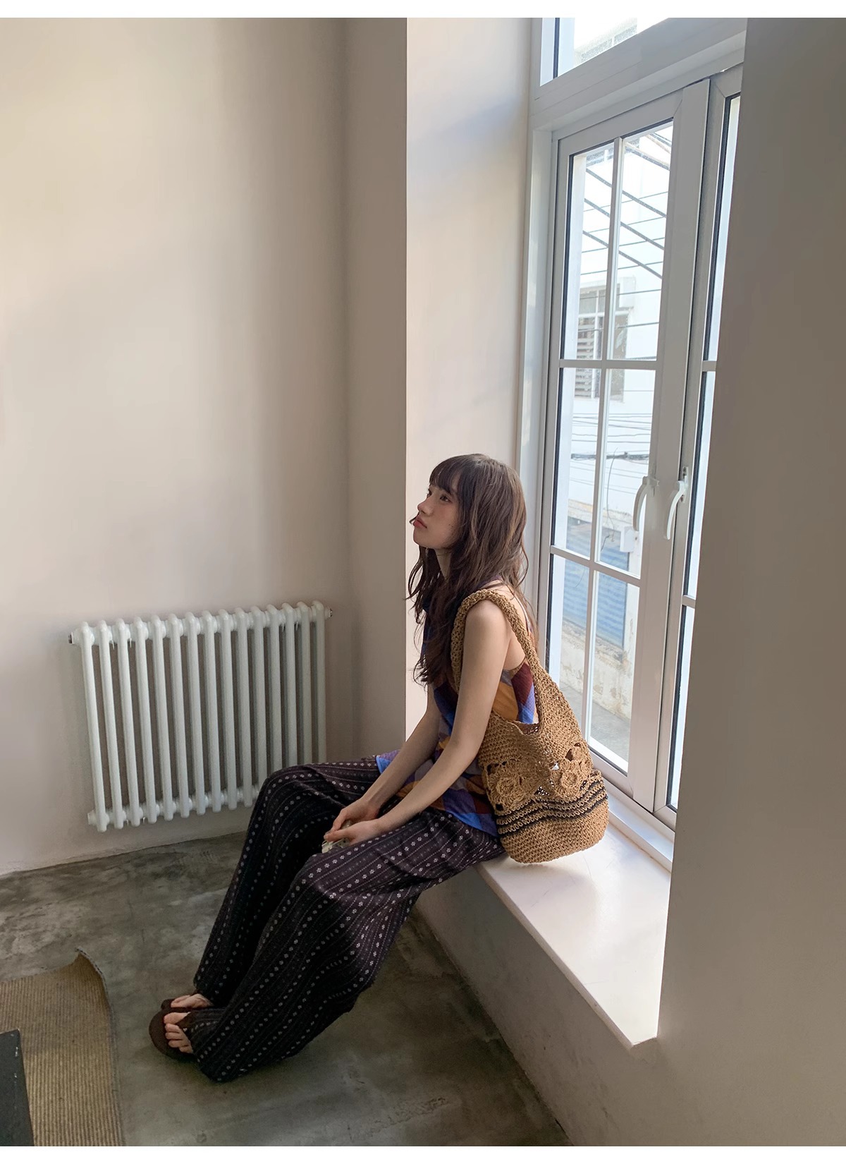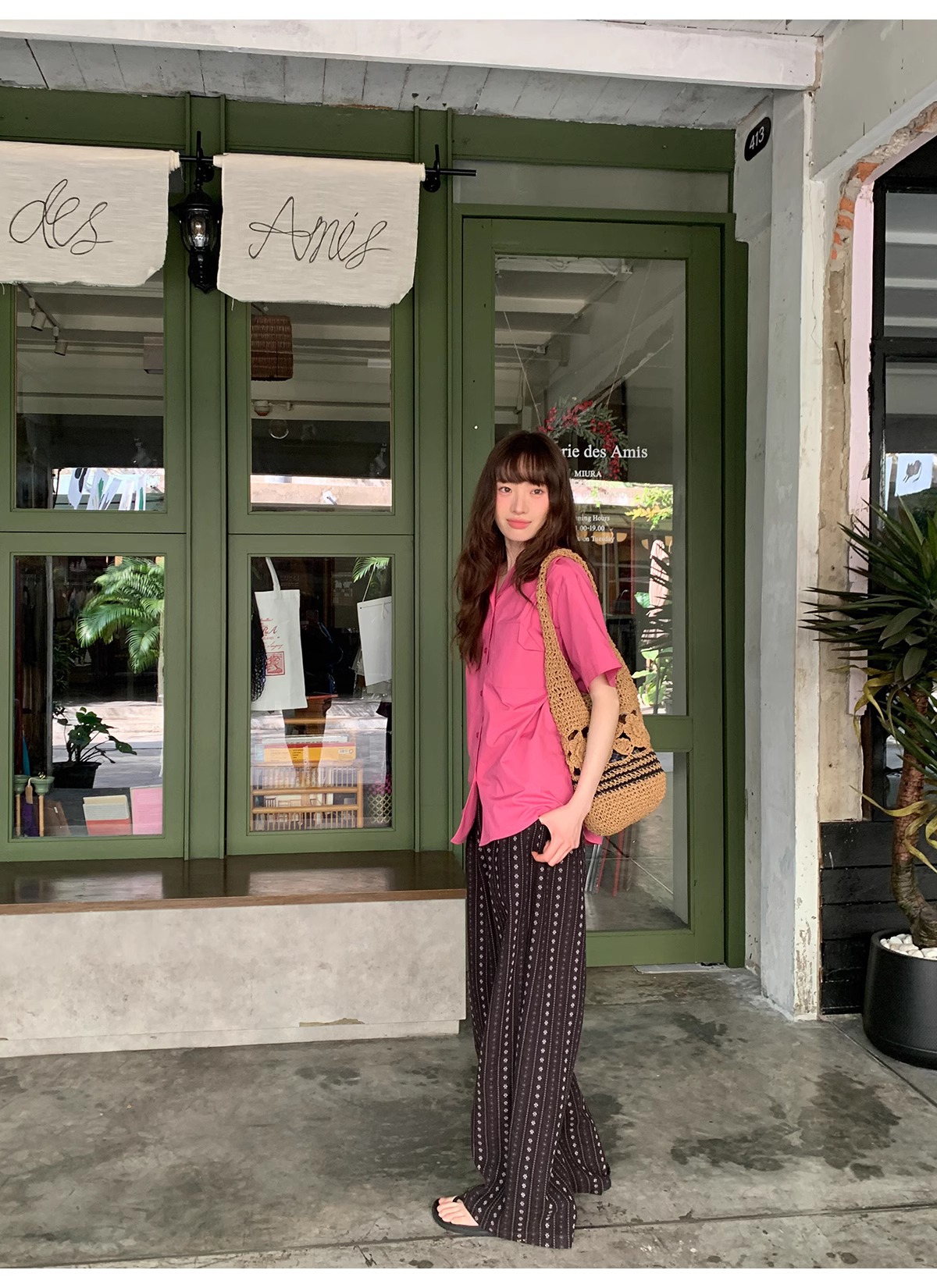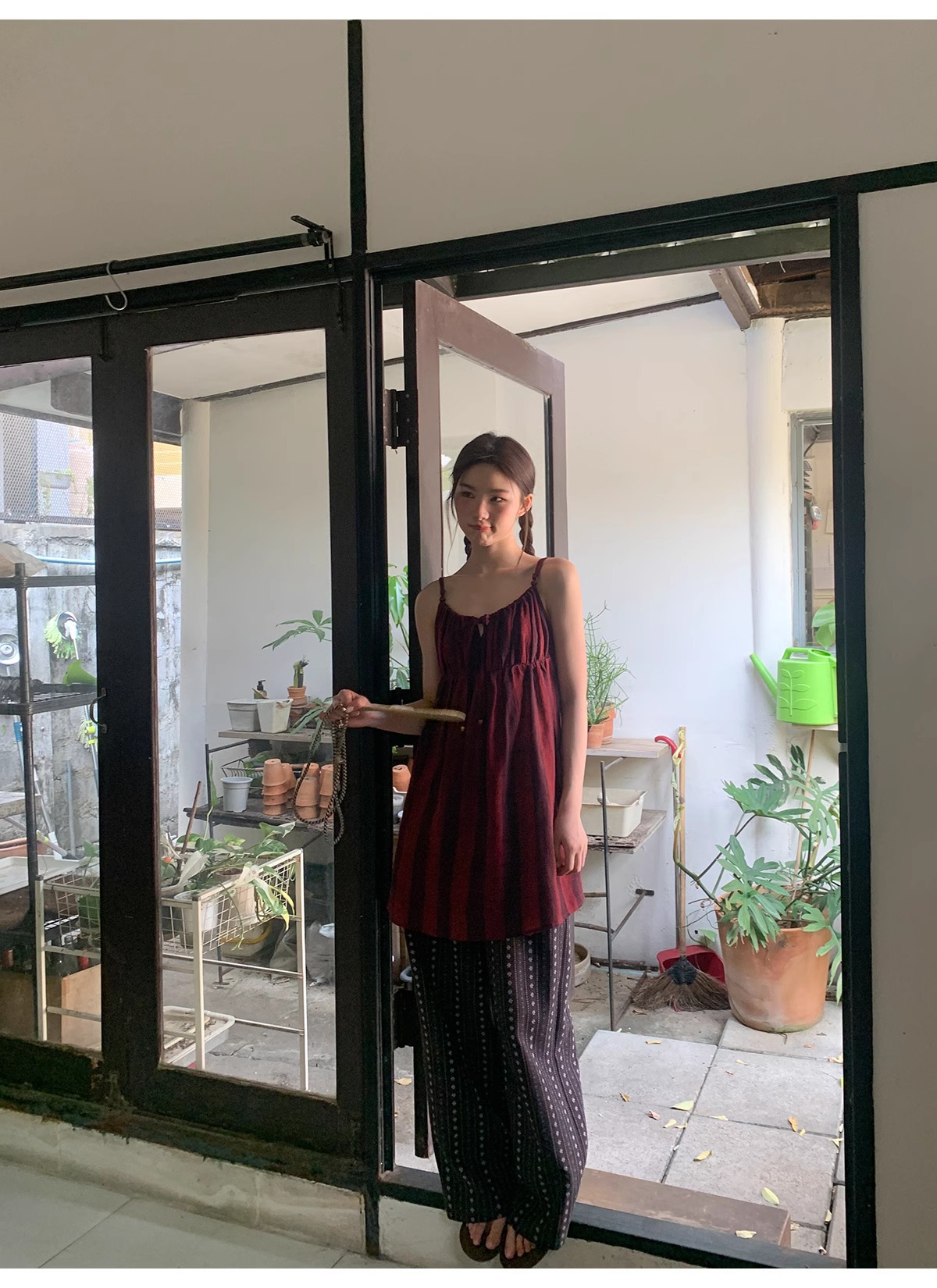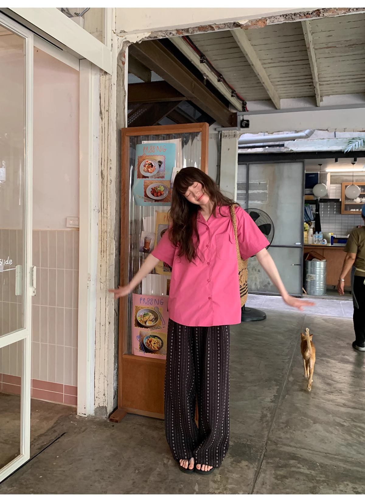 빈티지 자카드 직조 및 자수 캐주얼 와이드 레그 바지 여성용 얇은 2025 년 여름 새로운 높은 허리 느슨한 스트레이트 바지스토어 가기