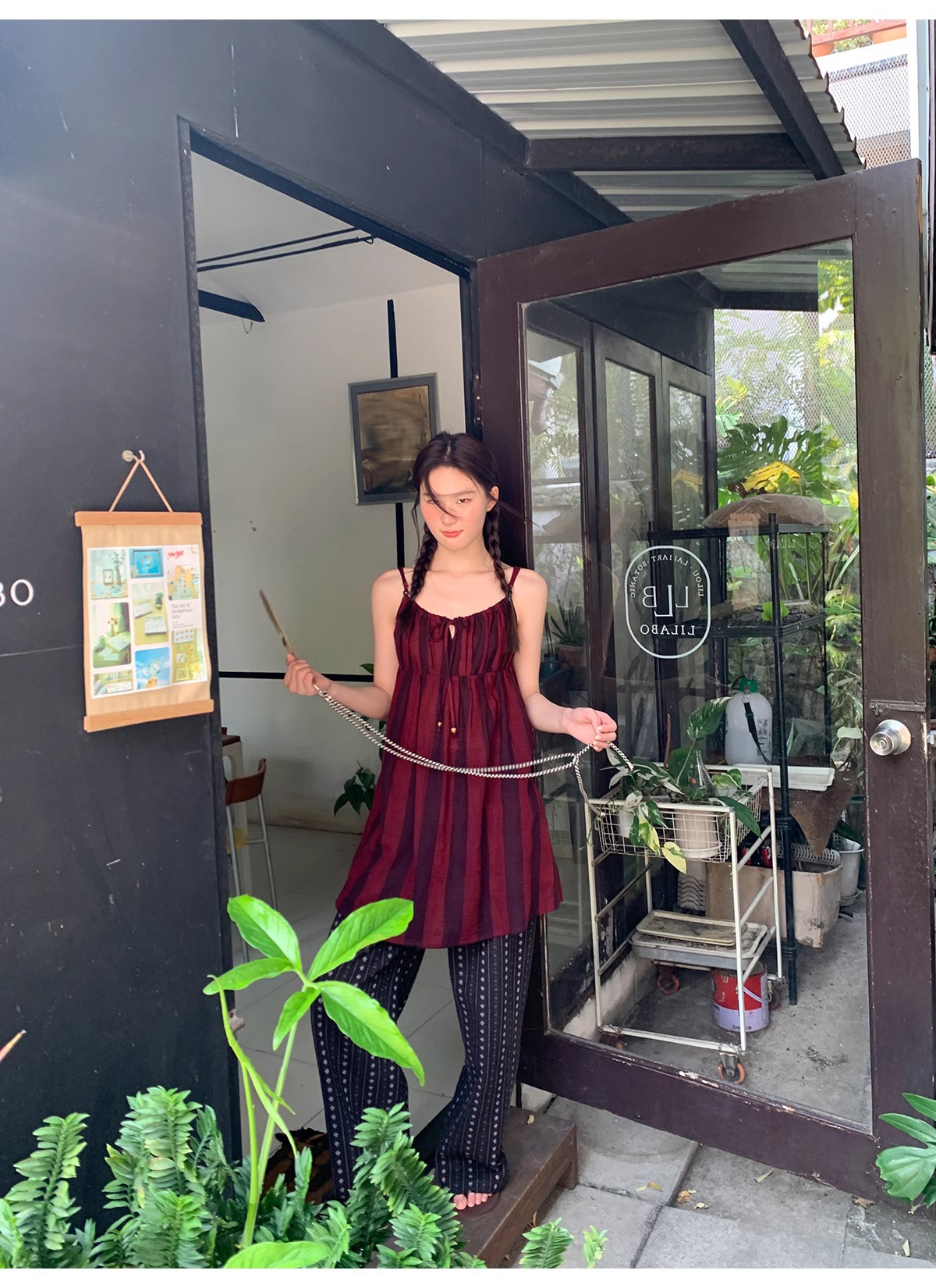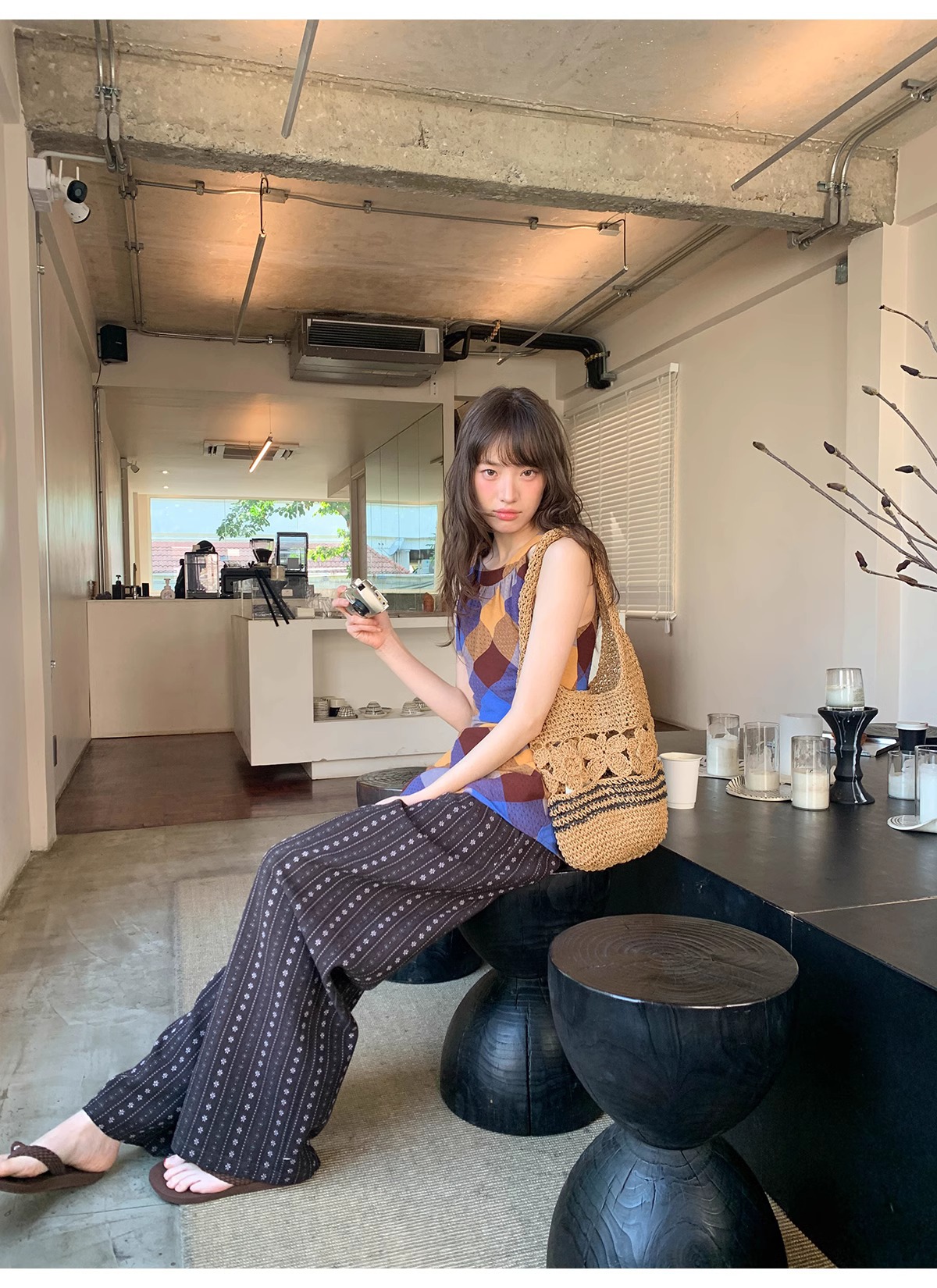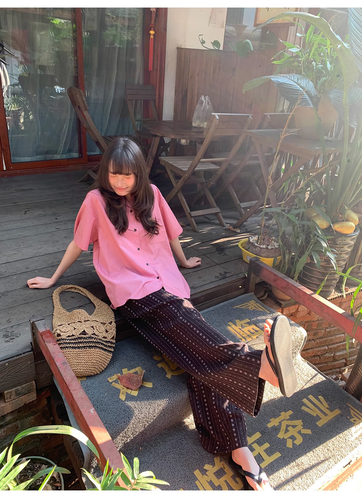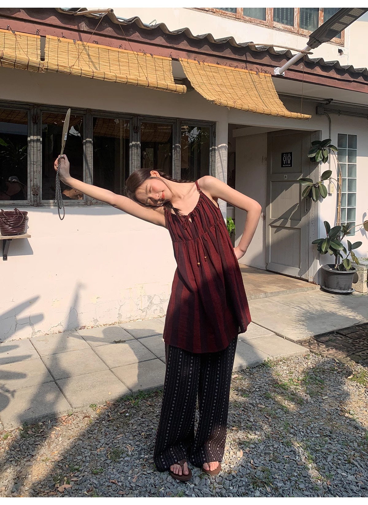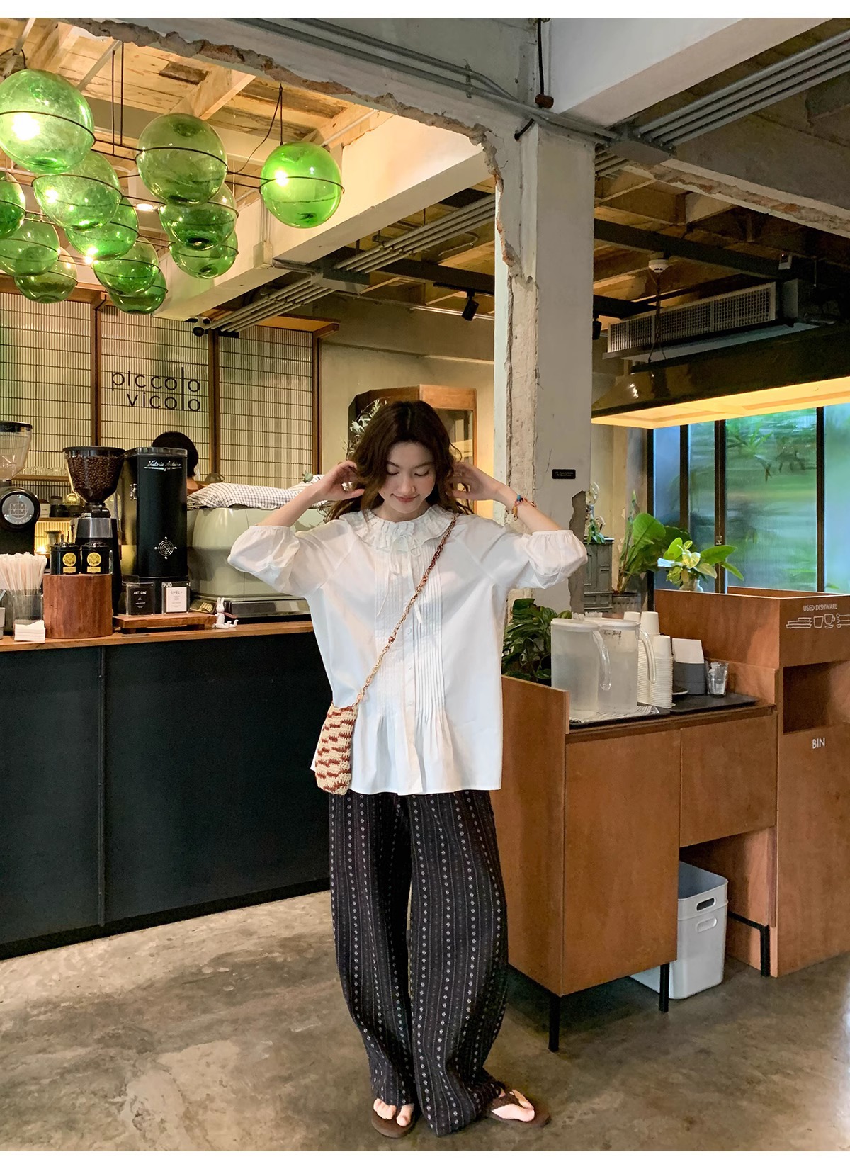 빈티지 자카드 직조 및 자수 캐주얼 와이드 레그 바지 여성용 얇은 2025 년 여름 새로운 높은 허리 느슨한 스트레이트 바지스토어 가기