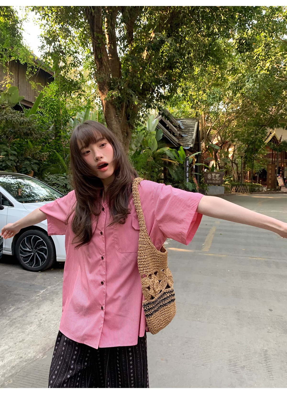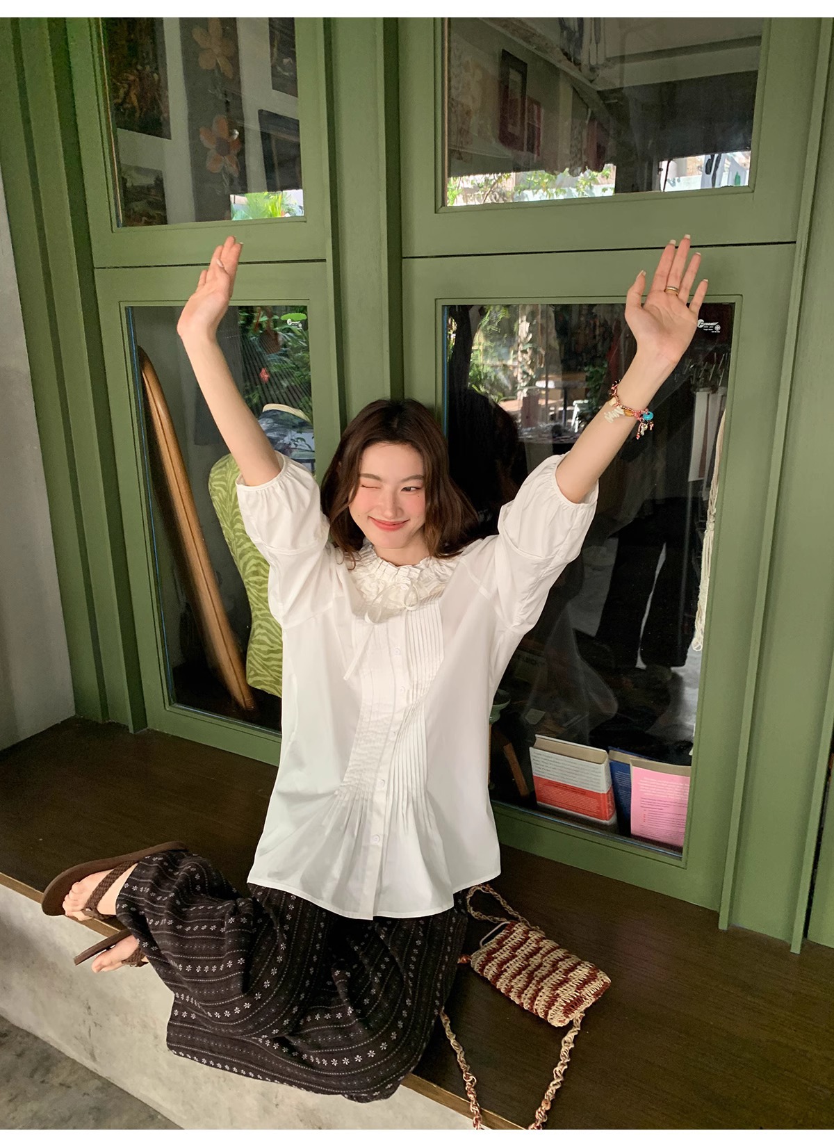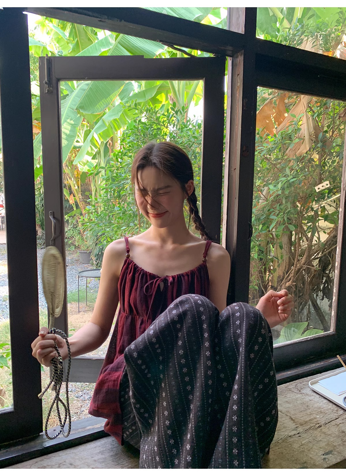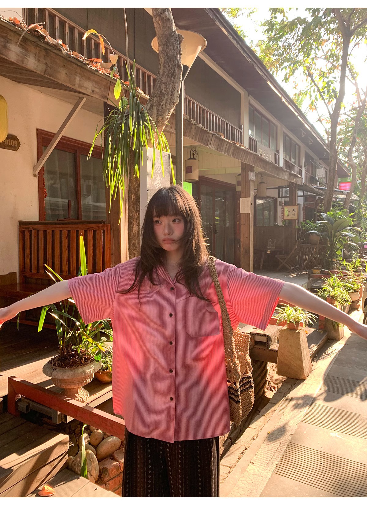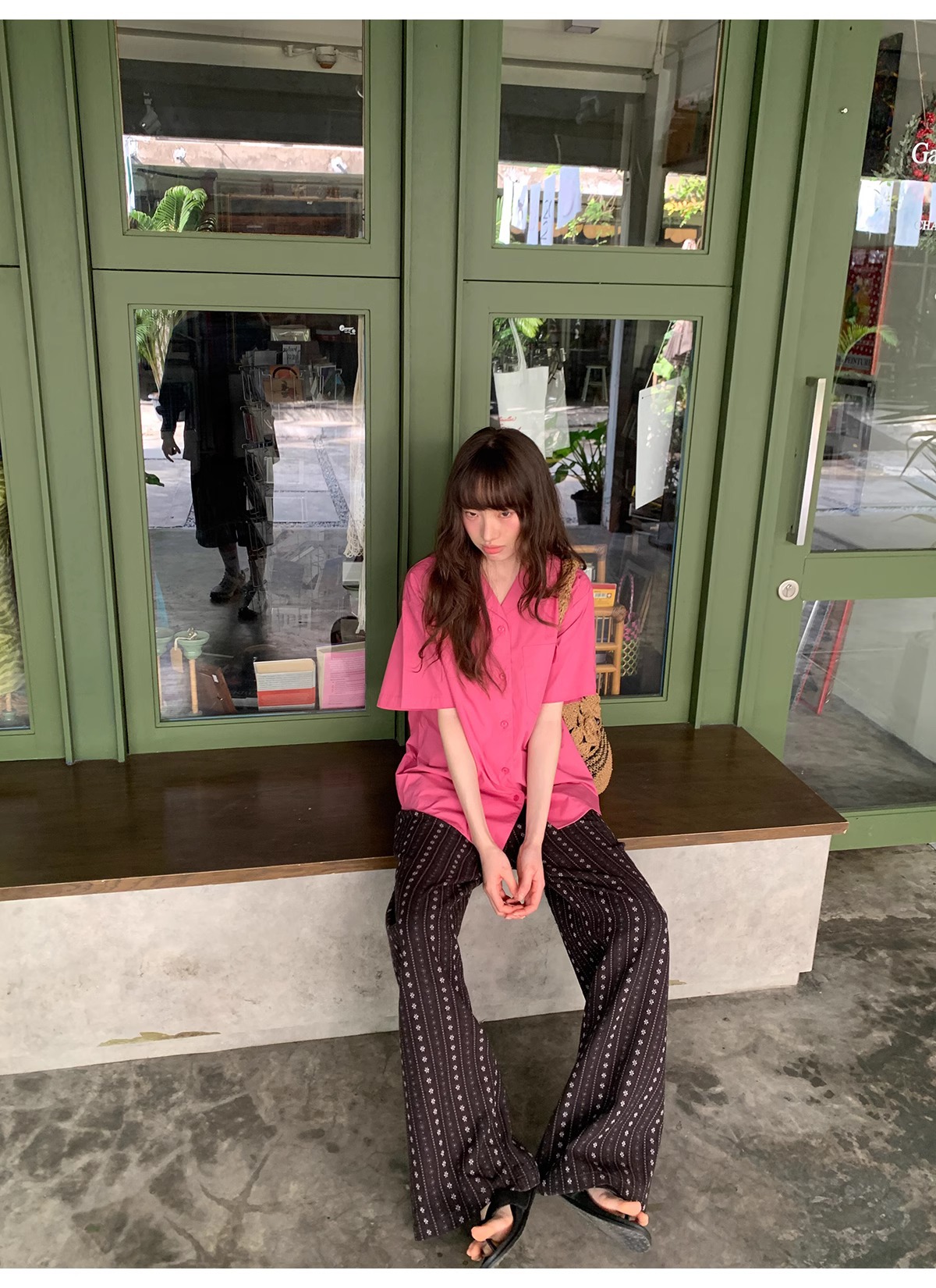 빈티지 자카드 직조 및 자수 캐주얼 와이드 레그 바지 여성용 얇은 2025 년 여름 새로운 높은 허리 느슨한 스트레이트 바지스토어 가기