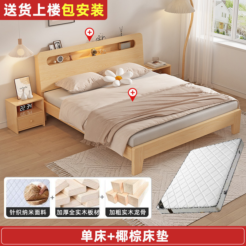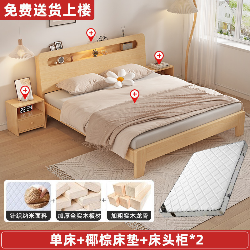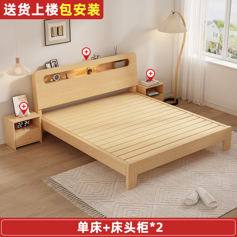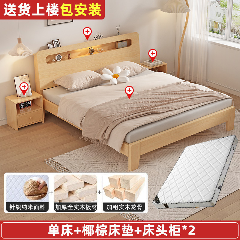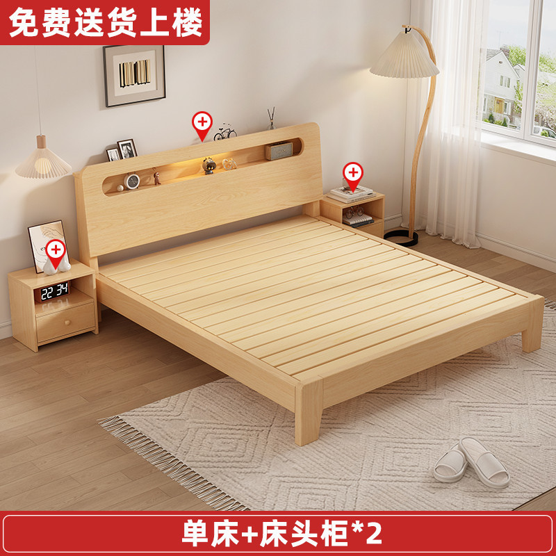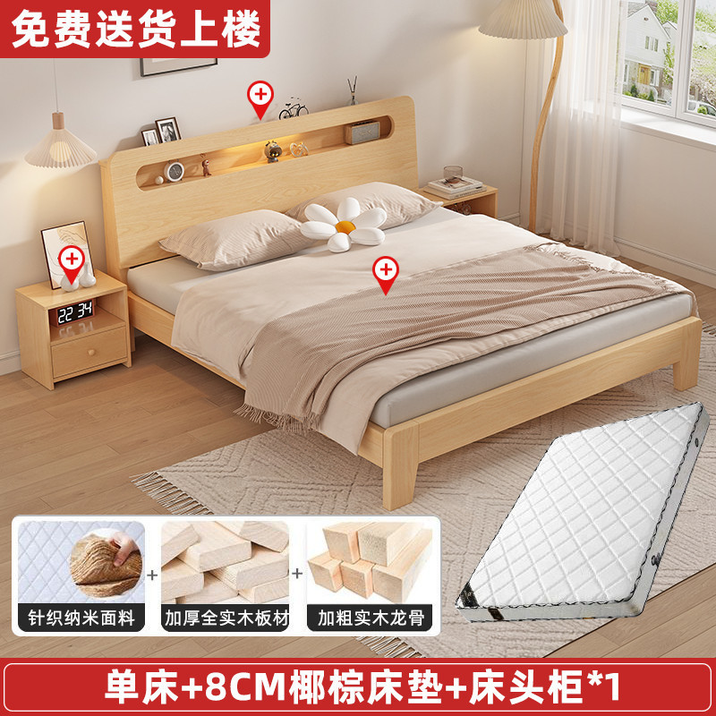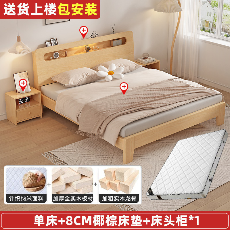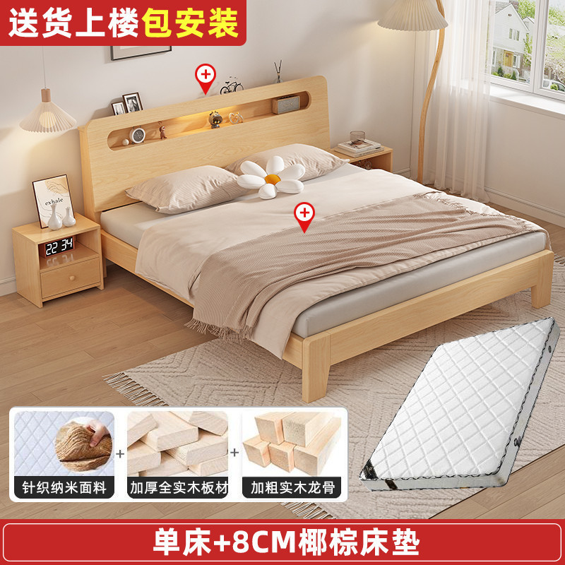 단단한 나무 침대 1.5 m 더블 침대 가구 1.8 m 현대 간단한 임대 주택 경제적인 1.2m 싱글 침대 프레임스토어 가기