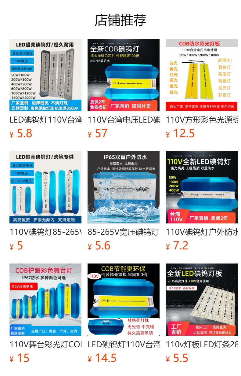 대만 110v 램프 LED 요오드 텅스텐 램프 교체 광원 보드 고휘도 방수 라이트 스트립 야외 스톨 작업 조명 보드