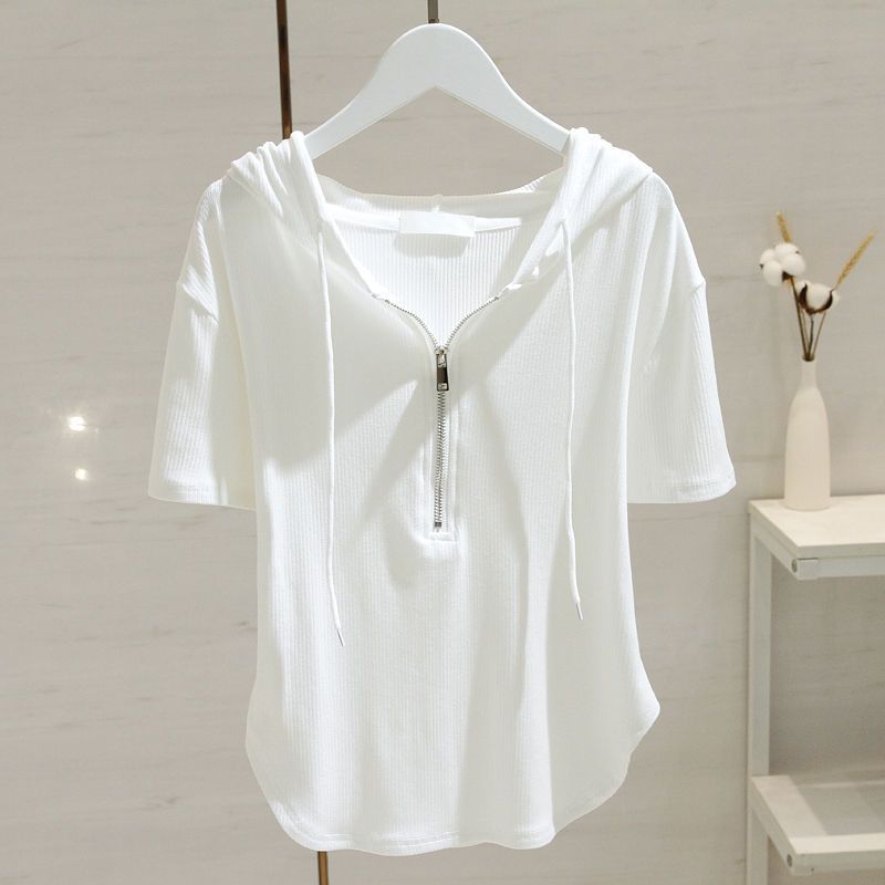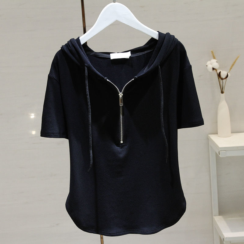 1.00 kg-150.00 kg 통통녀 플러스 사이즈 배꼽 커버 여성 어깨 티셔츠 짧은 소매 디자인 틈새 후드 탑 새로운 패션스토어 가기