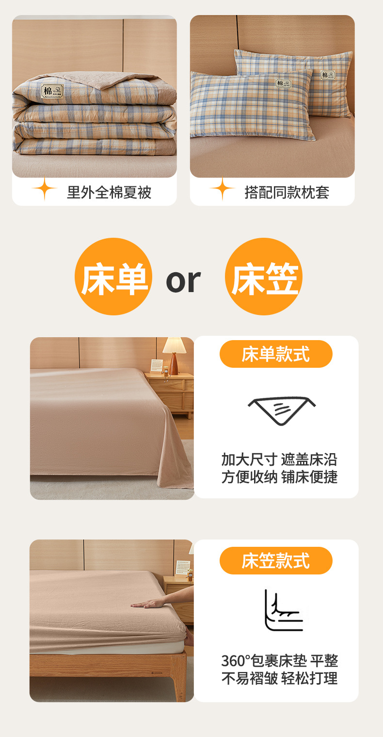 • 1.5m 매트리스 커버 4개 세트 [여름 이불 200x230cm+매트리스 커버 1.5개+베갯잇 1쌍]